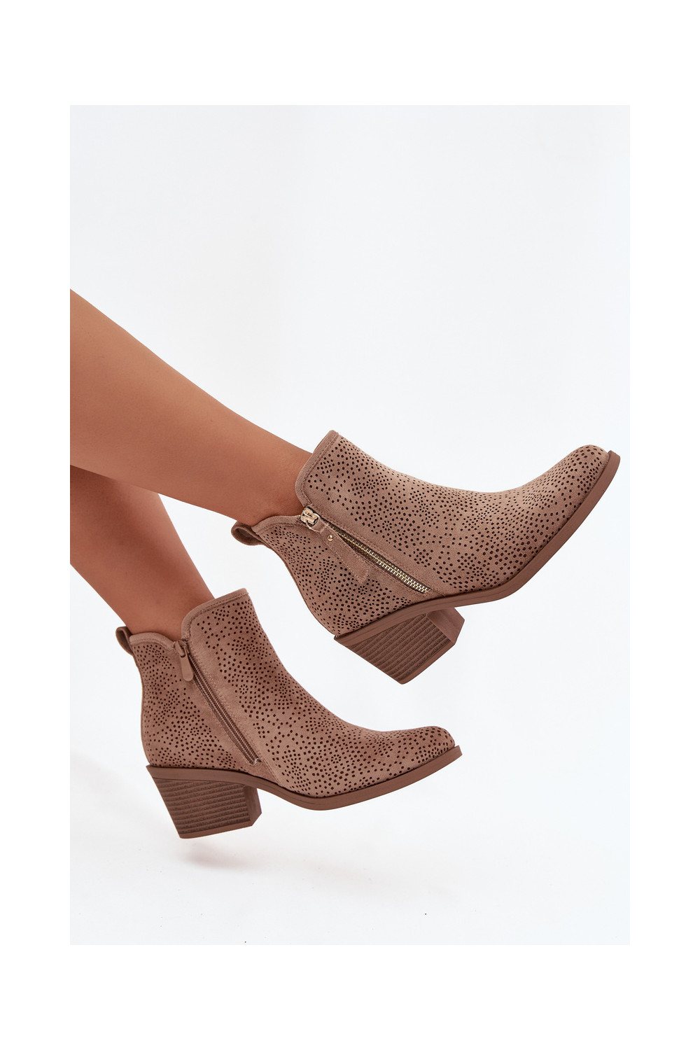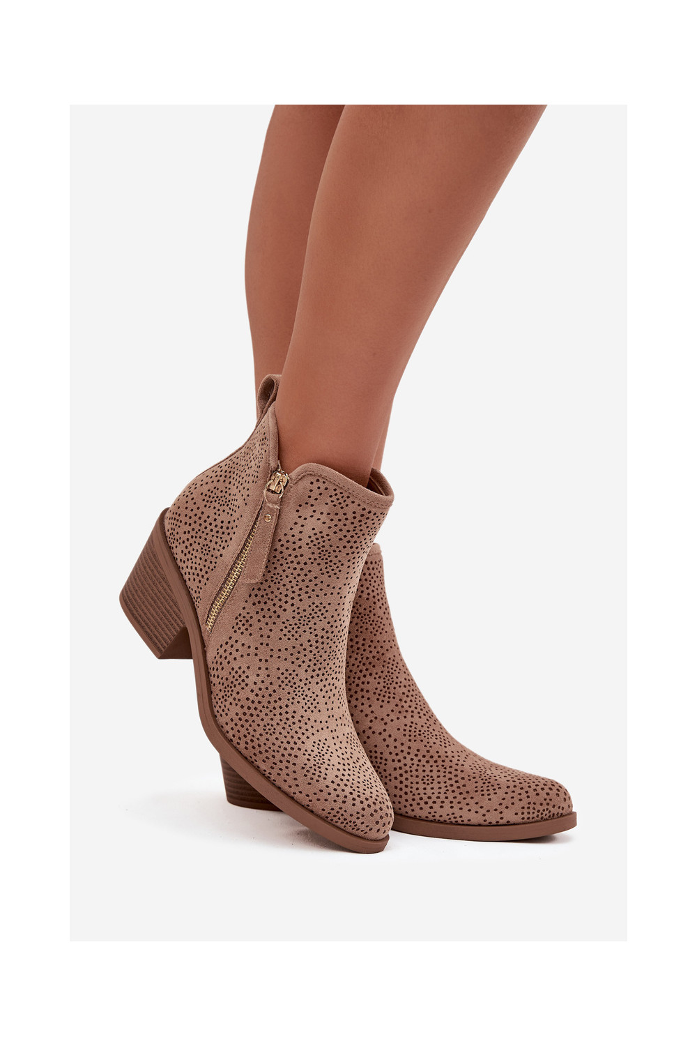 kaubojiško stiliaus aulinukai Moteriškas su kulniukais S.Barski HY52-538 smėlio spalvos