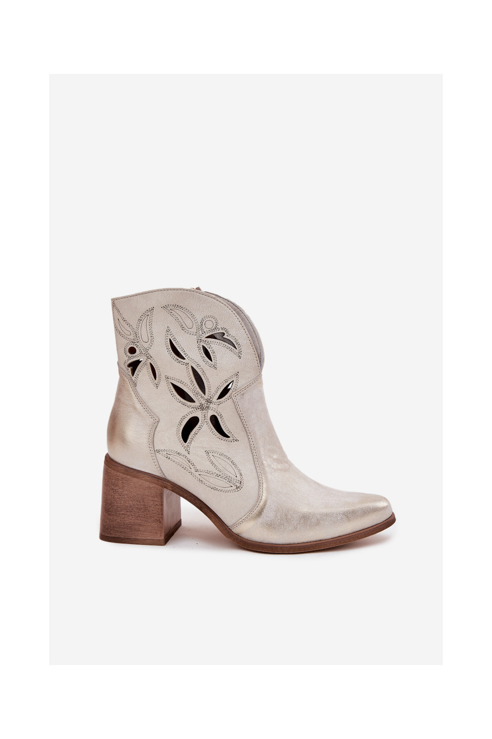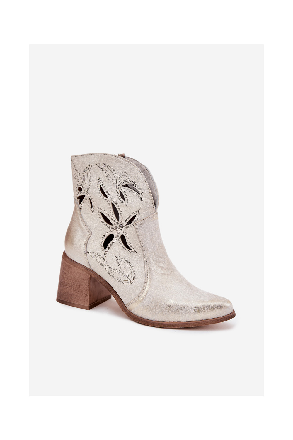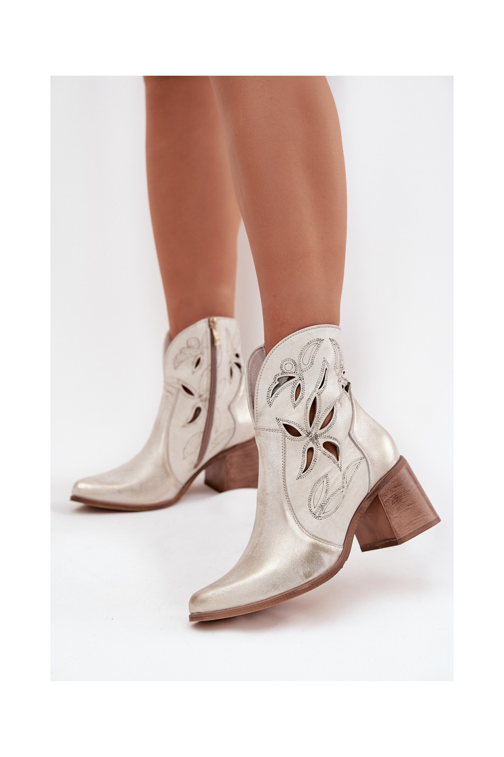 Moteriški aulinukai su aužūro elementaissuĮjungtaturalnej Skóry su kulniukais Zazoo 3690 aukso spalvos Przecierany
