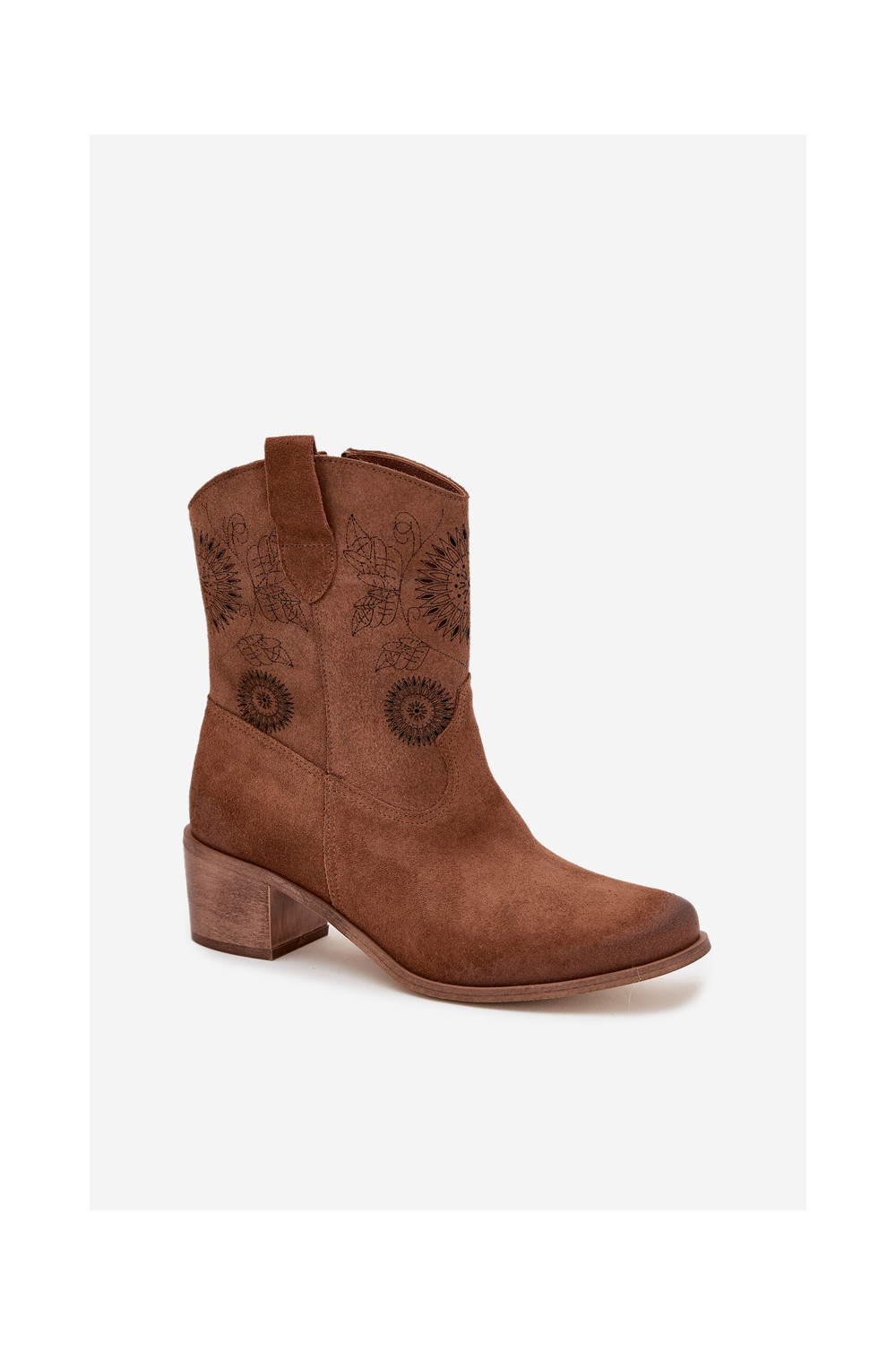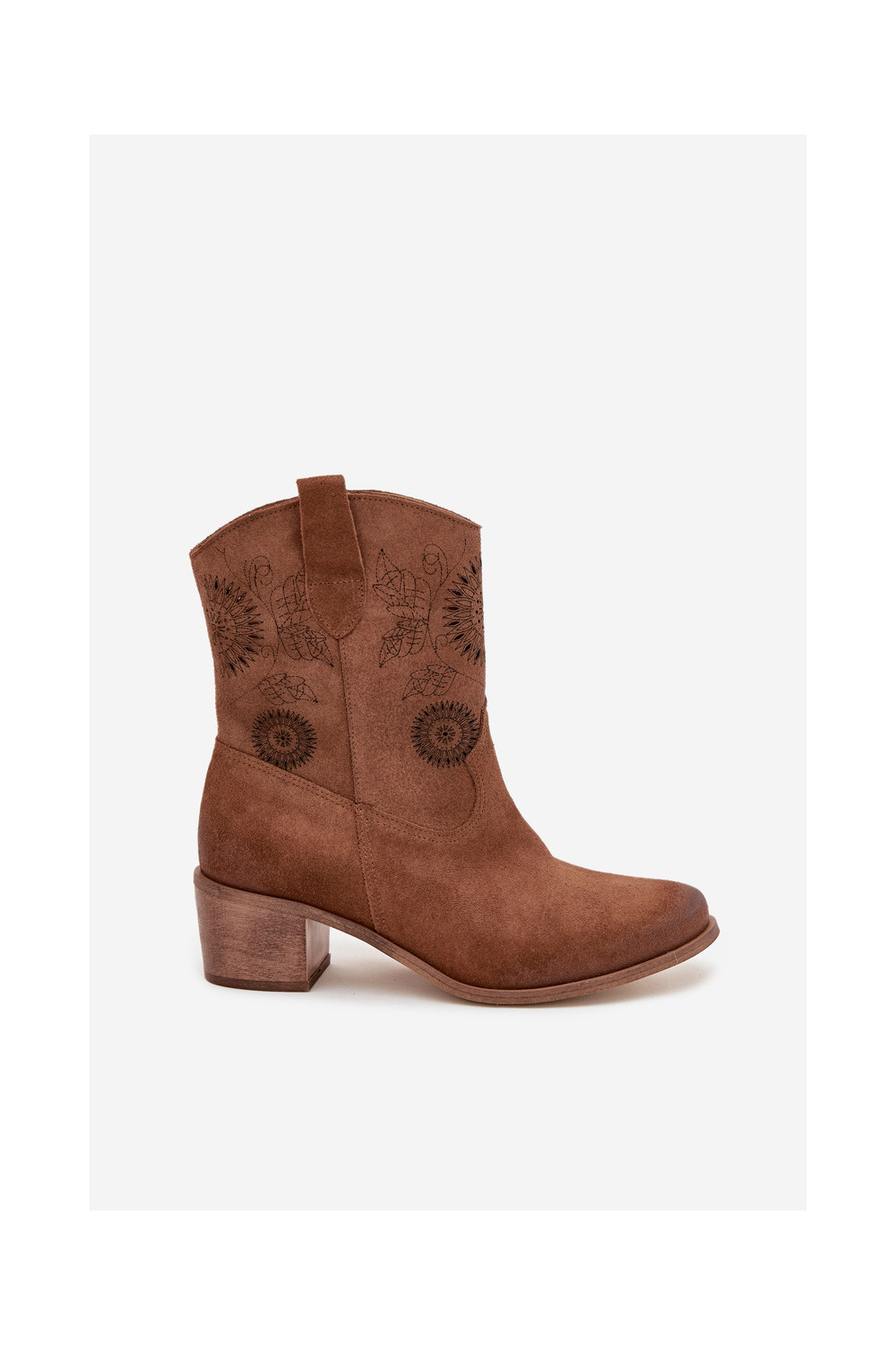 iš zomšos Oda Moteriški aulinukai su aužūro elementais su kulniukais Zazoo 3844 rudos spalvos