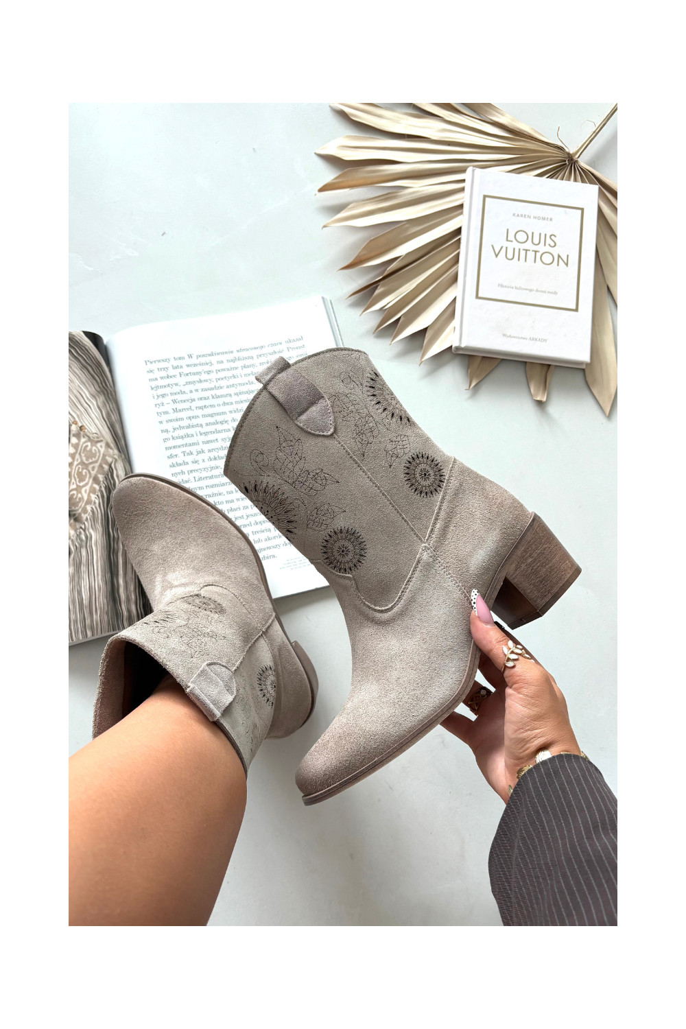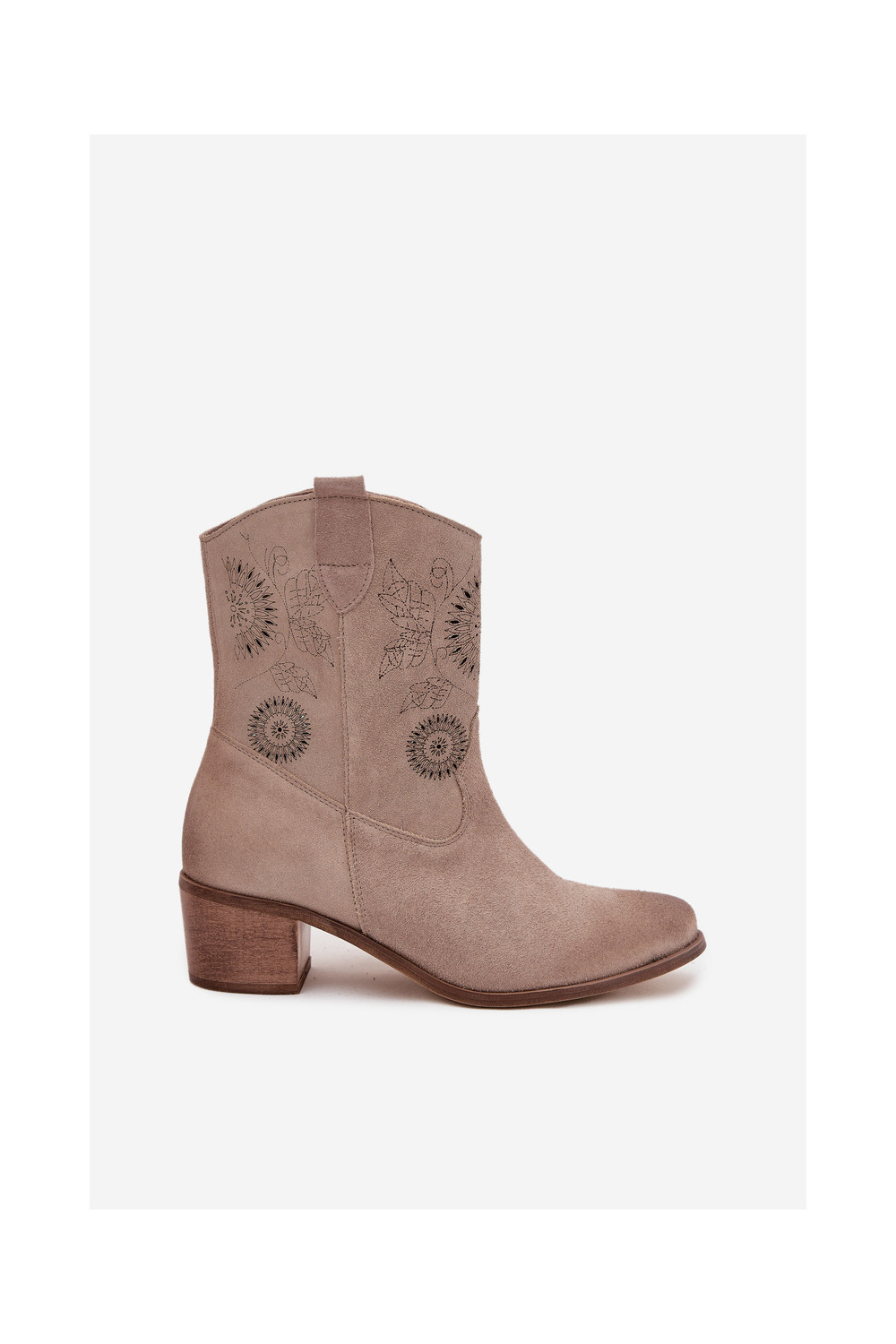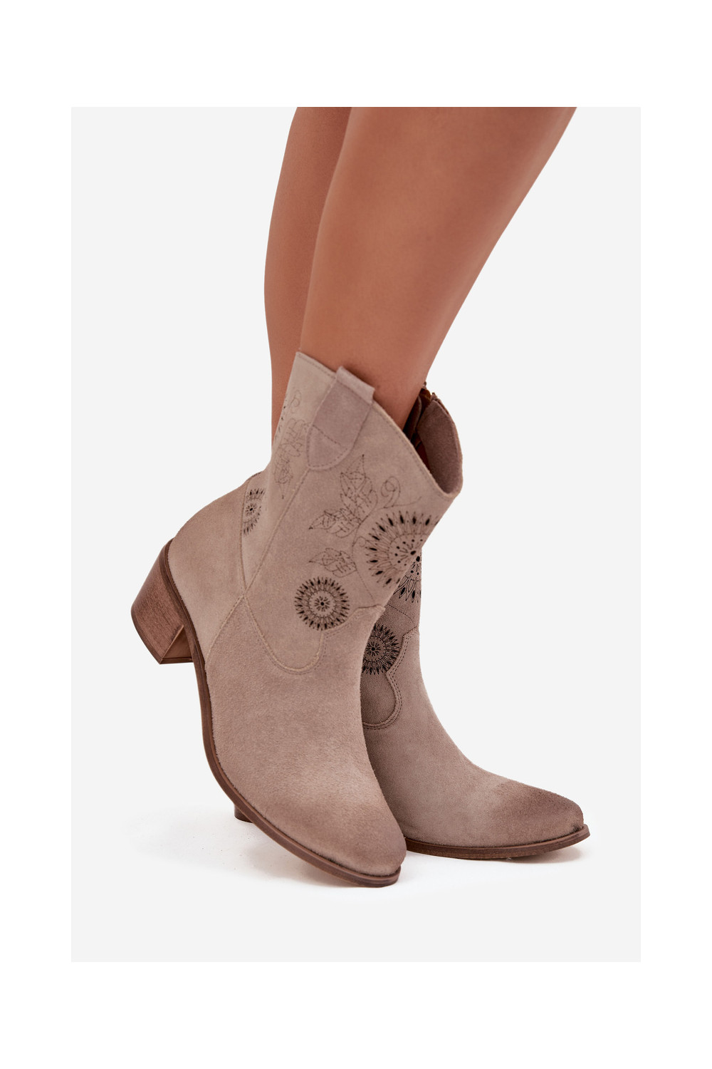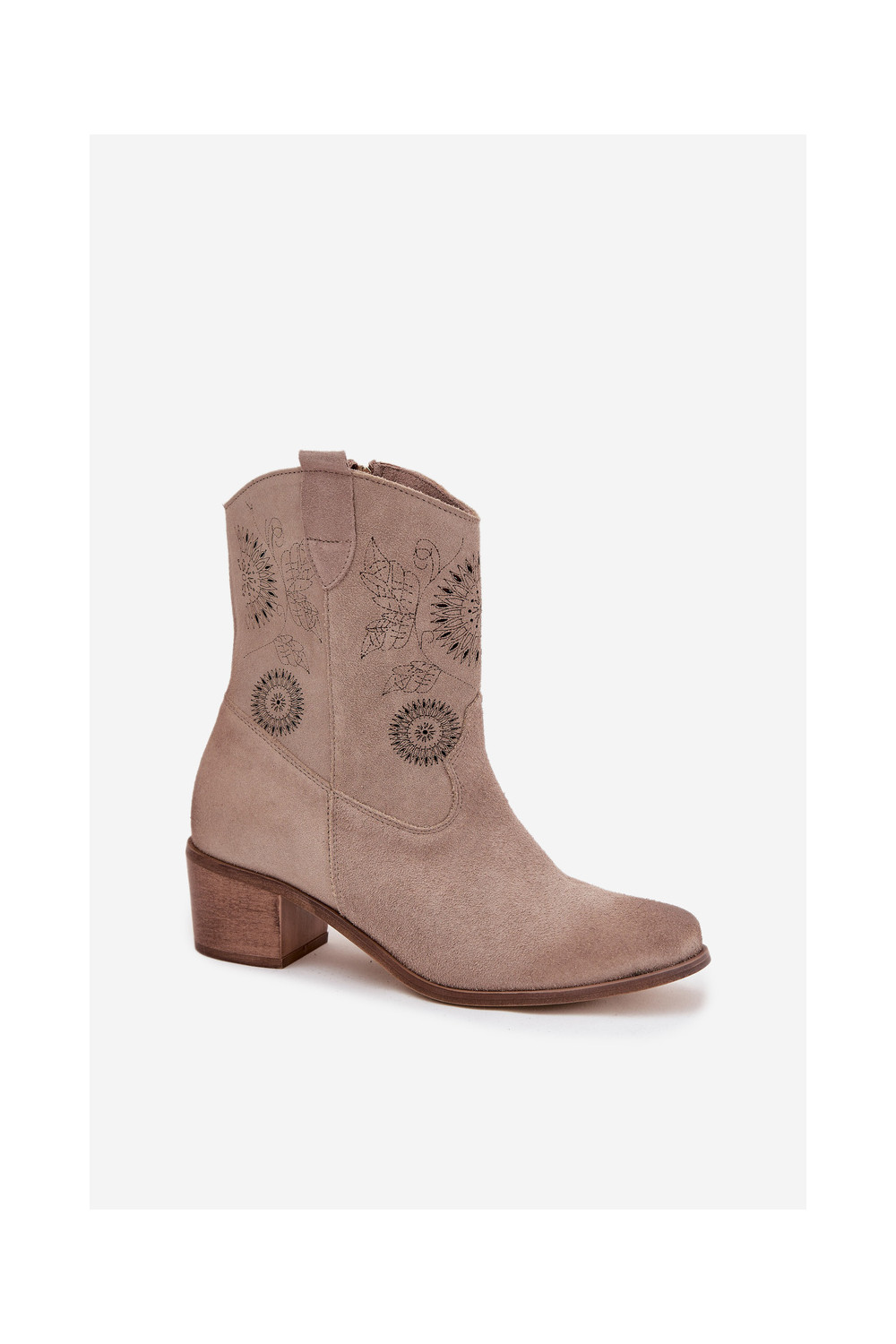 Moteriški zomšiniai aulinukai su ažūro elementais su kulniukais Zazoo 3844 kapučino spalvos
