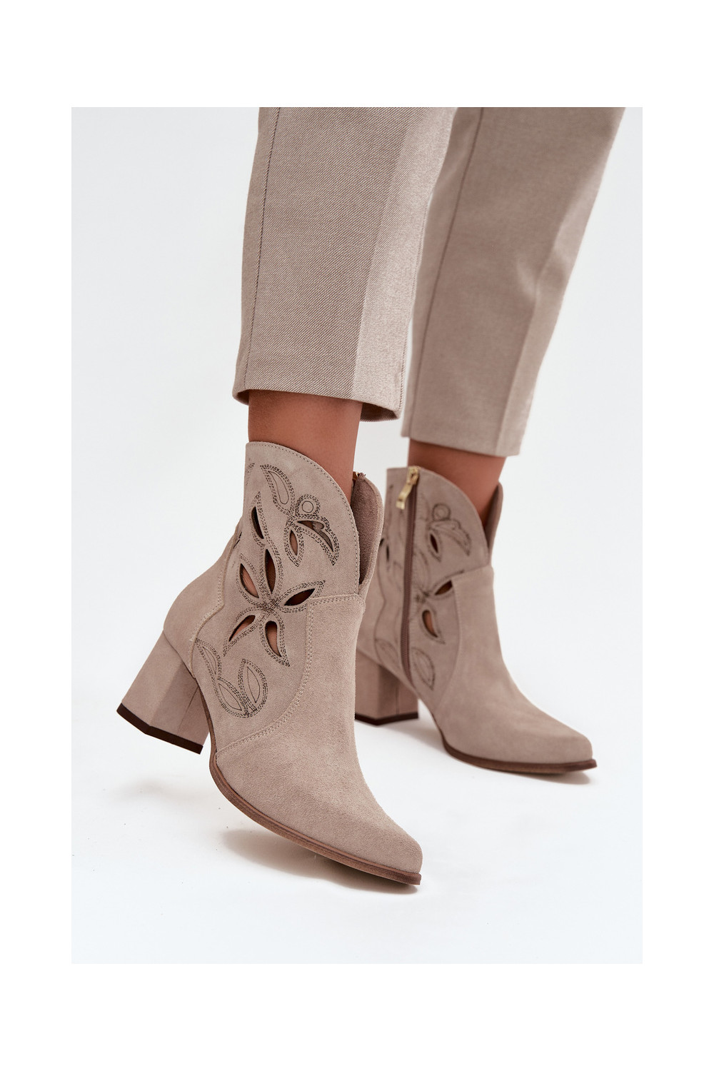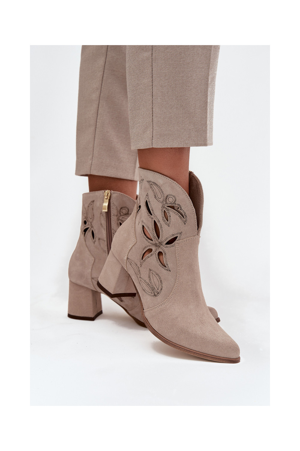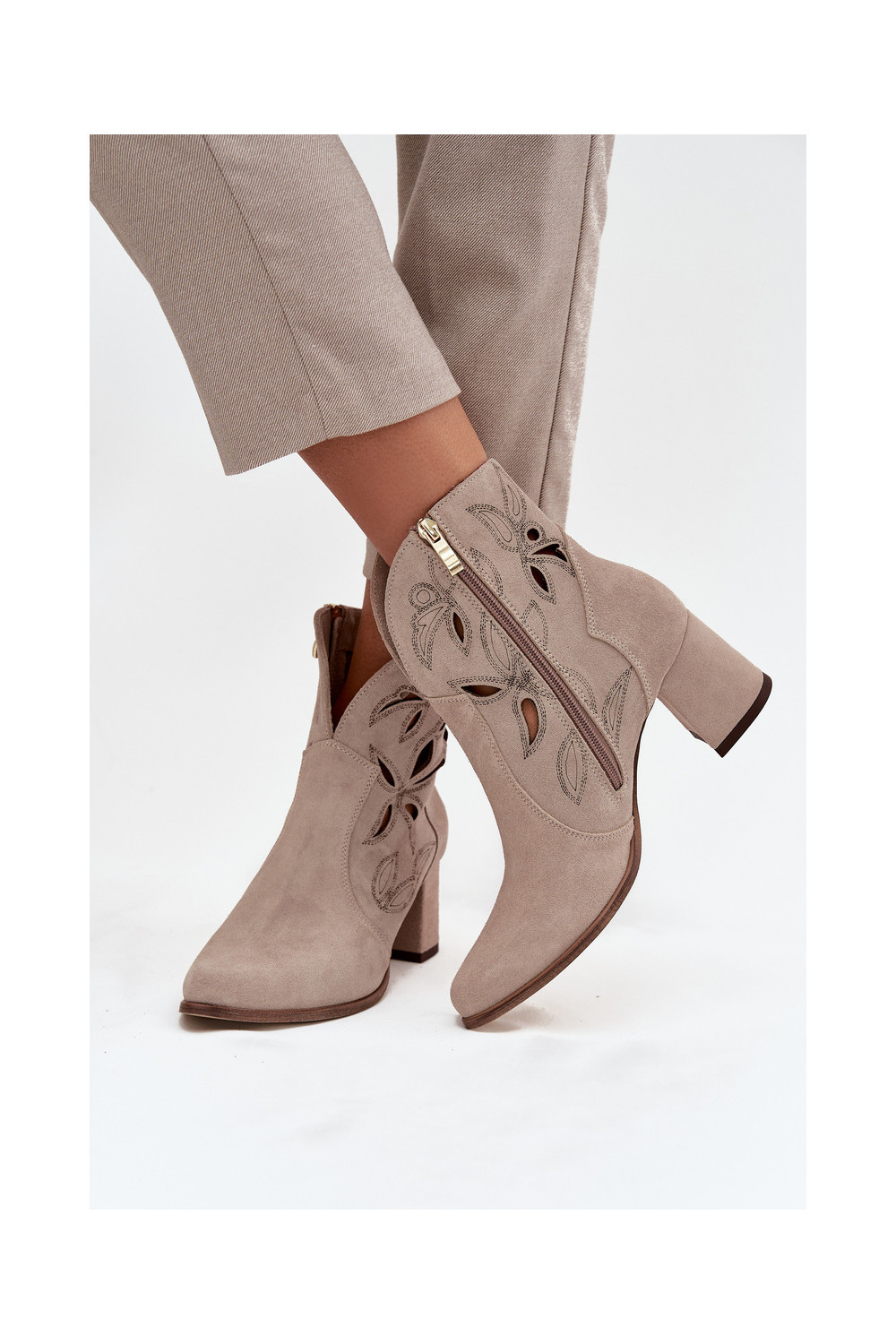 Ažūrinės zomšinės Moteriški aulinukai Zazoo 3647 kapučino spalvos