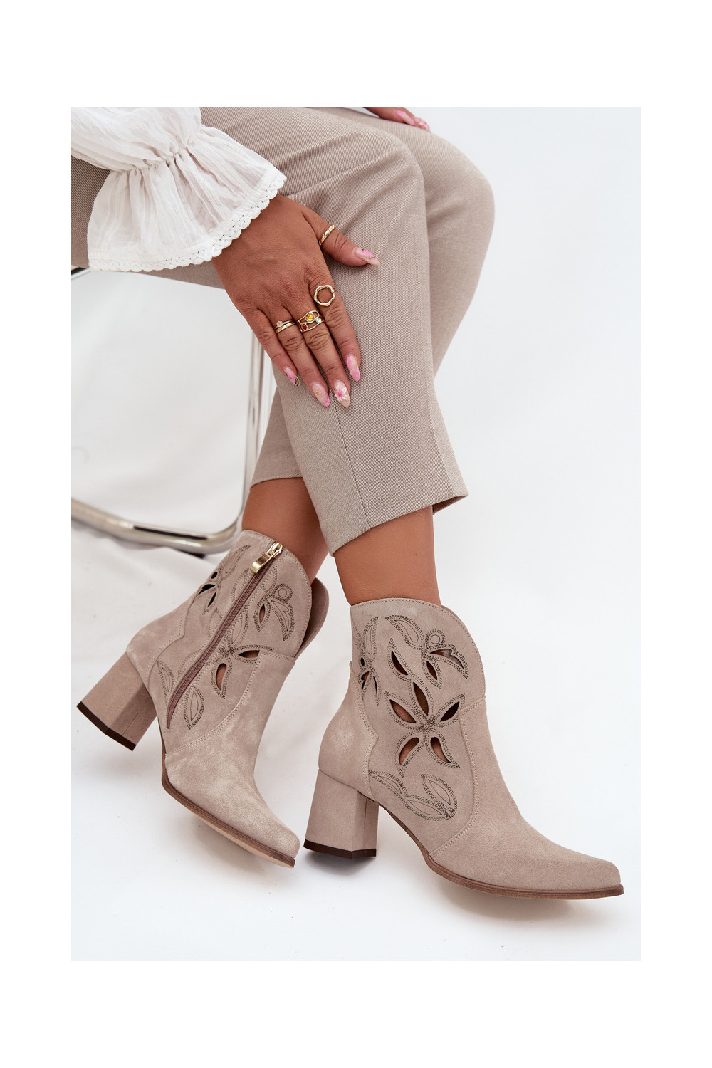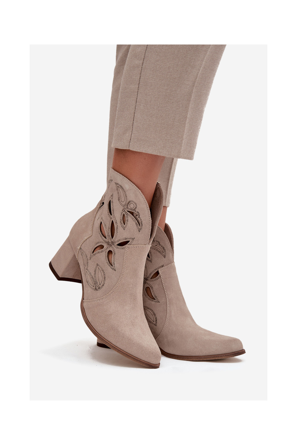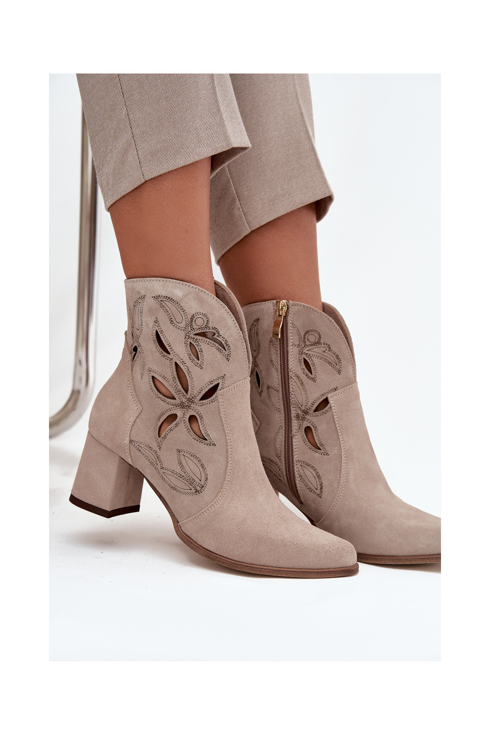 Ažūrinės zomšinės Moteriški aulinukai Zazoo 3647 kapučino spalvos
