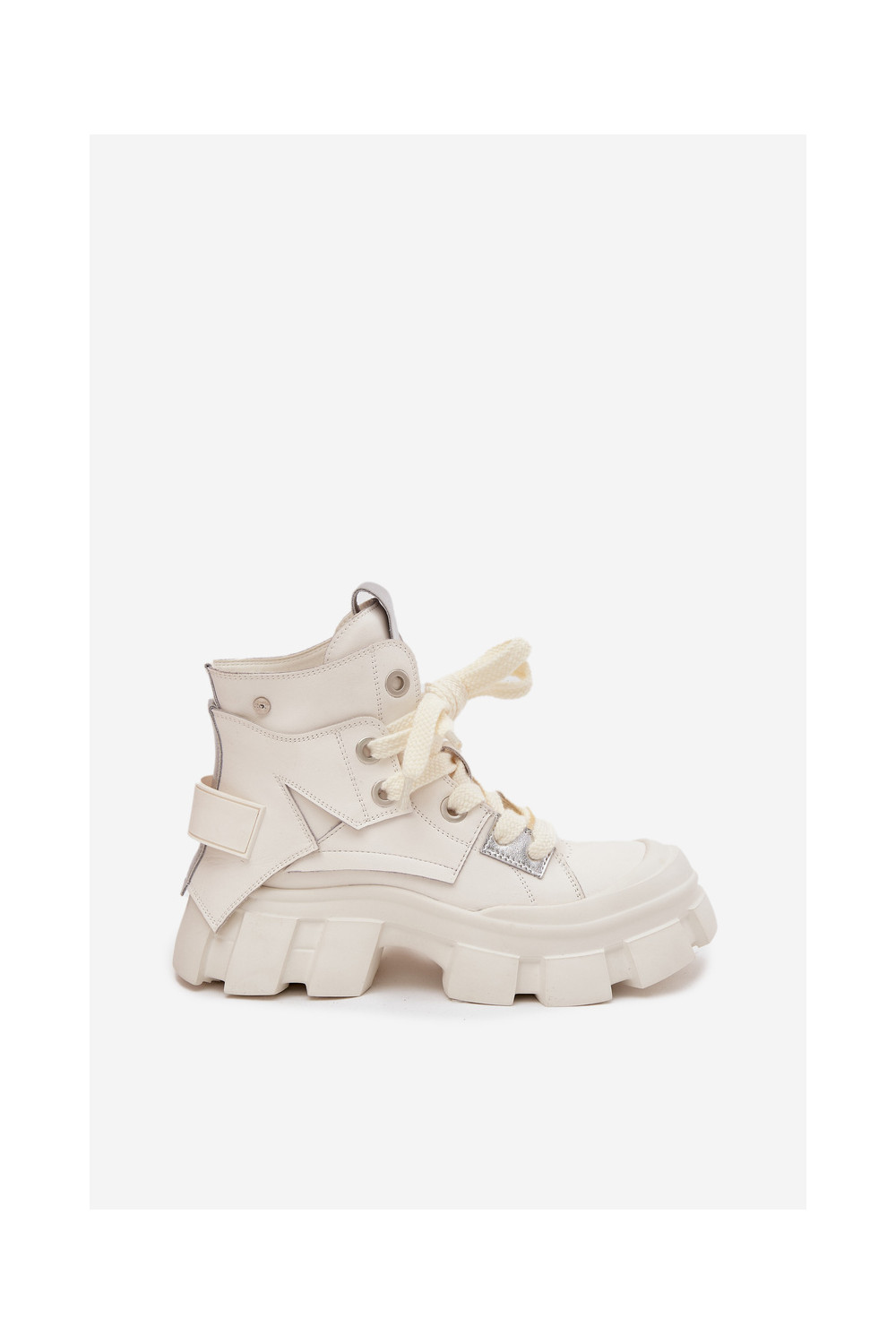 Odiniai pašiltinti sportinio stiliaus aulinukai GOE SS2N4055 baltos spalvos