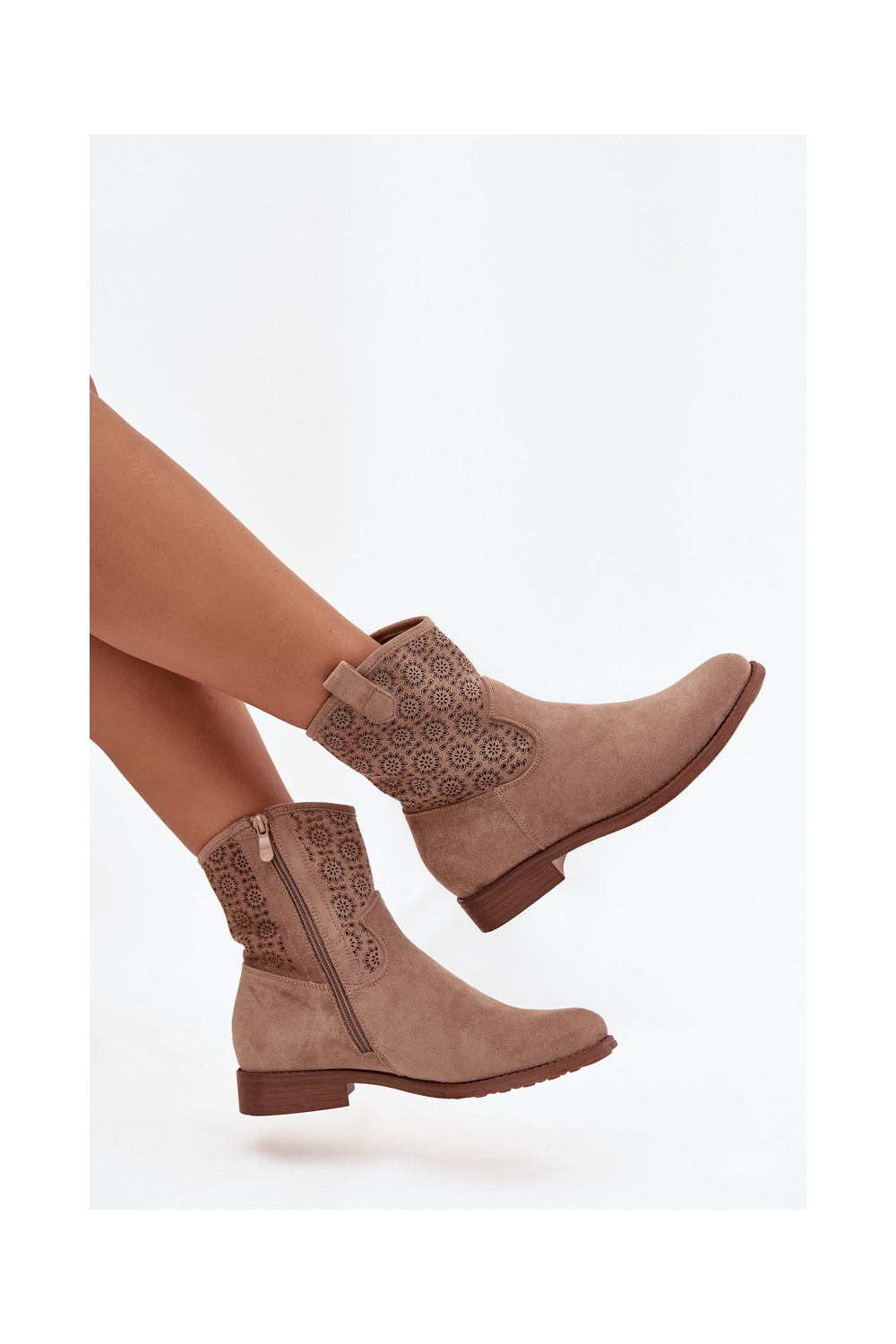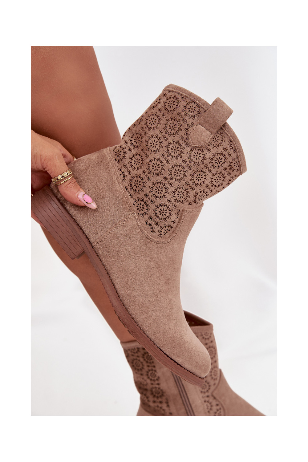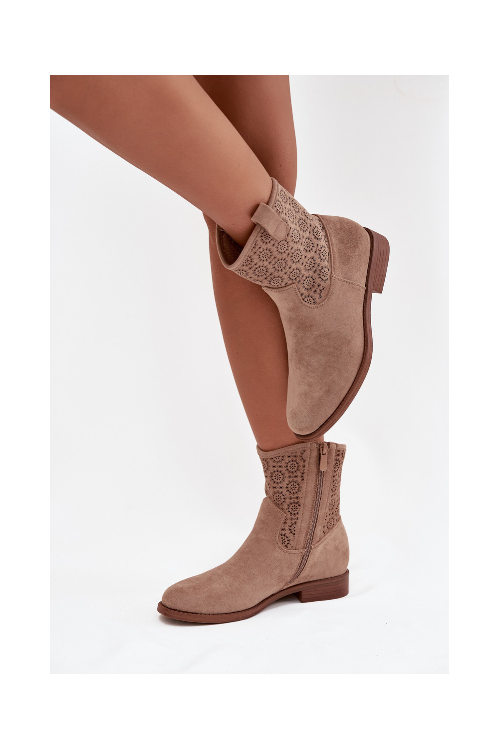 Moteriški aulinukai su plačiais kulniukais su ažūro elementais S.Barski HY52-530 smėlio spalvos