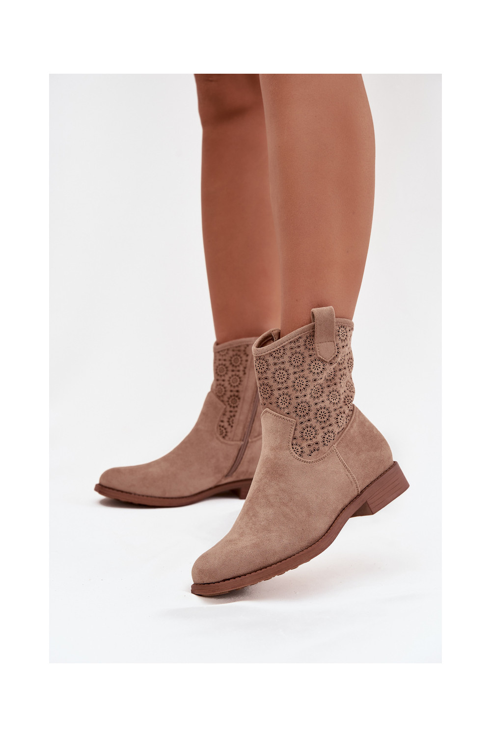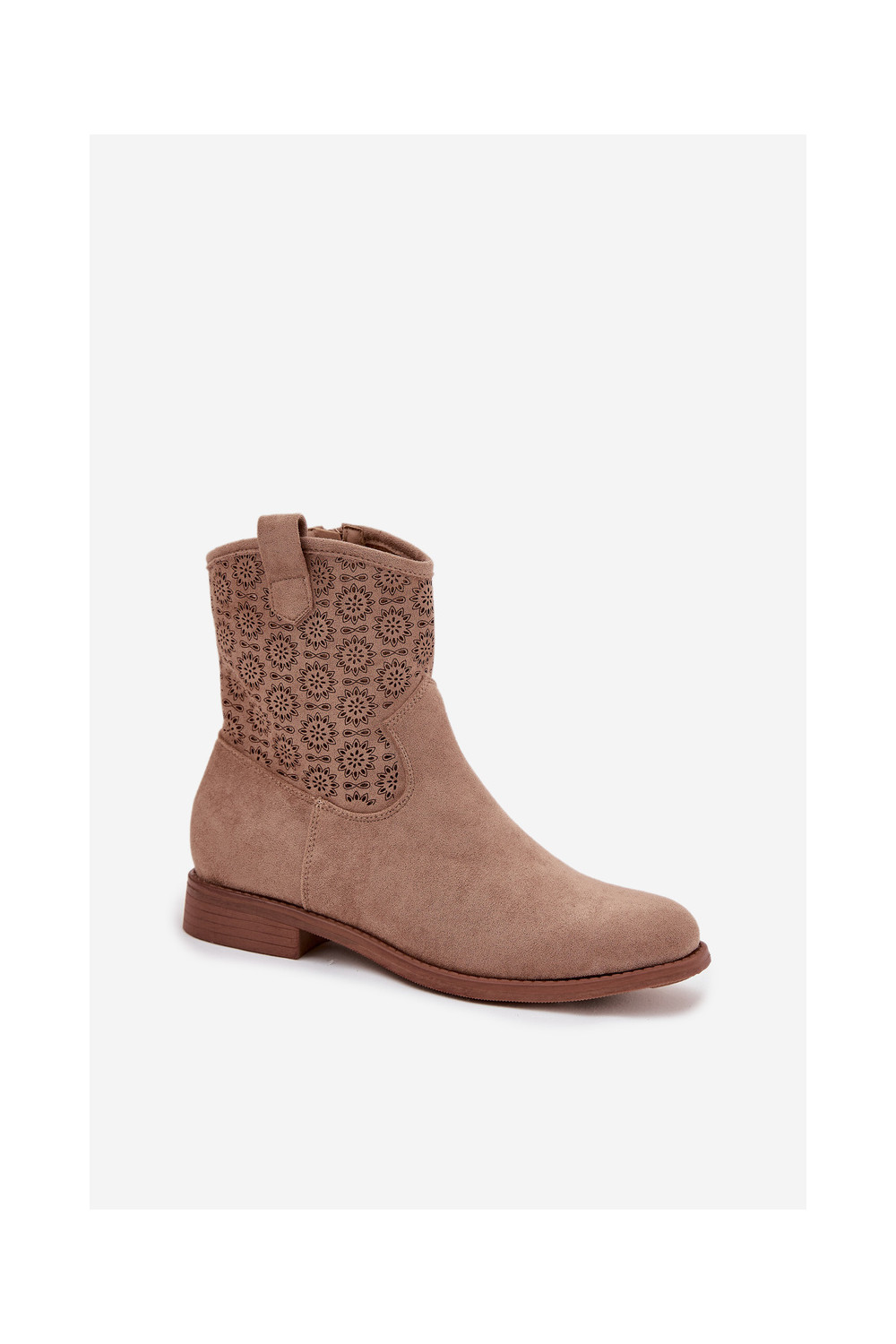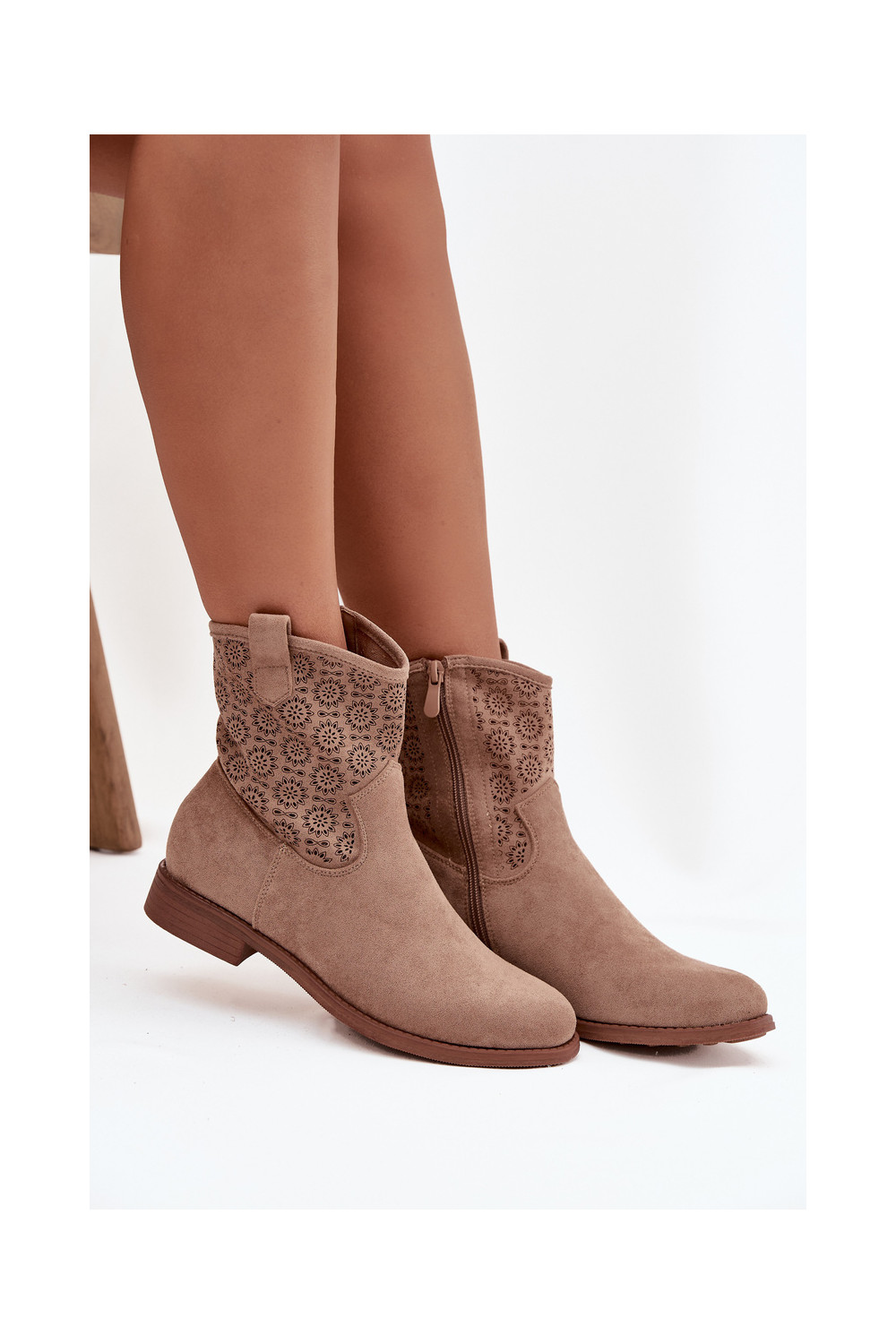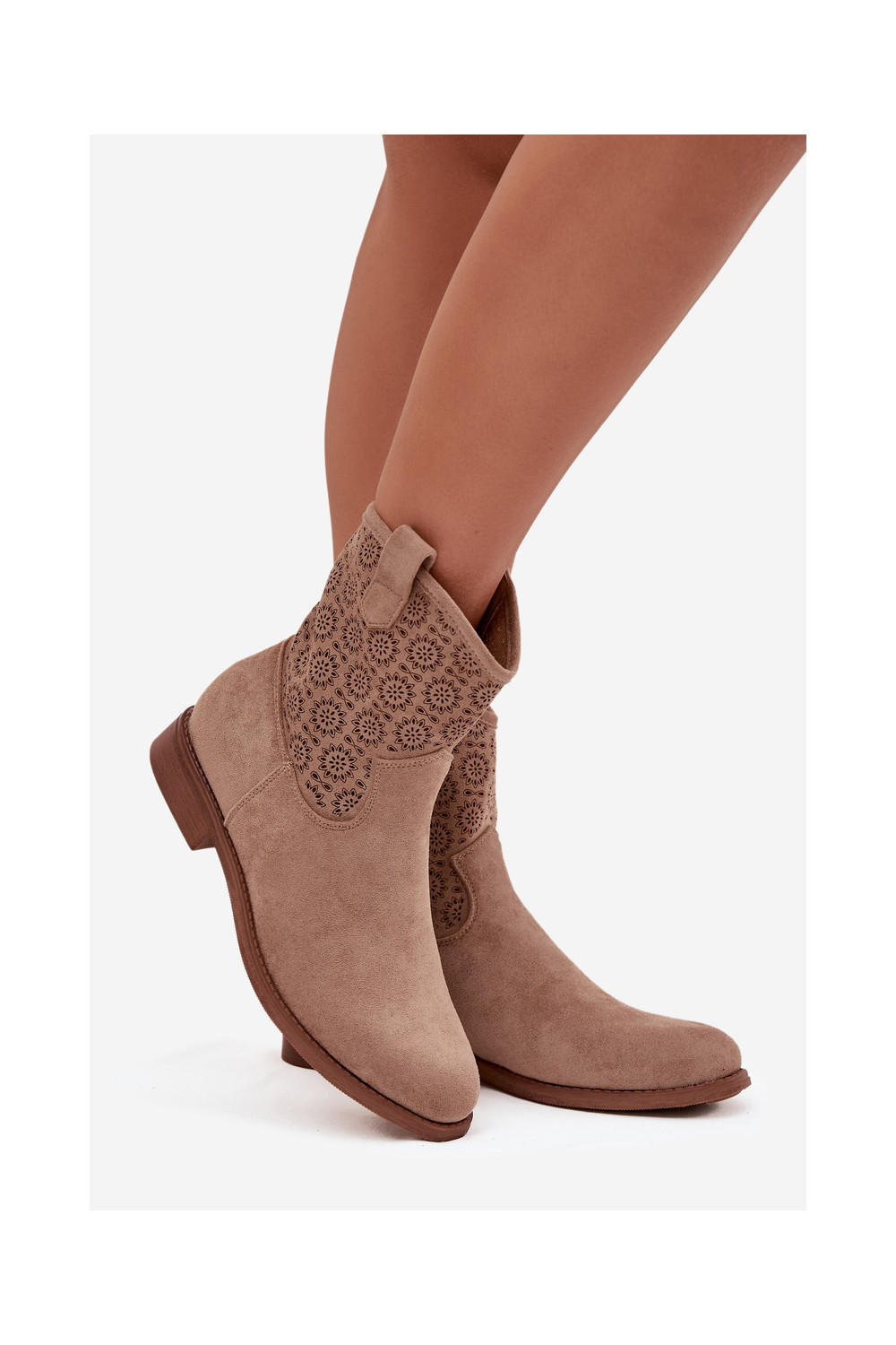 Moteriški aulinukai su plačiais kulniukais su ažūro elementais S.Barski HY52-530 smėlio spalvos