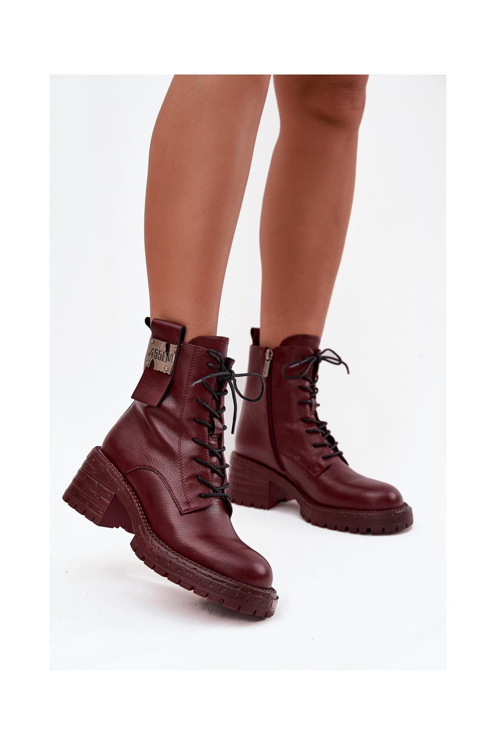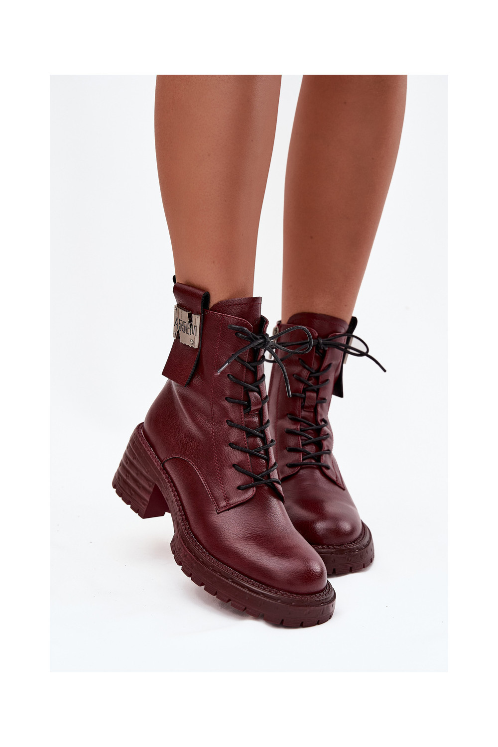 Odiniai moteriški darbiniai aulinukai su platforma ir puošniomis detalėmis Artiker 57C0211 bordo spalvos