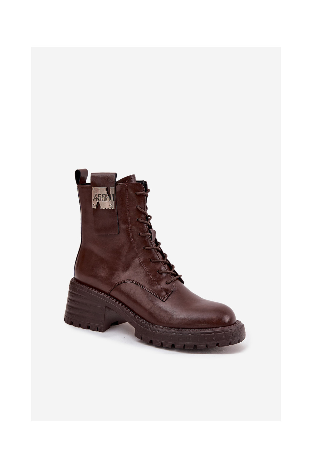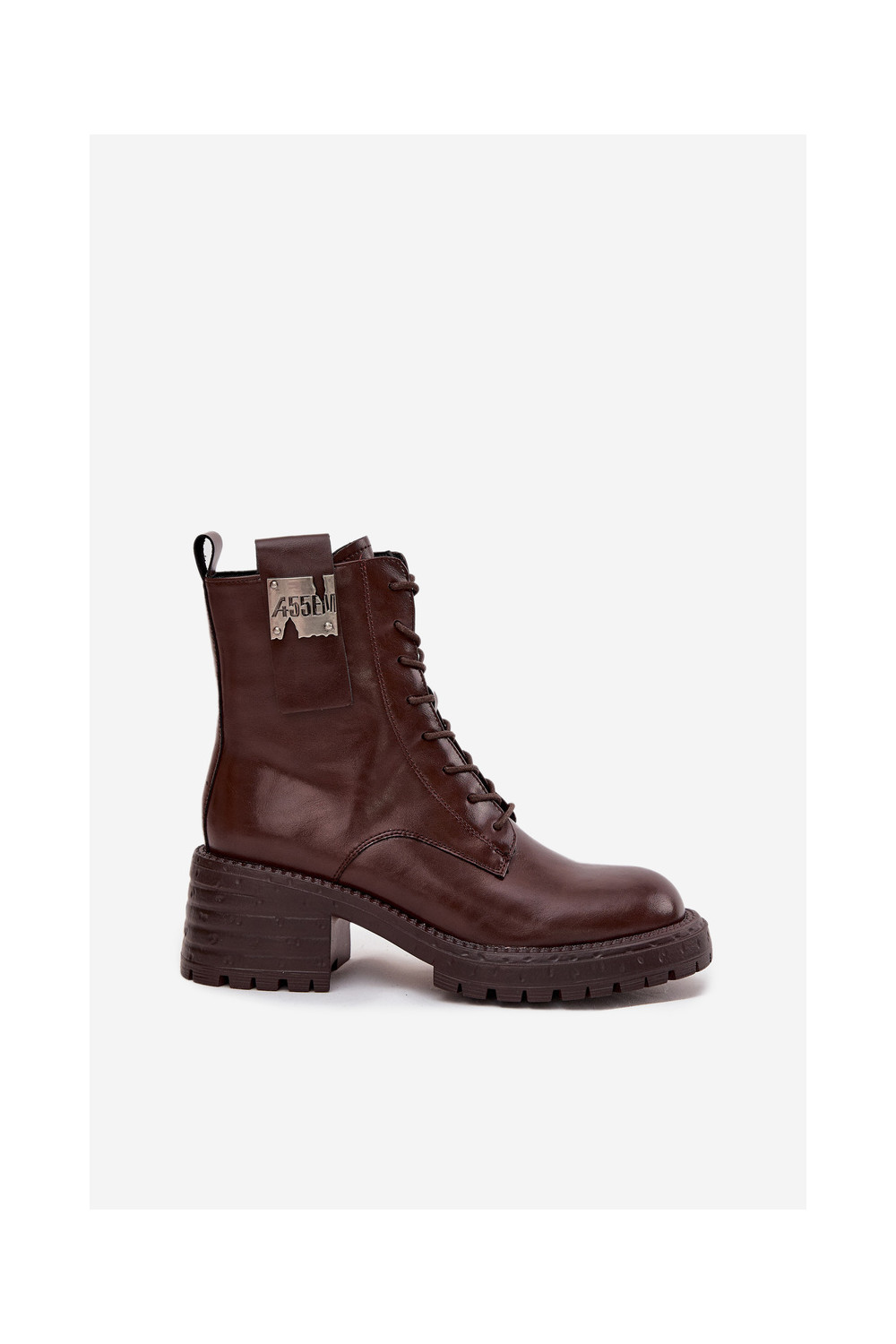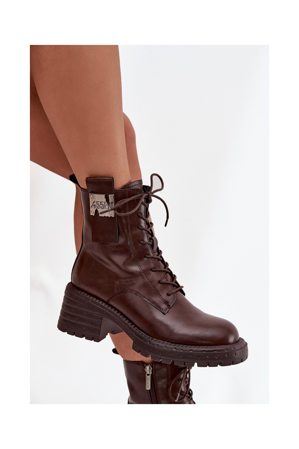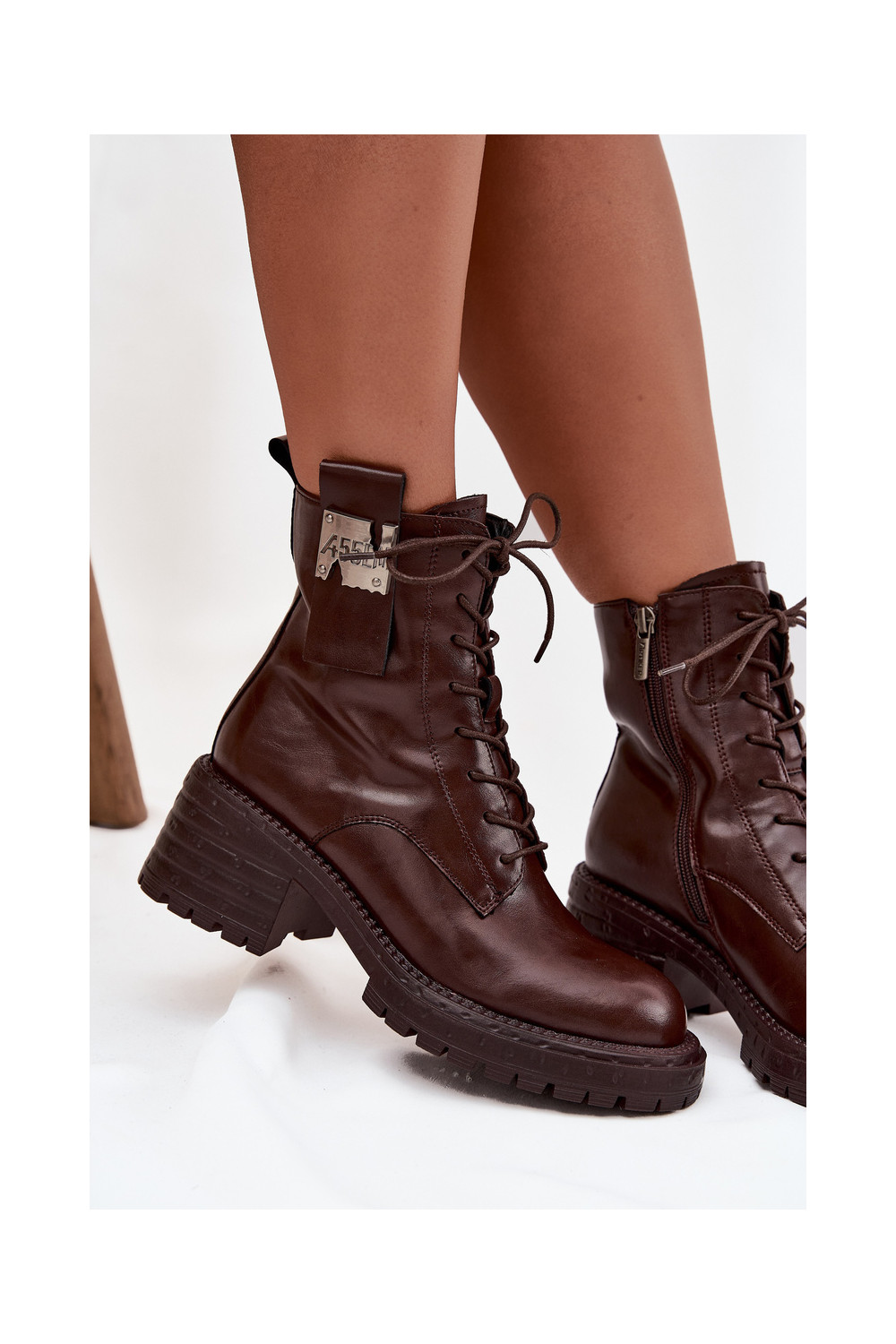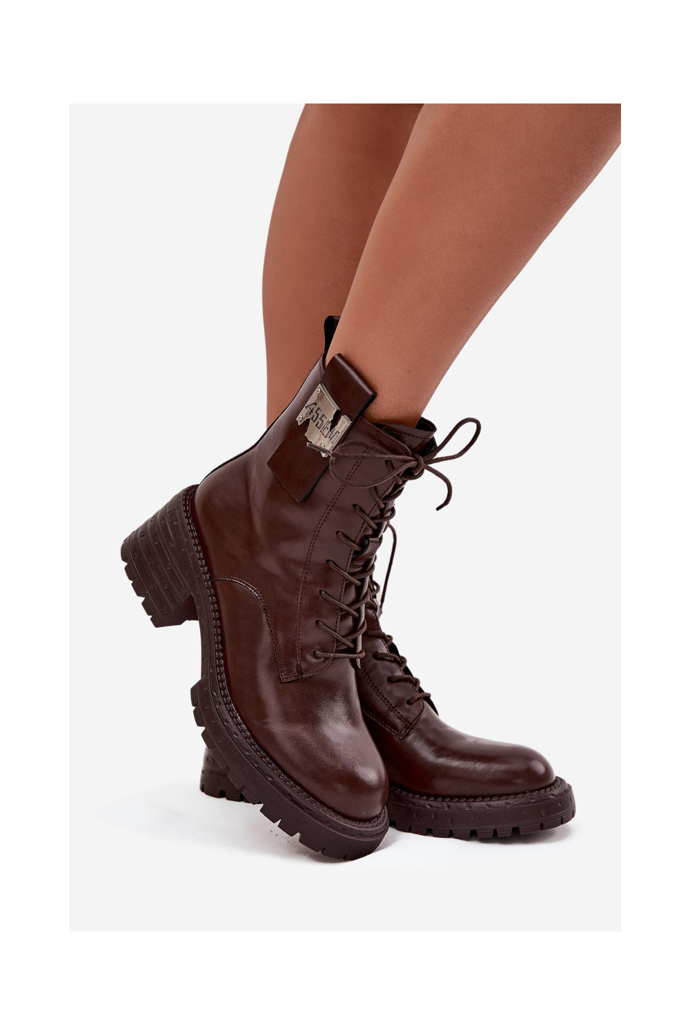 Odiniai moteriški darbiniai aulinukai su platforma ir puošniomis detalėmis Artiker 57C0213 rudos spalvos