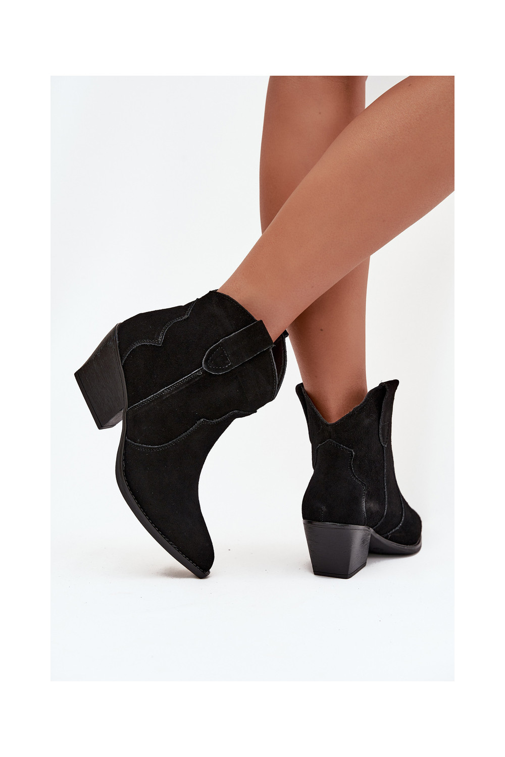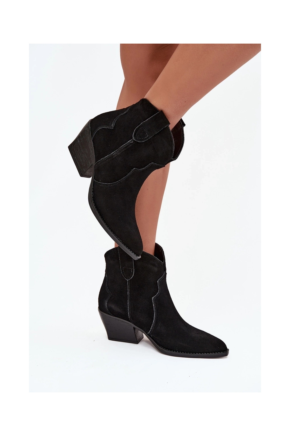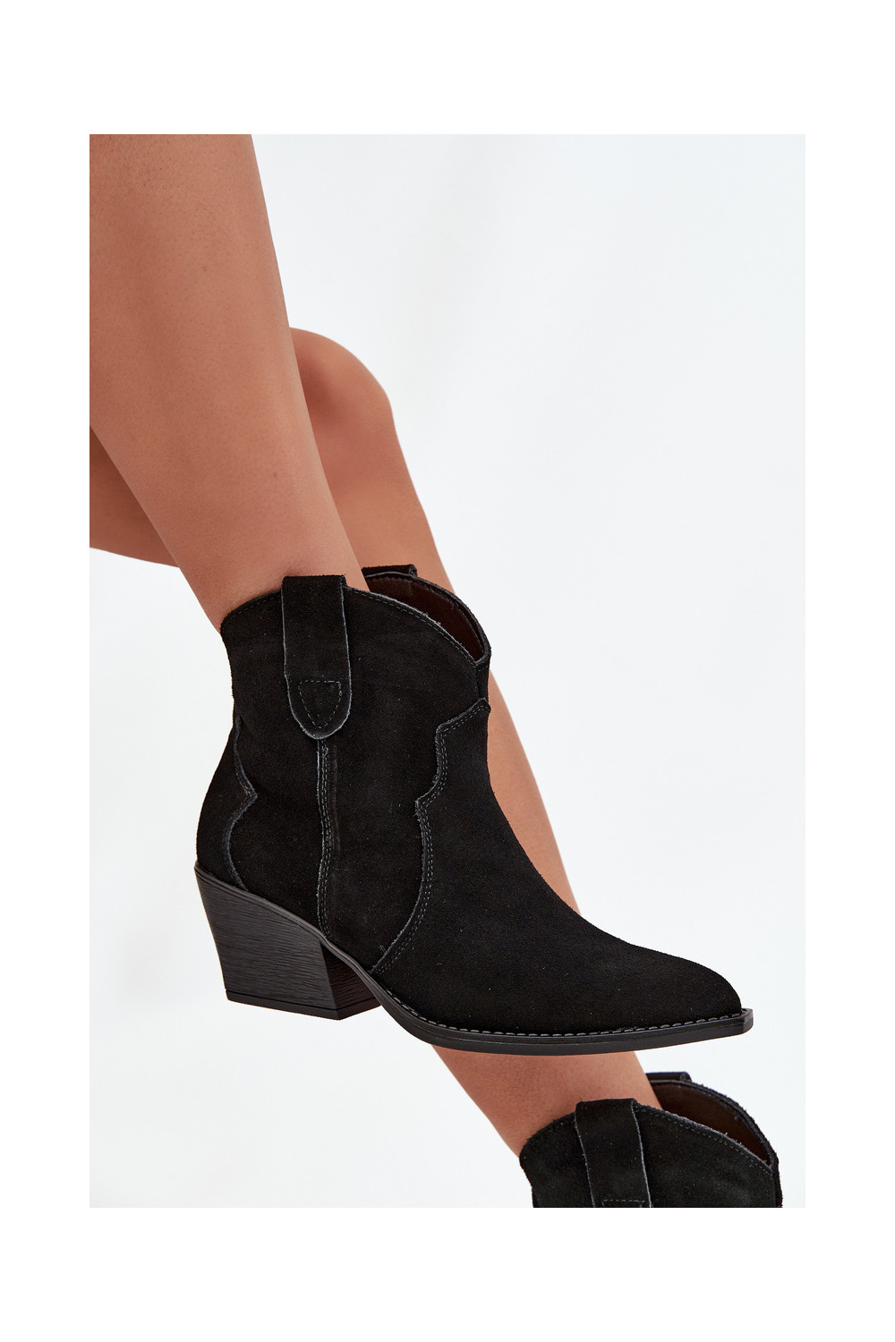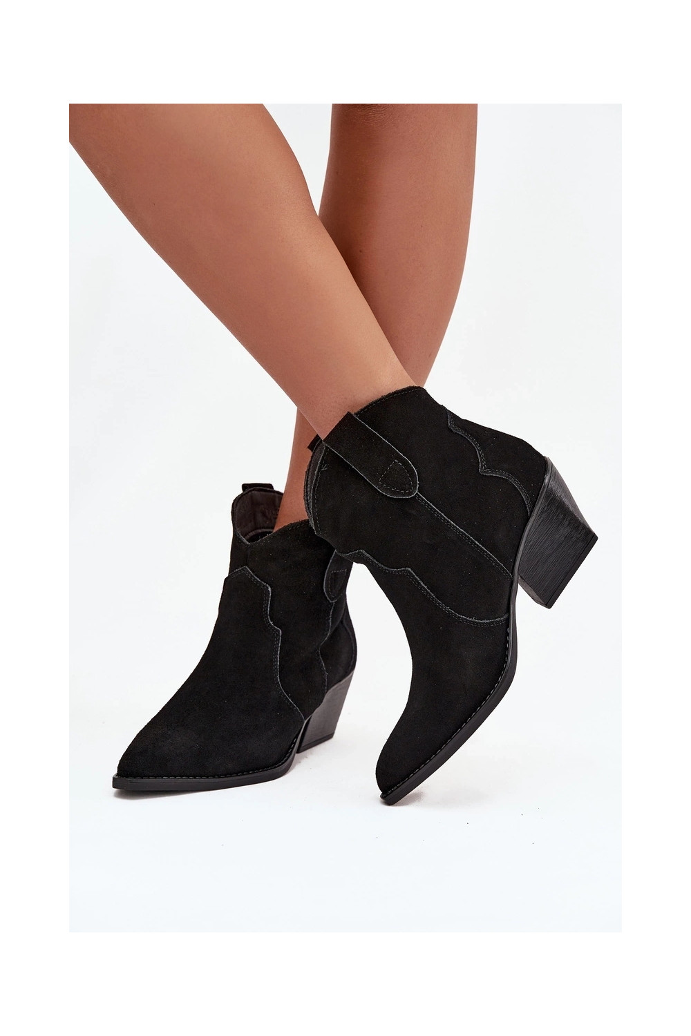 Įspiriami kaubojiško stiliaus moteriški aulinukai iš natūralios zomšos Beretta juodos spalvos