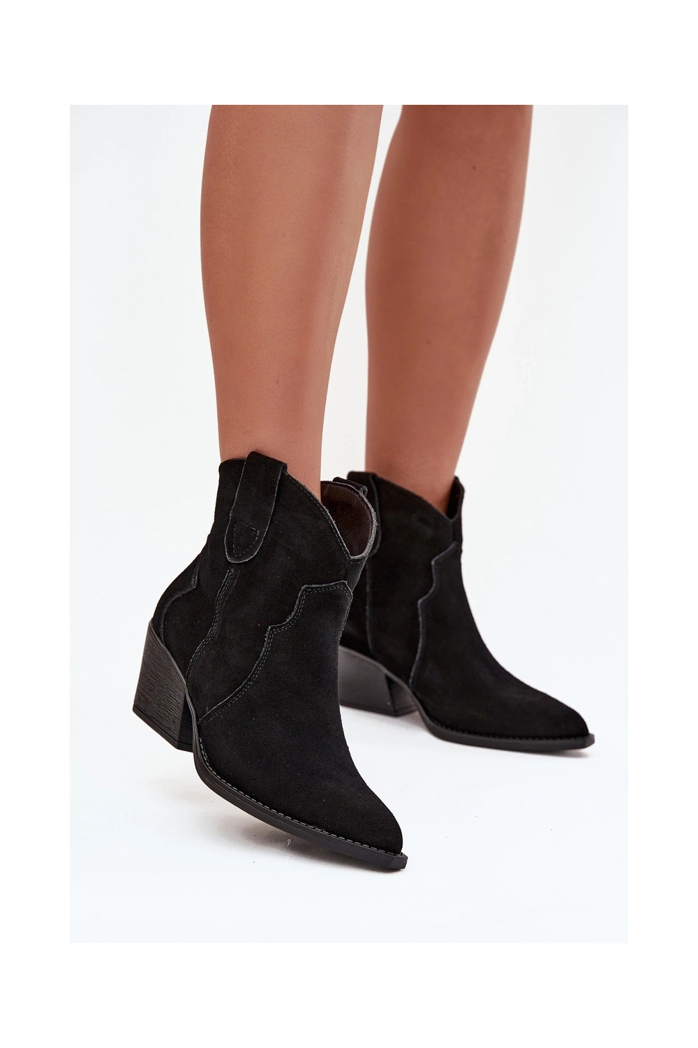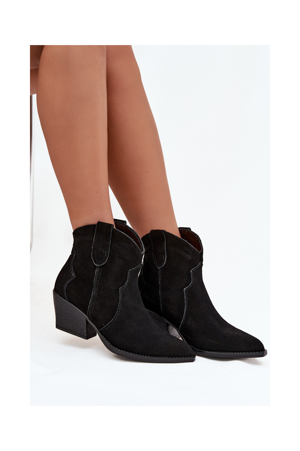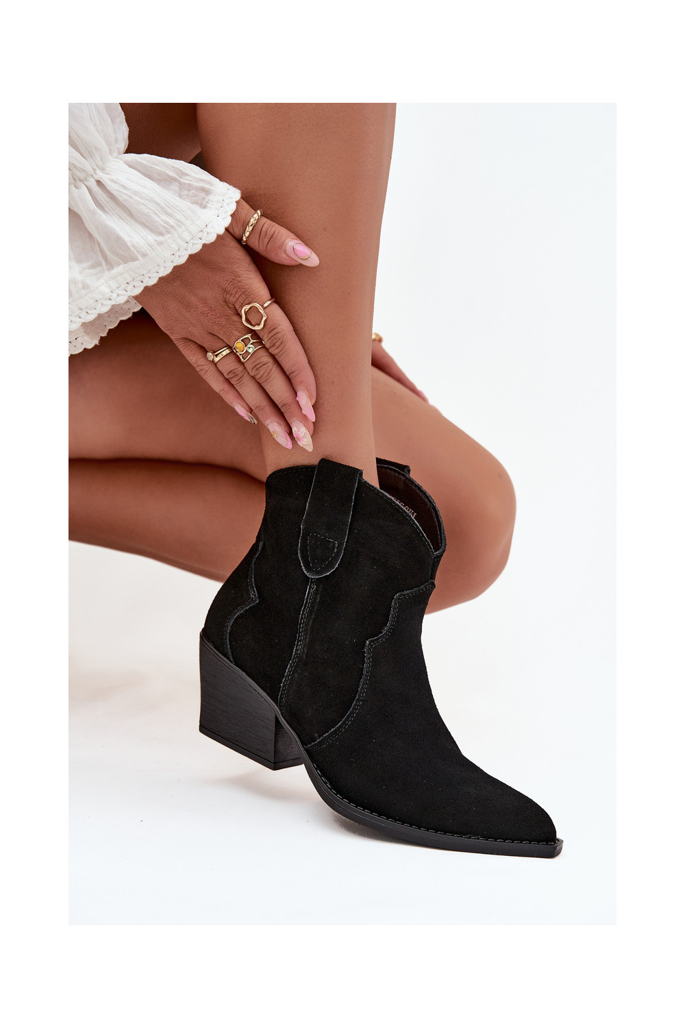 Įspiriami kaubojiško stiliaus moteriški aulinukai iš natūralios zomšos Beretta juodos spalvos