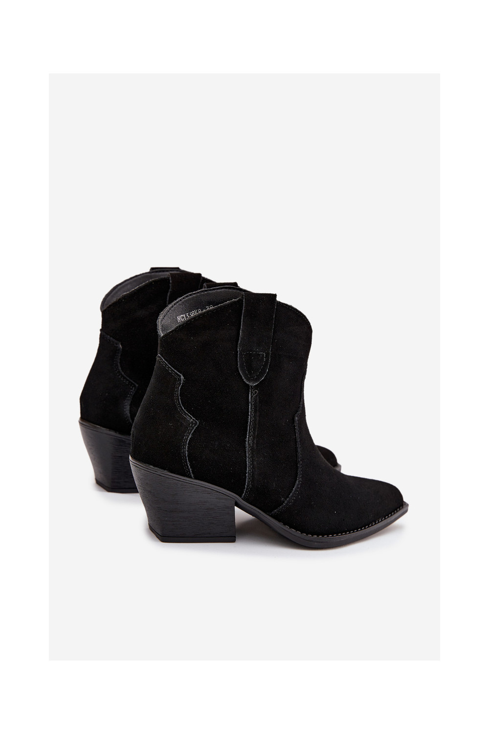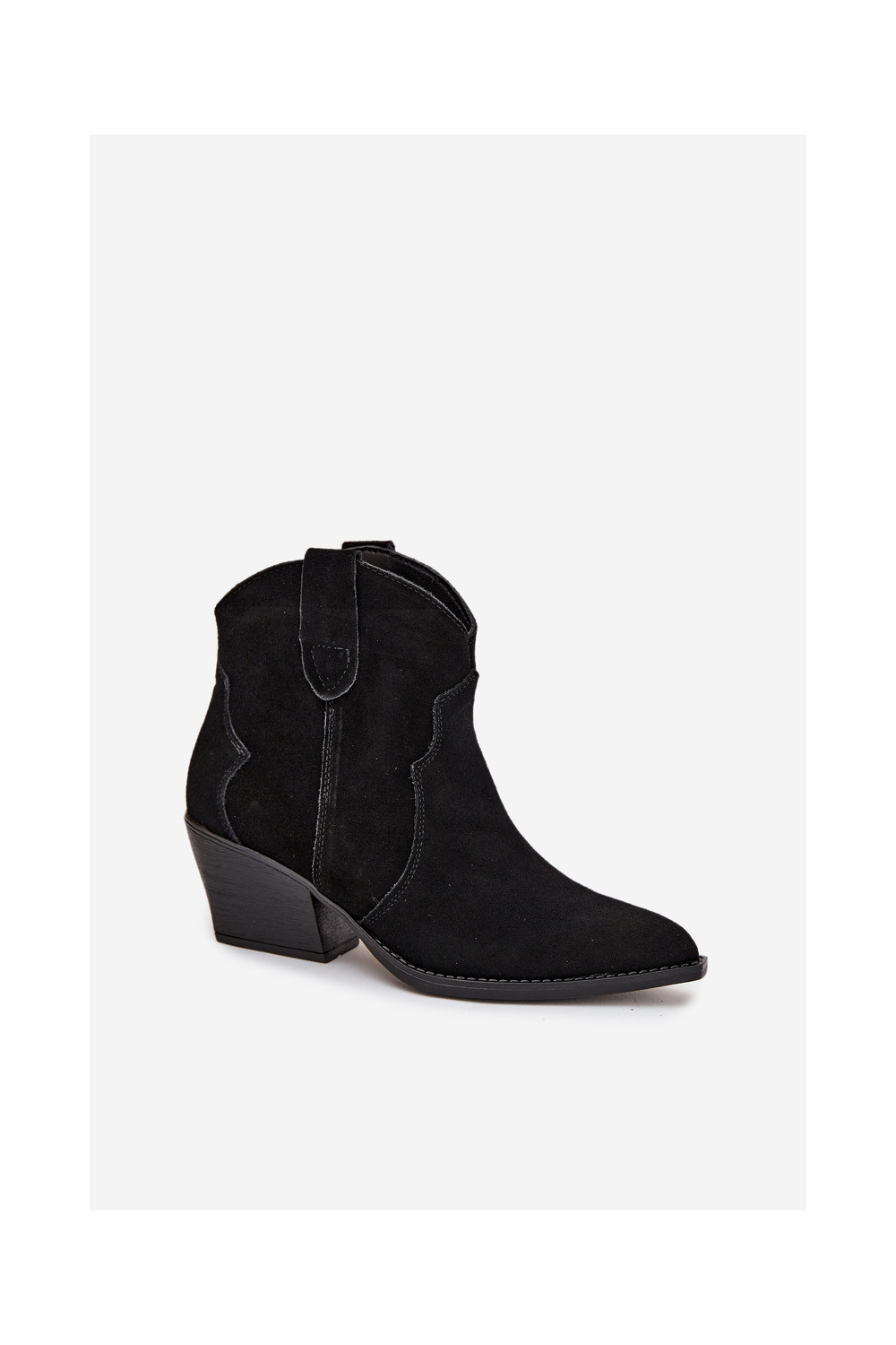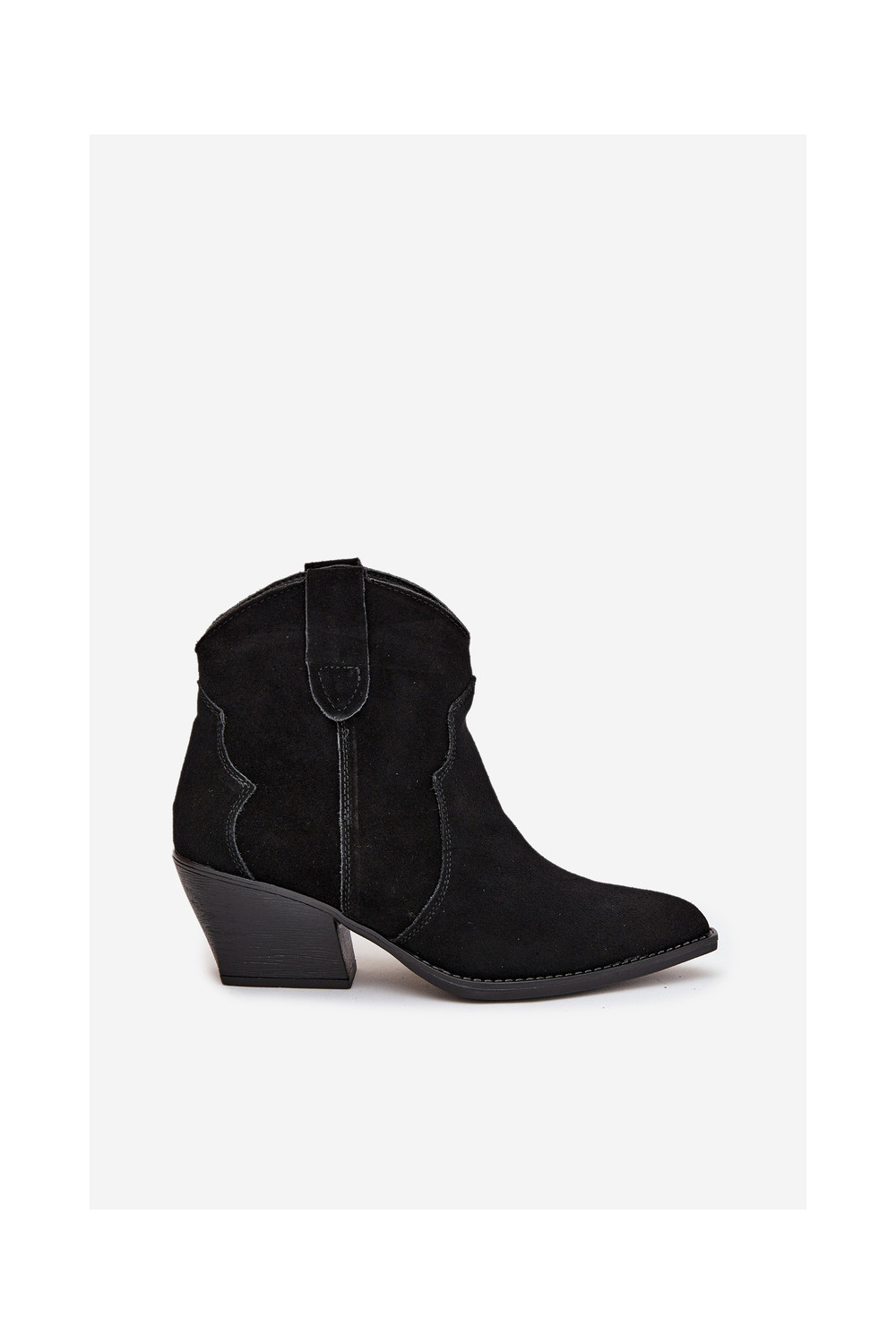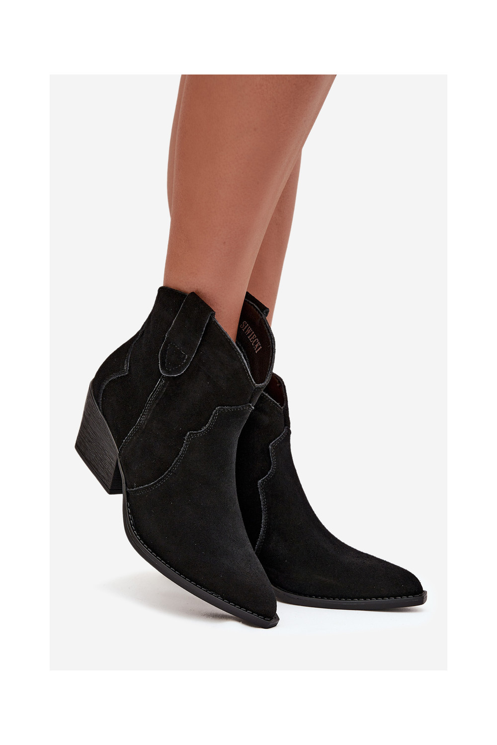 Įspiriami kaubojiško stiliaus moteriški aulinukai iš natūralios zomšos Beretta juodos spalvos