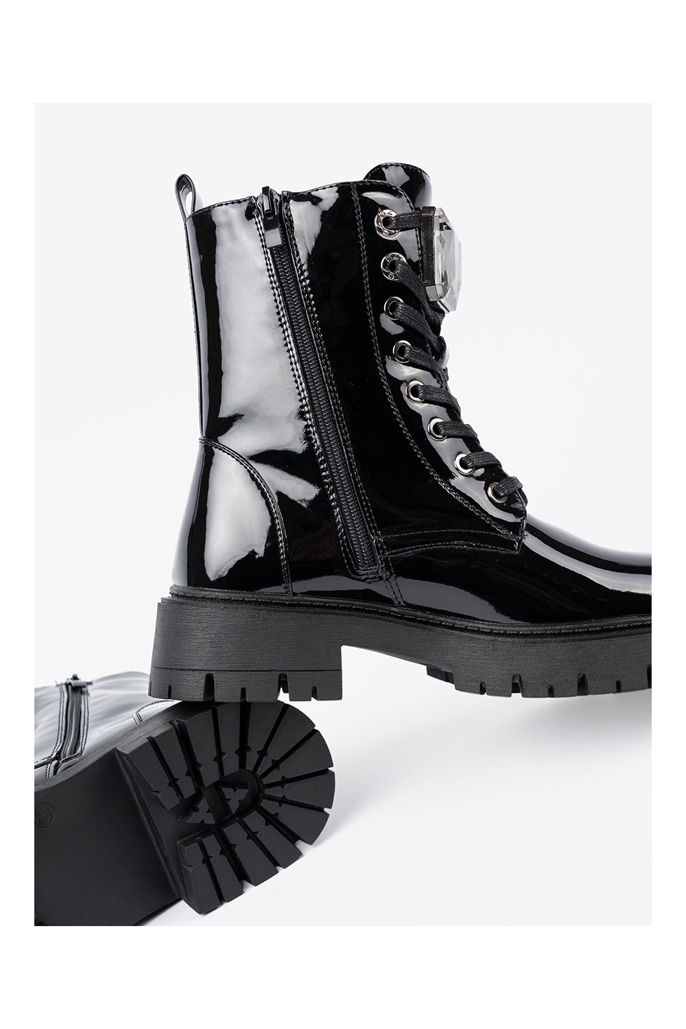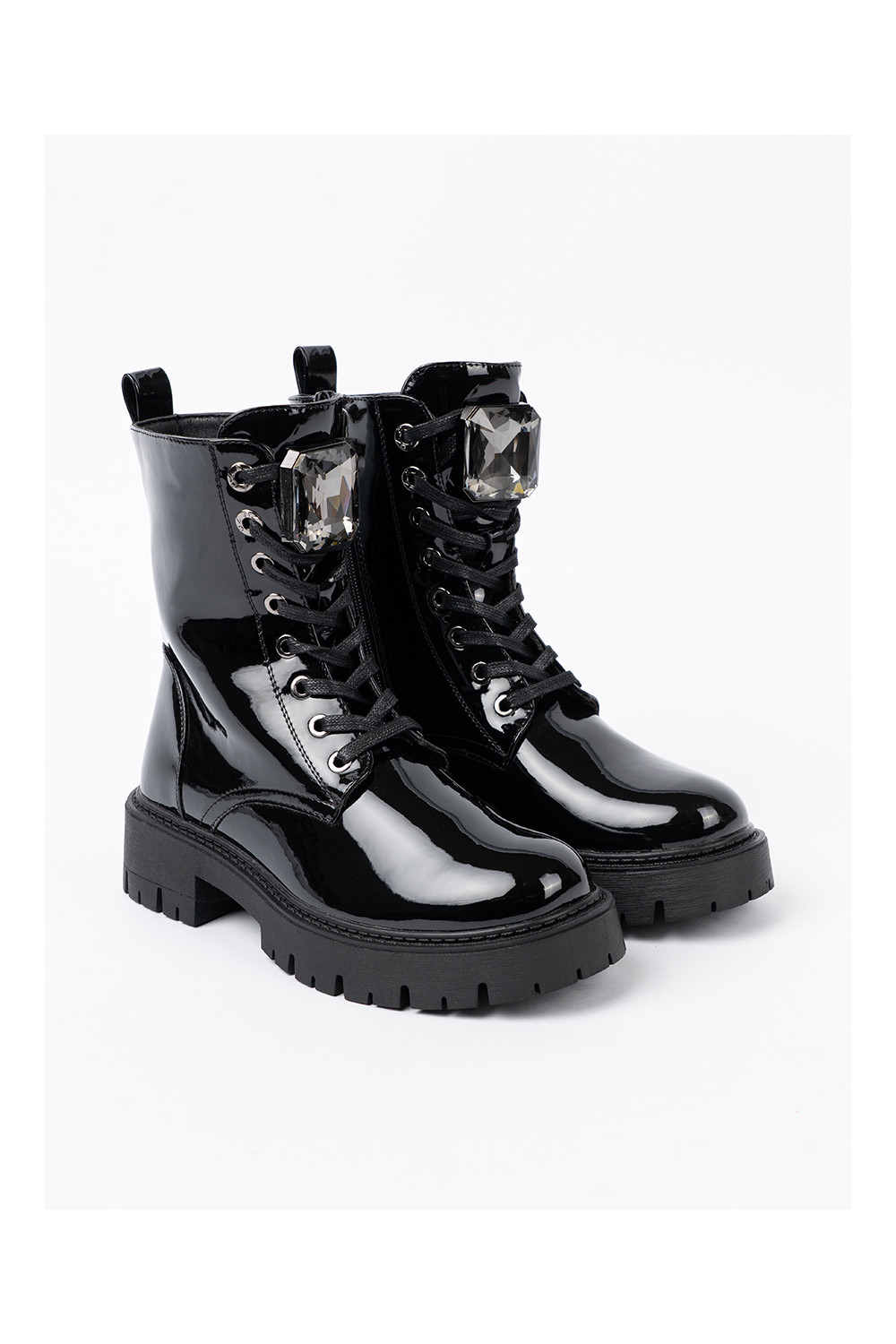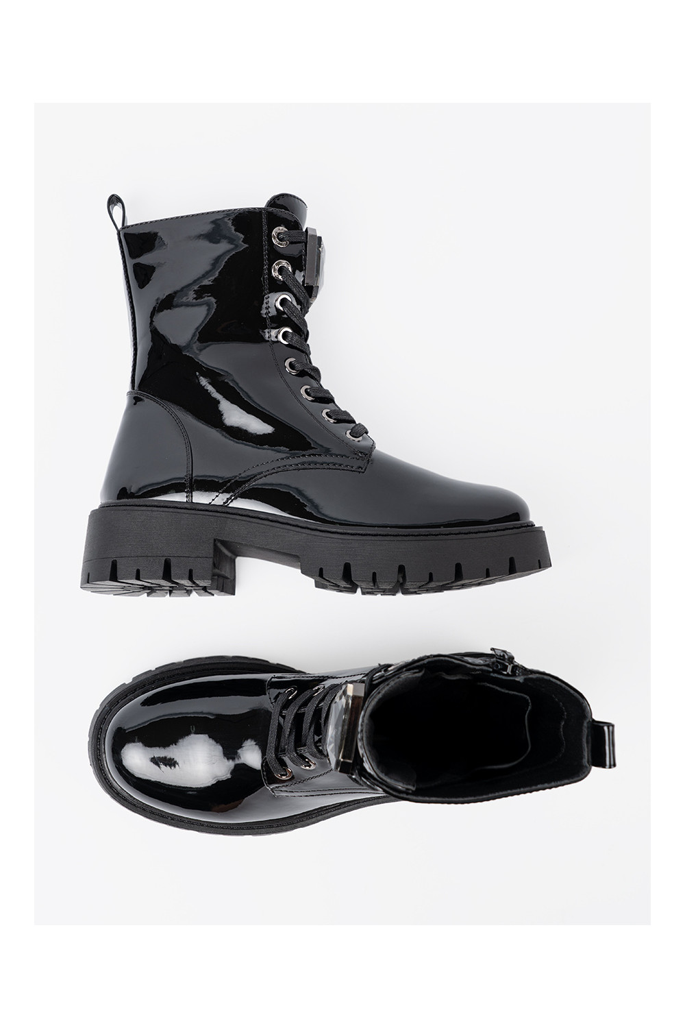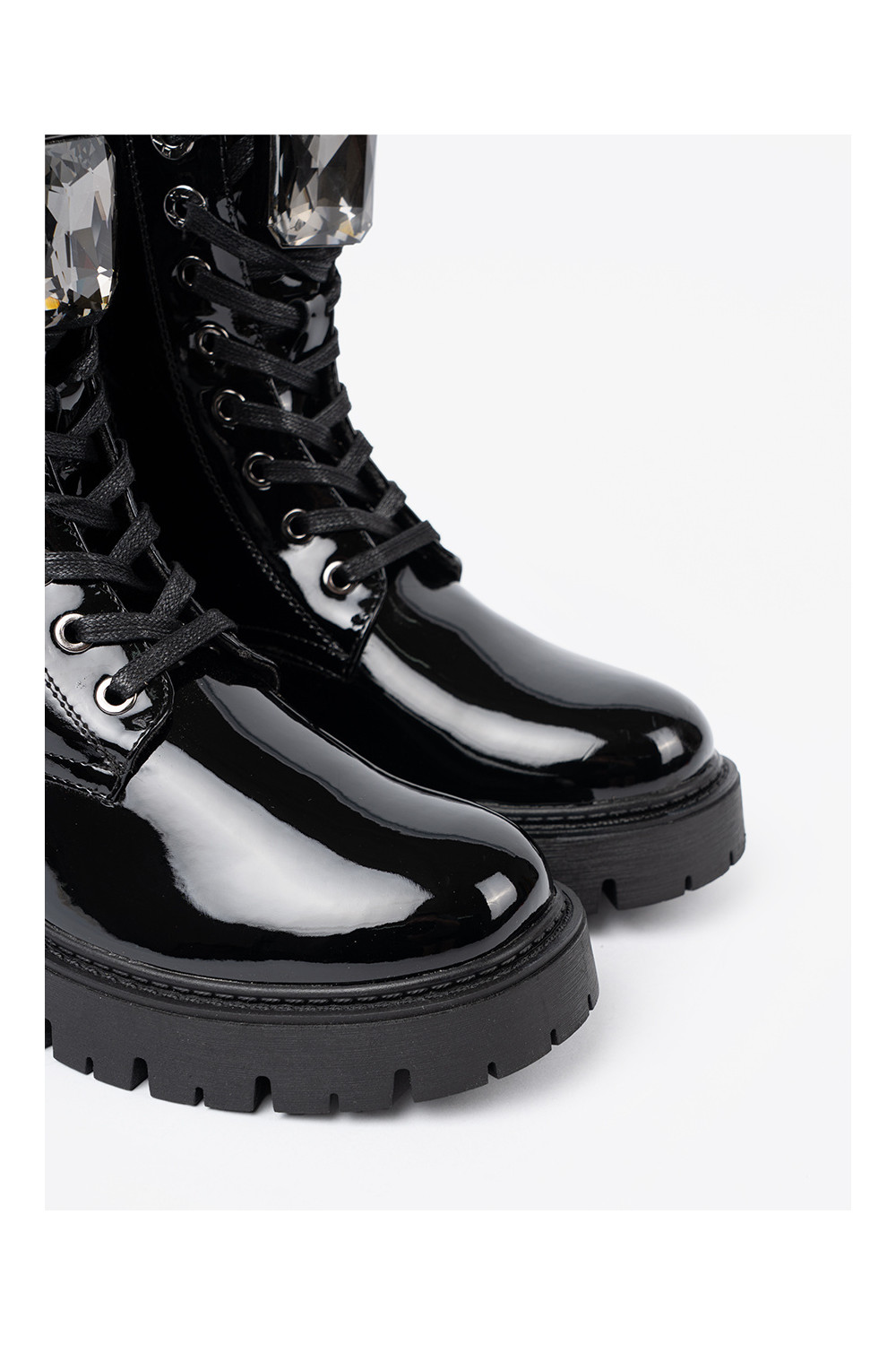 Lakuoti suvarstomi moteriški batai juodos spalvos