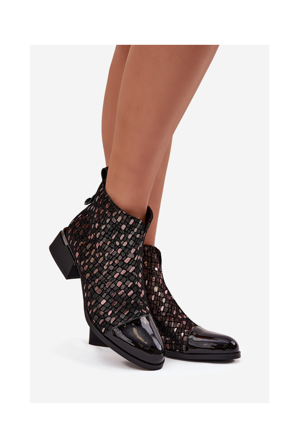 su lako efektu Moteriški aulinukai Z Naturalnej Skóry žemu kulniuku D&A LZ52-960 Juodos spalvos