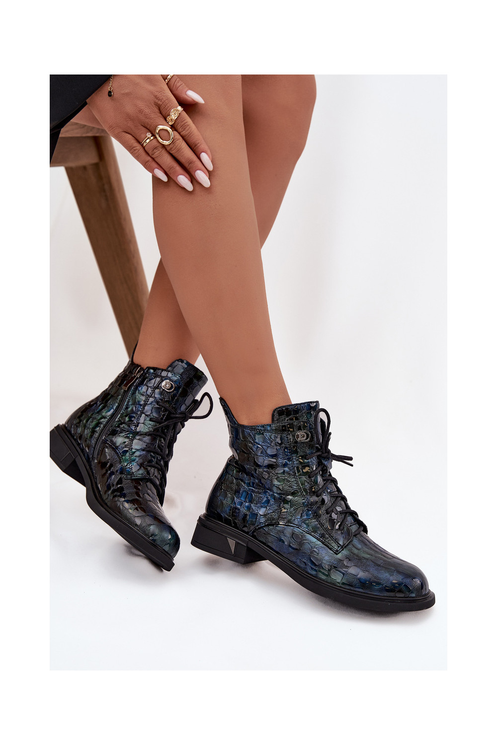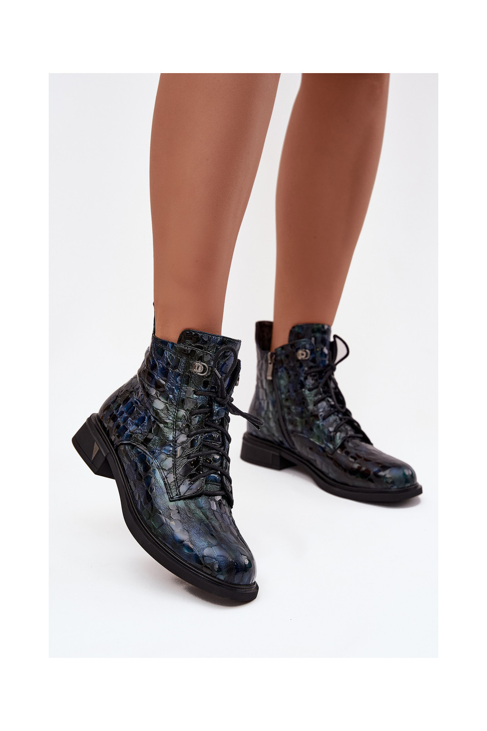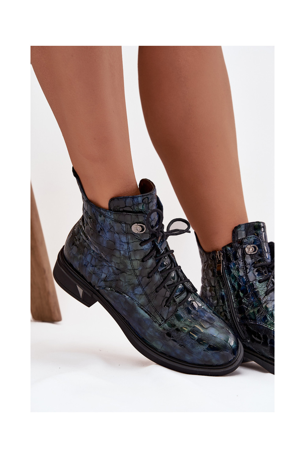 su lako efektu Moteriški aulinukai Z Naturalnej Skóry D&A LZ52-962 tamsiai mėlynos spalvos