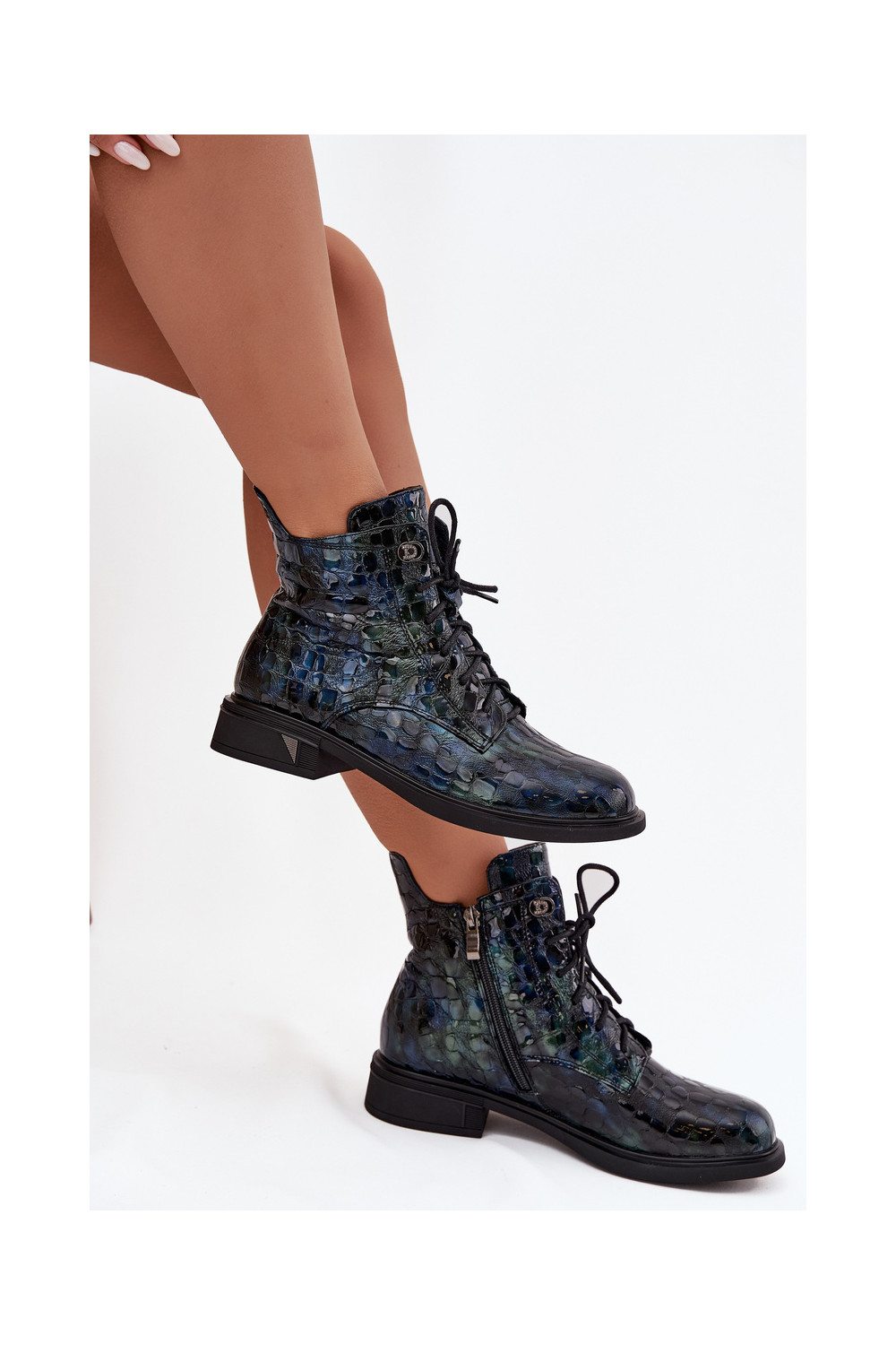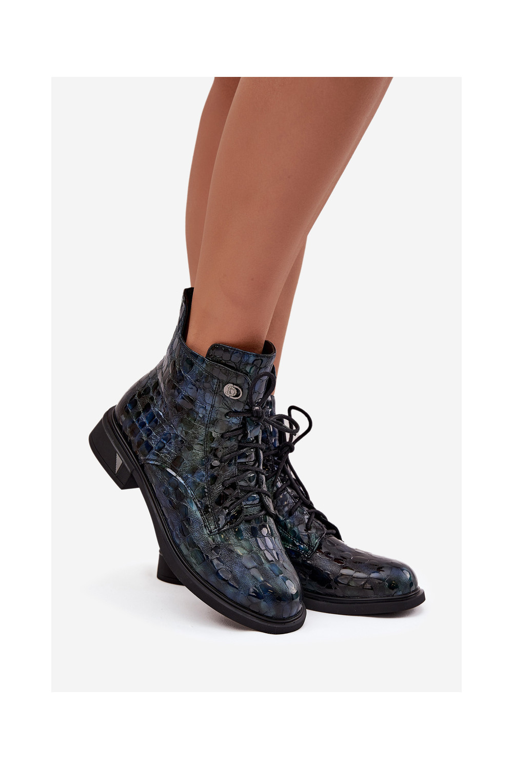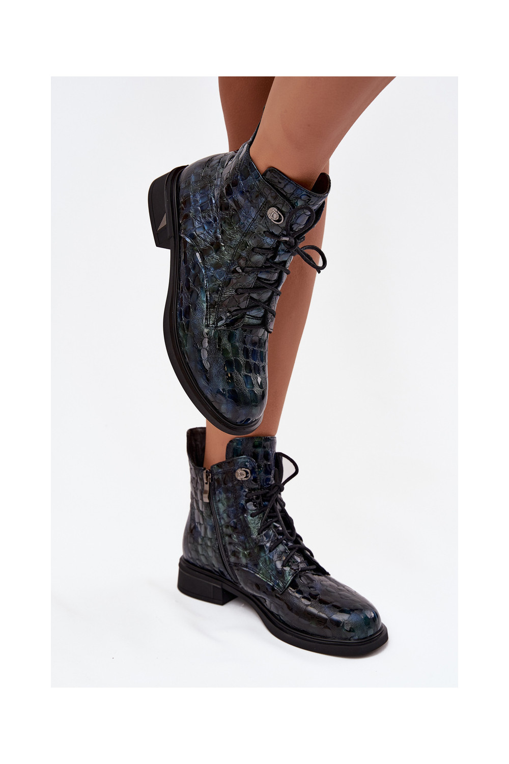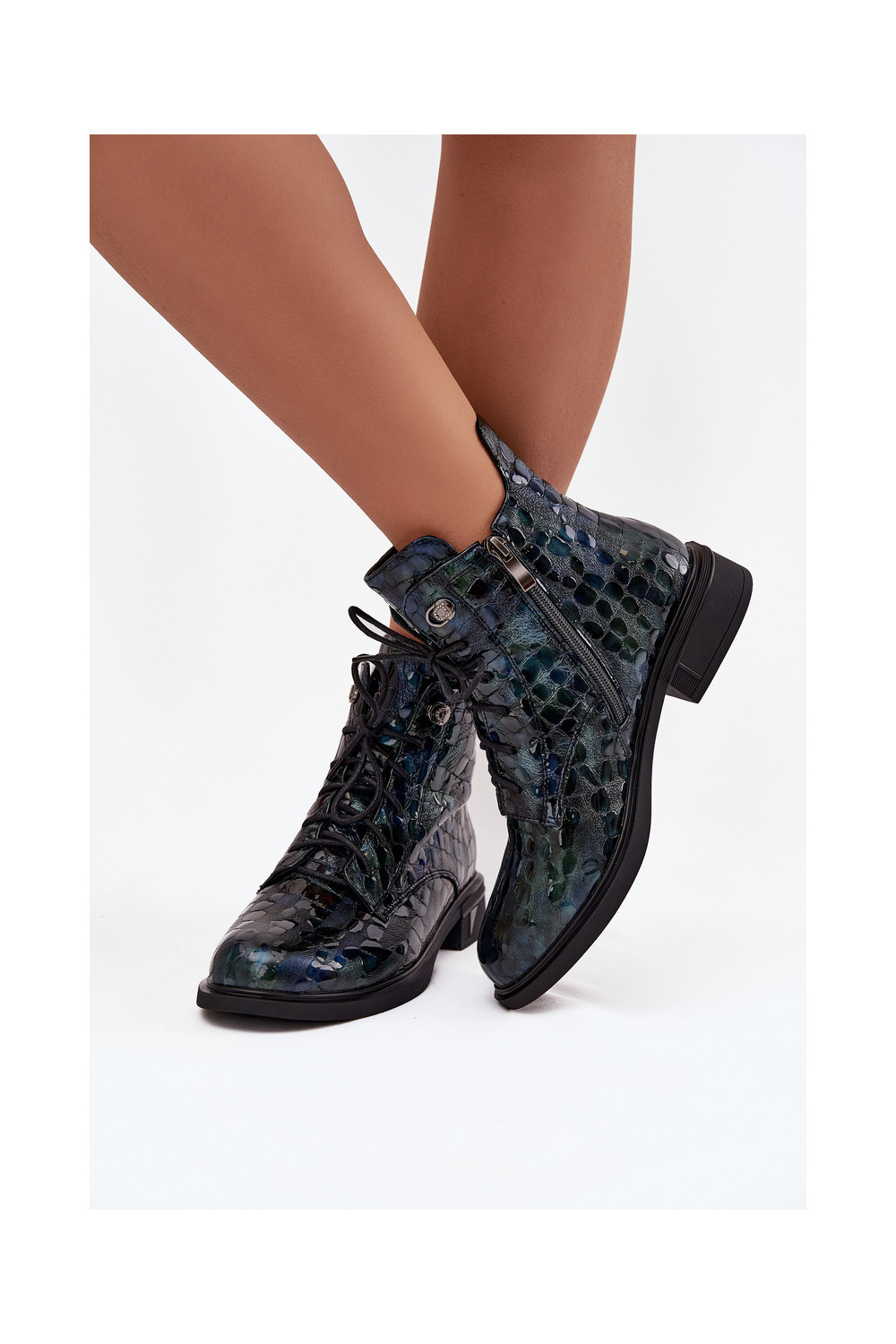 su lako efektu Moteriški aulinukai Z Naturalnej Skóry D&A LZ52-962 tamsiai mėlynos spalvos