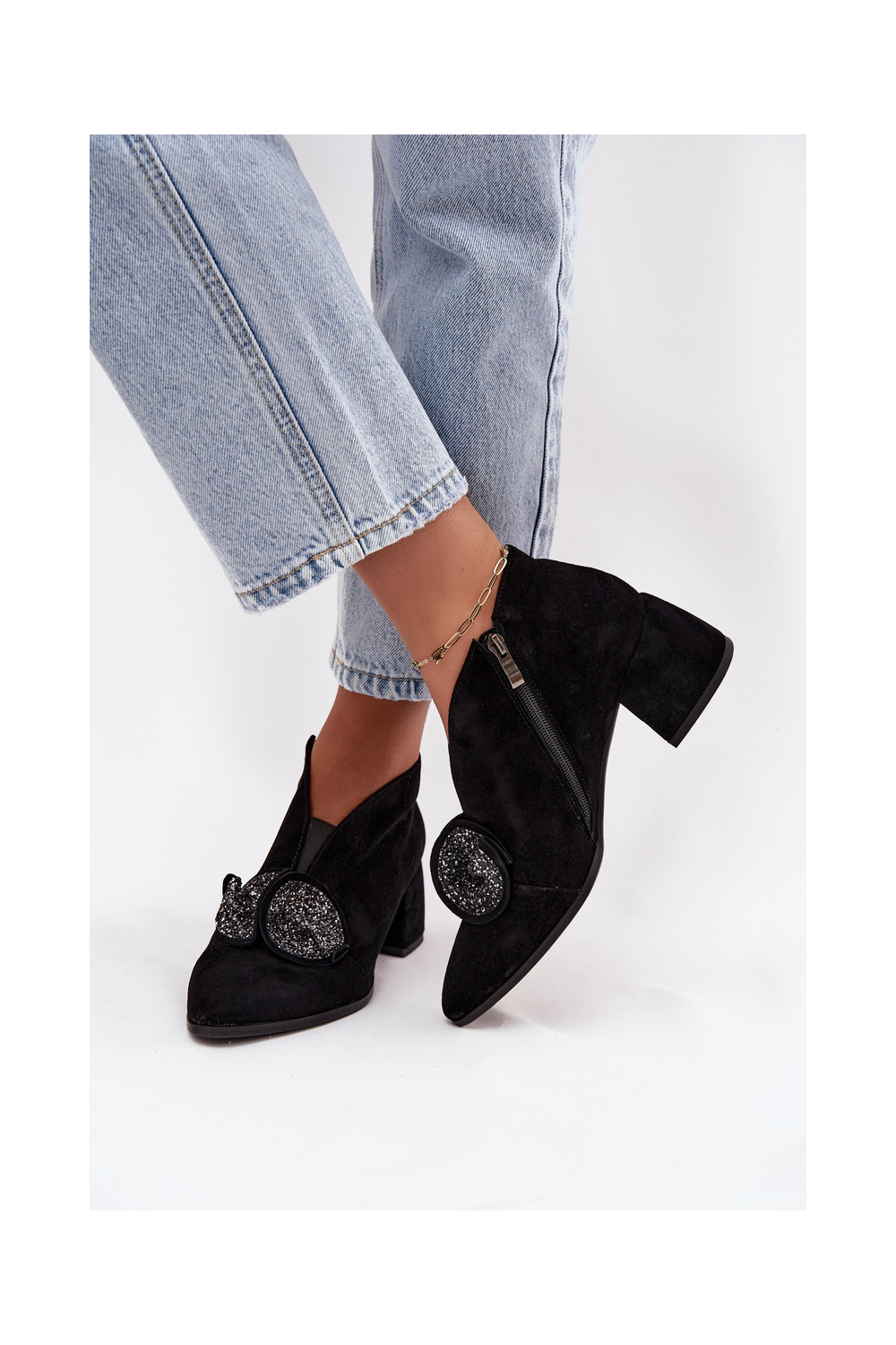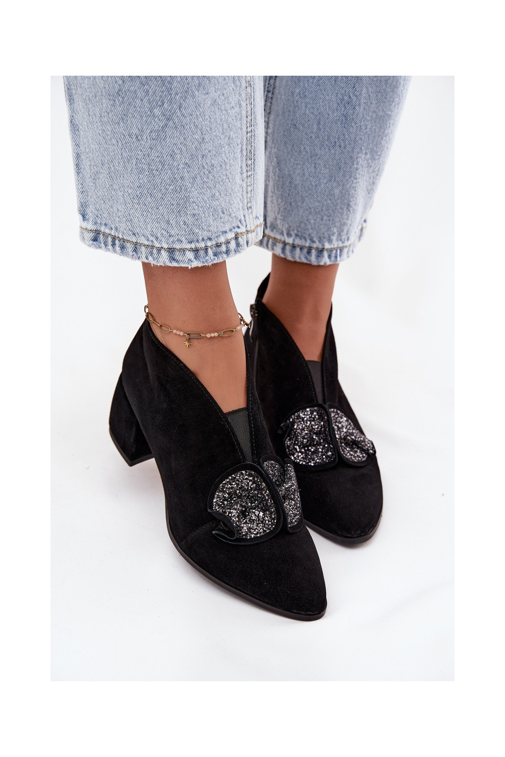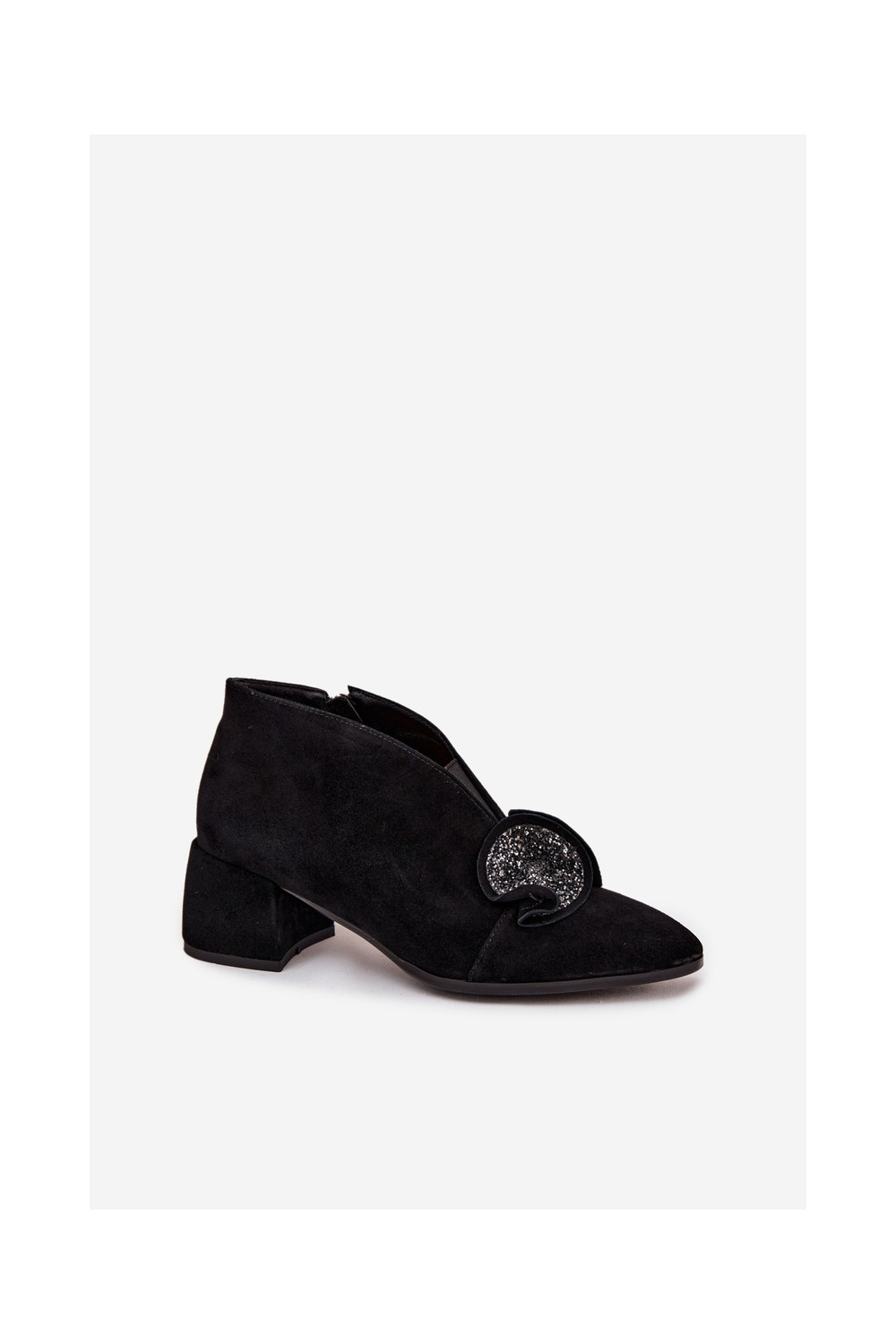 Zomšiniai batai su kulniukais su ornamentais D&A MR52-182 Juodos spalvos
