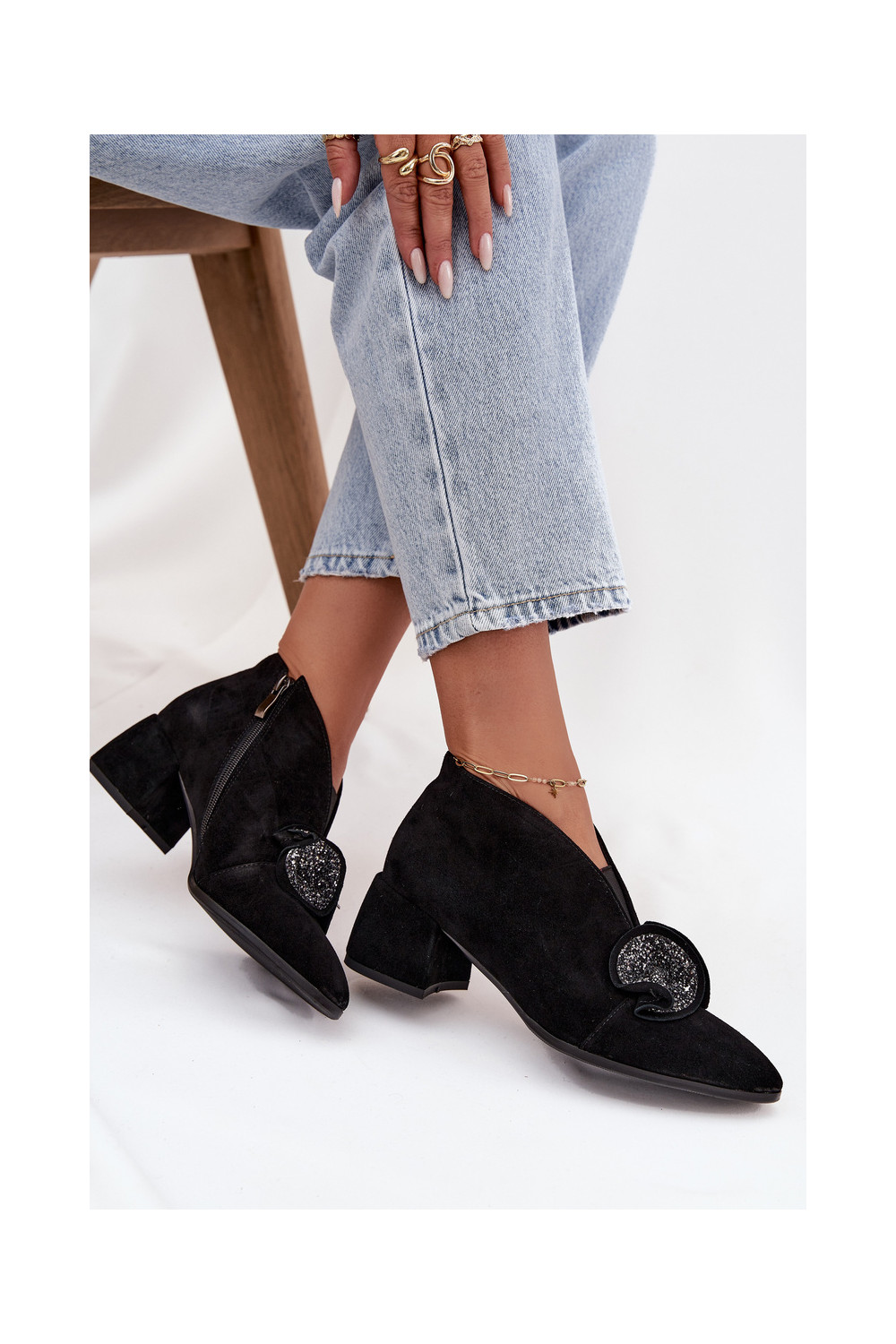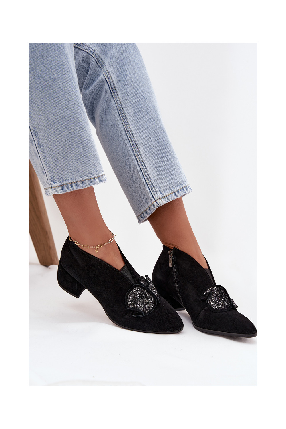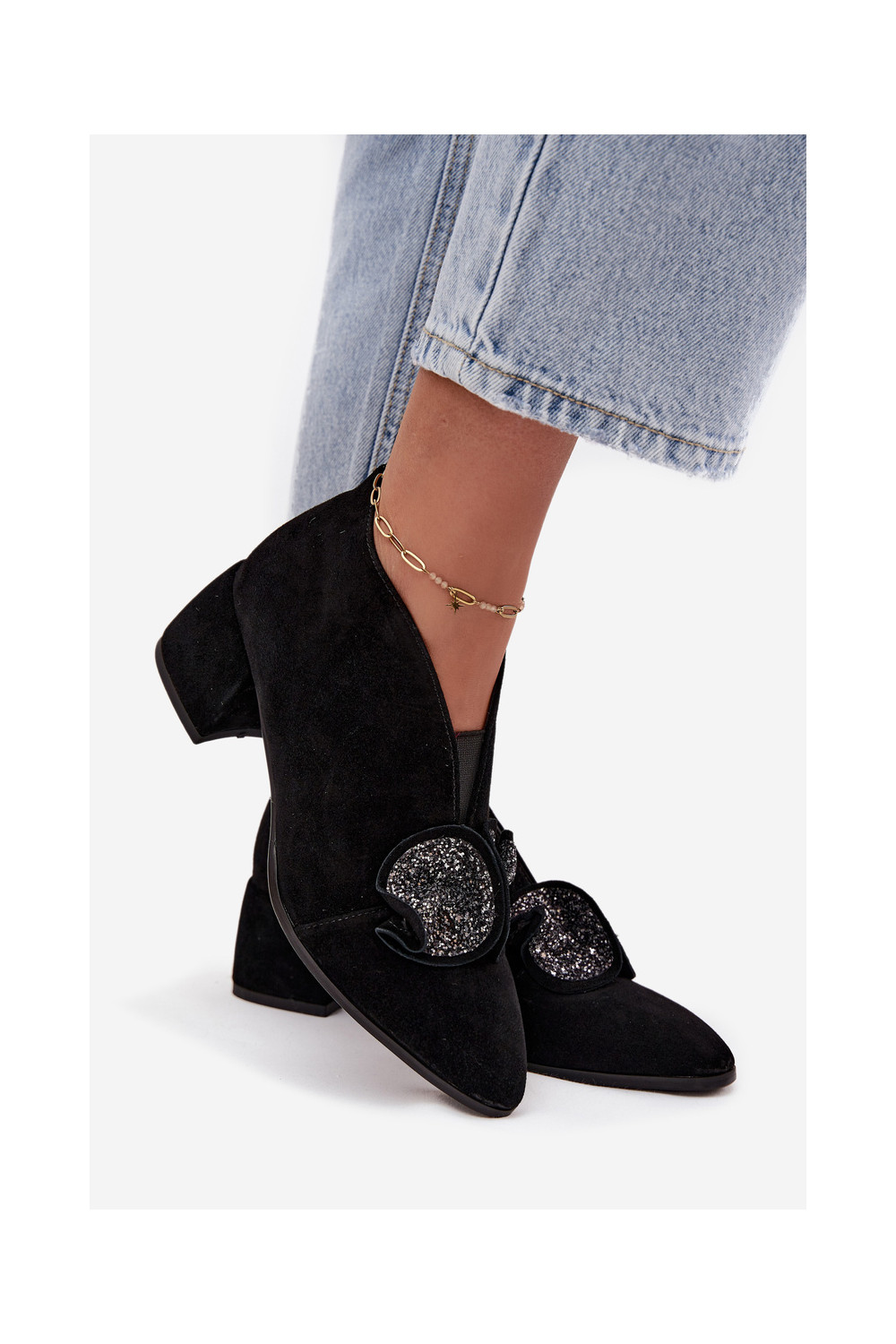 Zomšiniai batai su kulniukais su ornamentais D&A MR52-182 Juodos spalvos