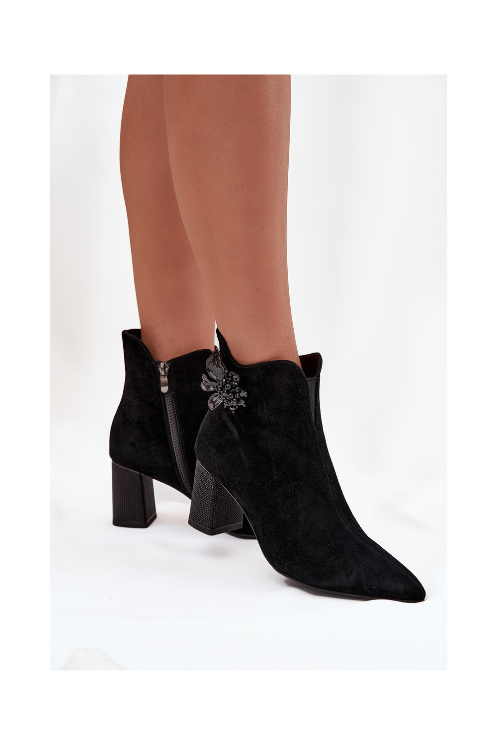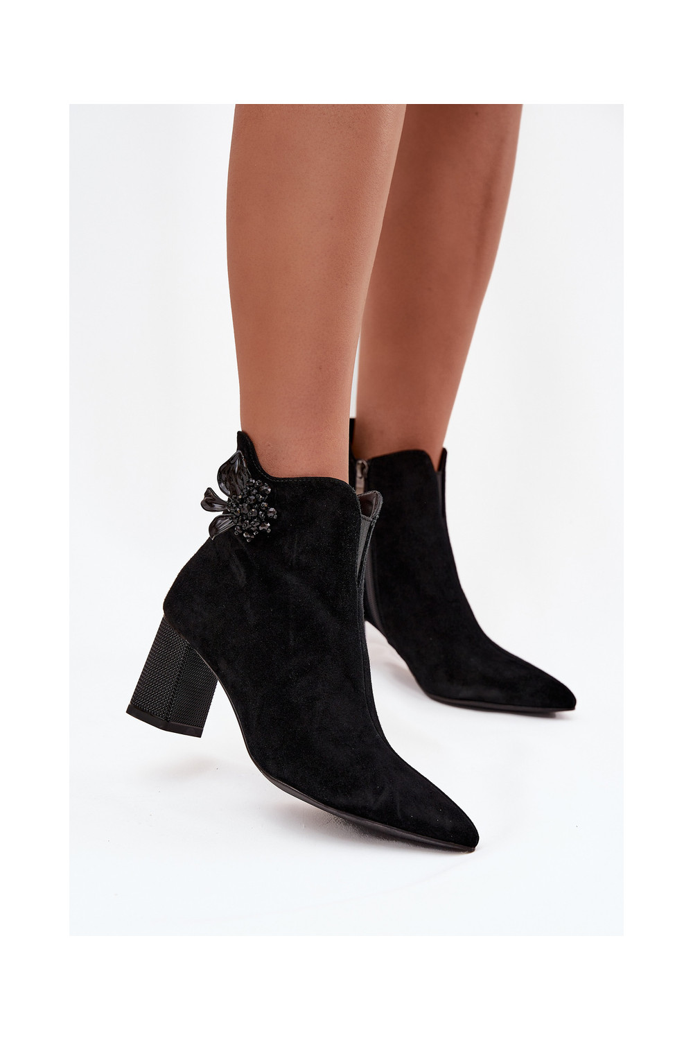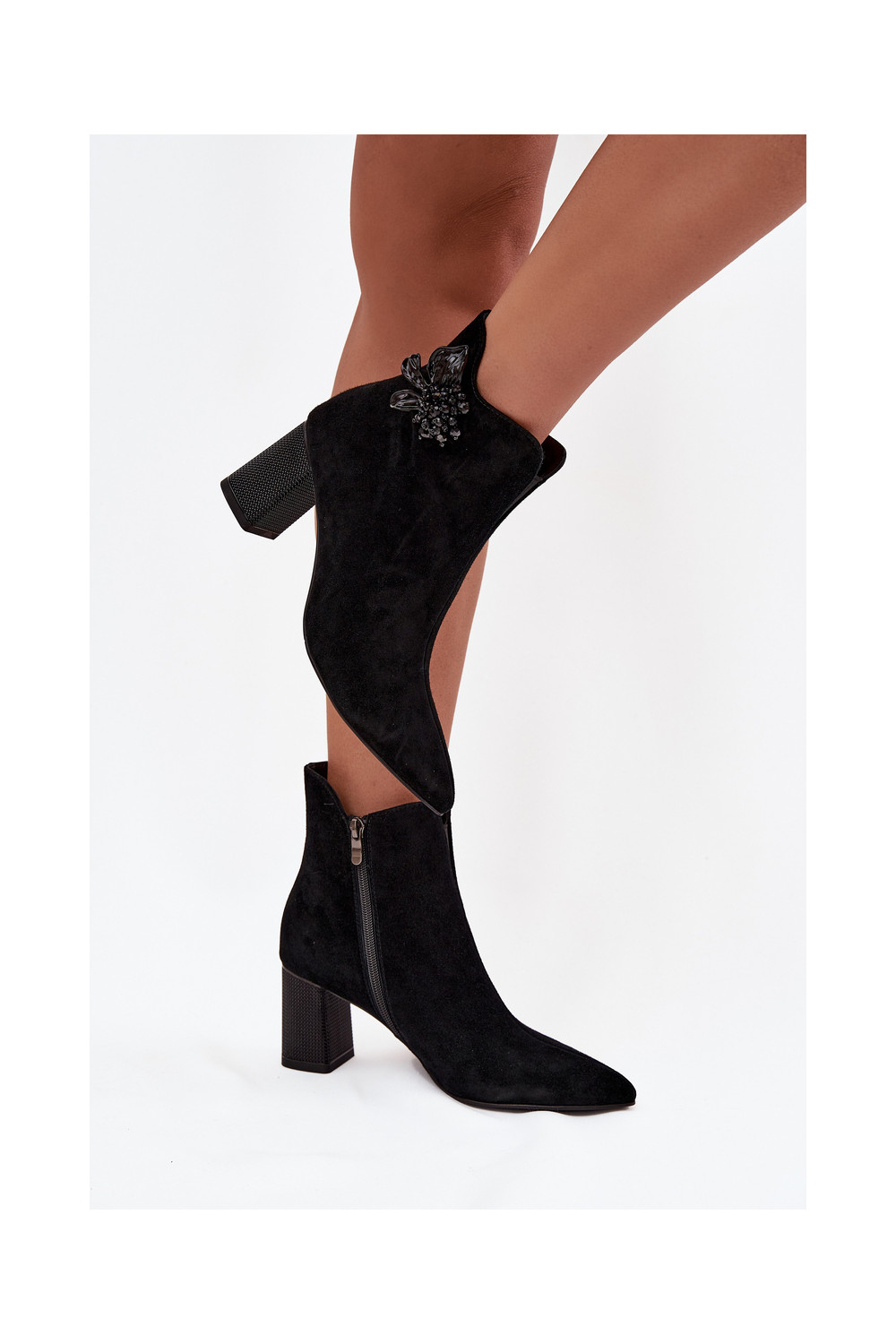 iš zomšos Moteriški aulinukai su ornamentais D&A CR52-686 juodos spalvos