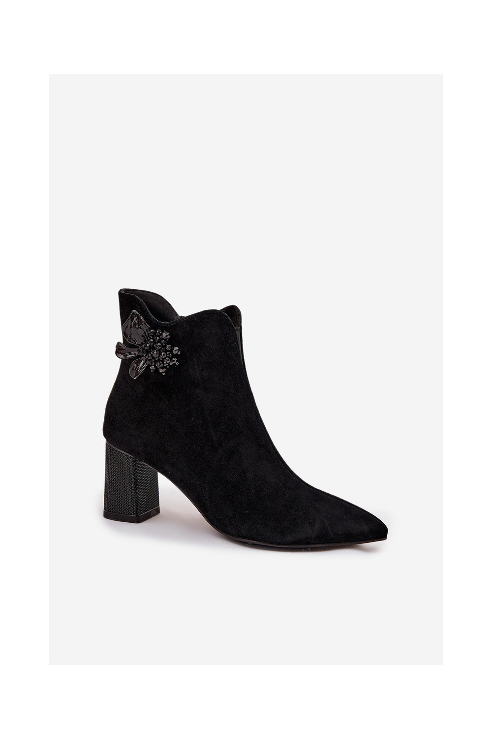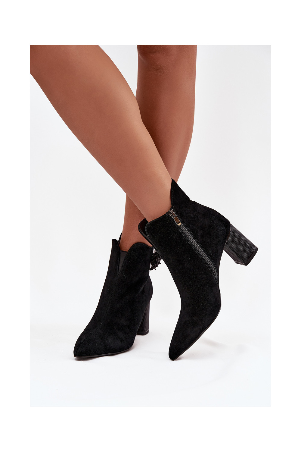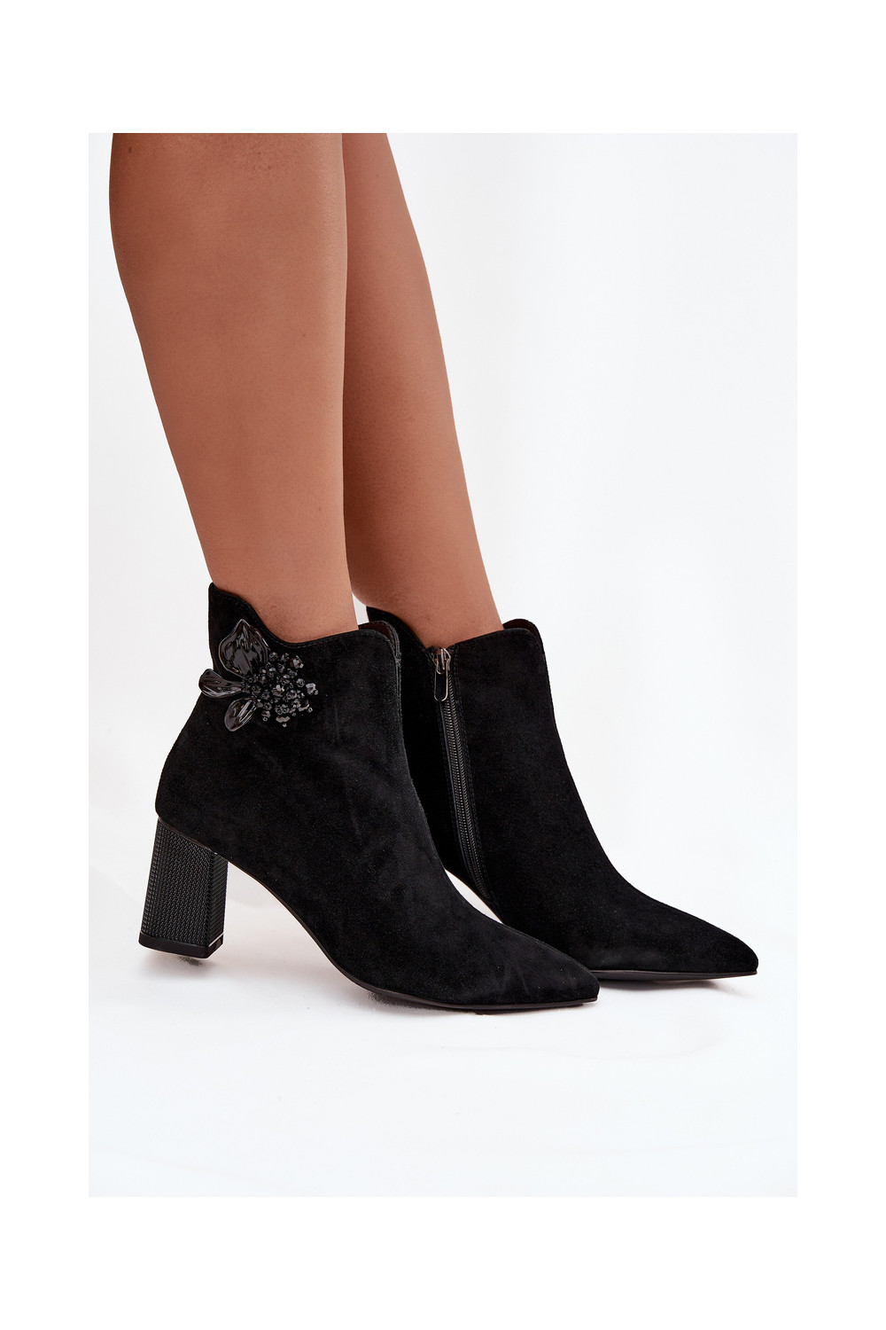 iš zomšos Moteriški aulinukai su ornamentais D&A CR52-686 juodos spalvos
