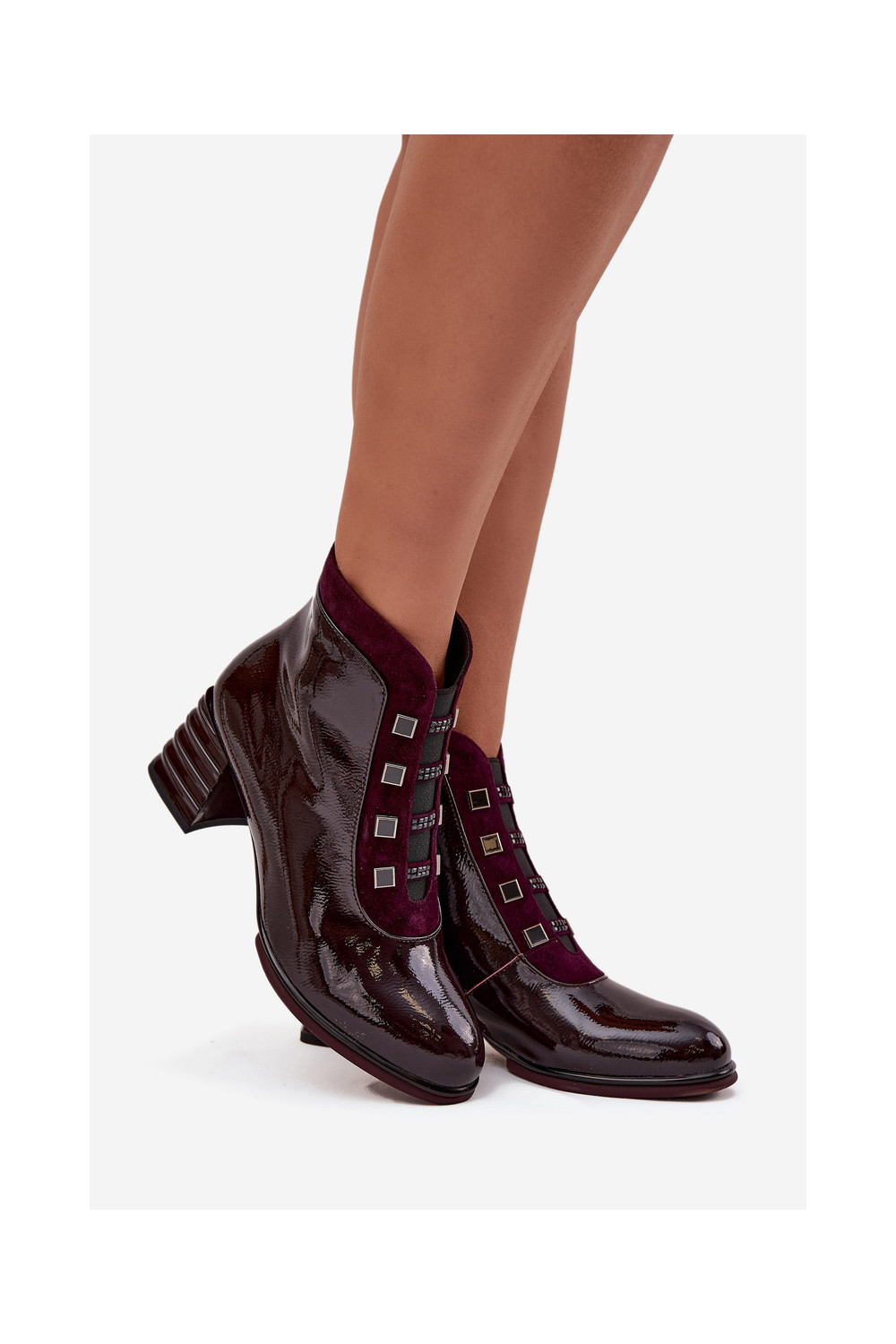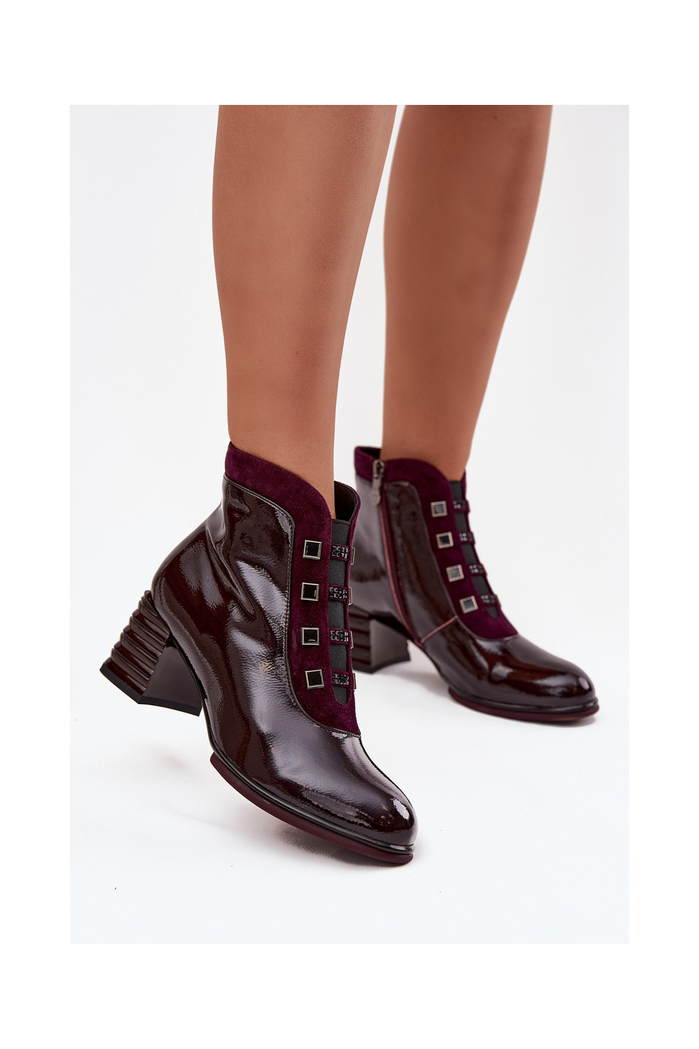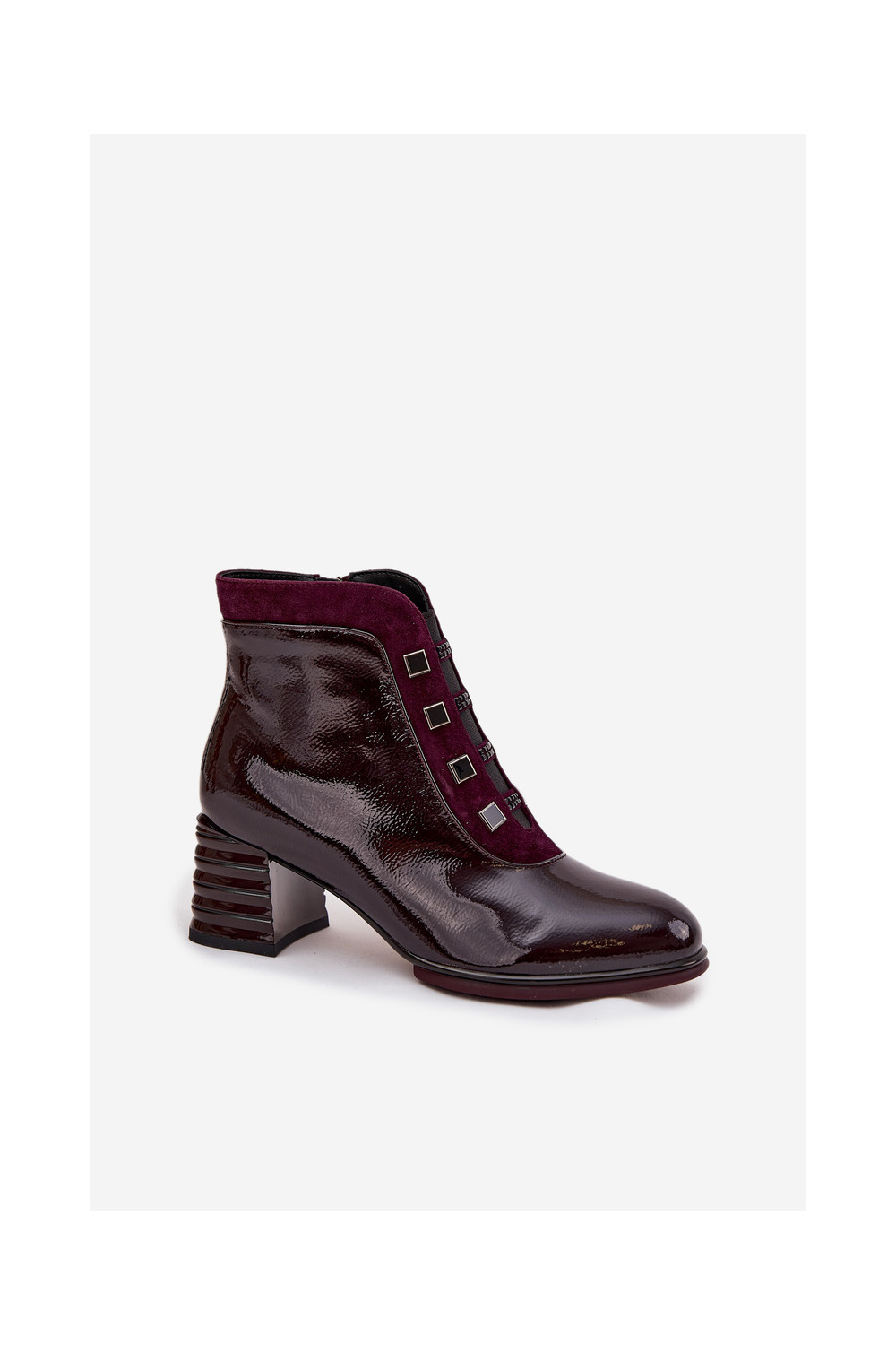 Moteriški lakiniai aulinukai iš dirbtinės odos su kulniukais D&A CR52-696 bordo spalvos