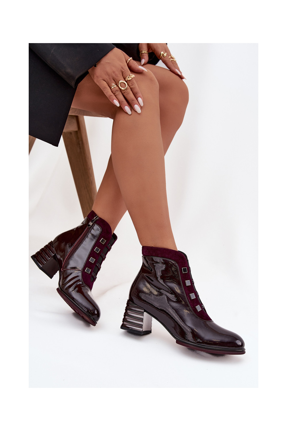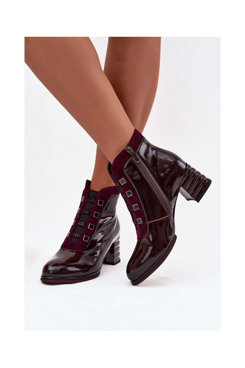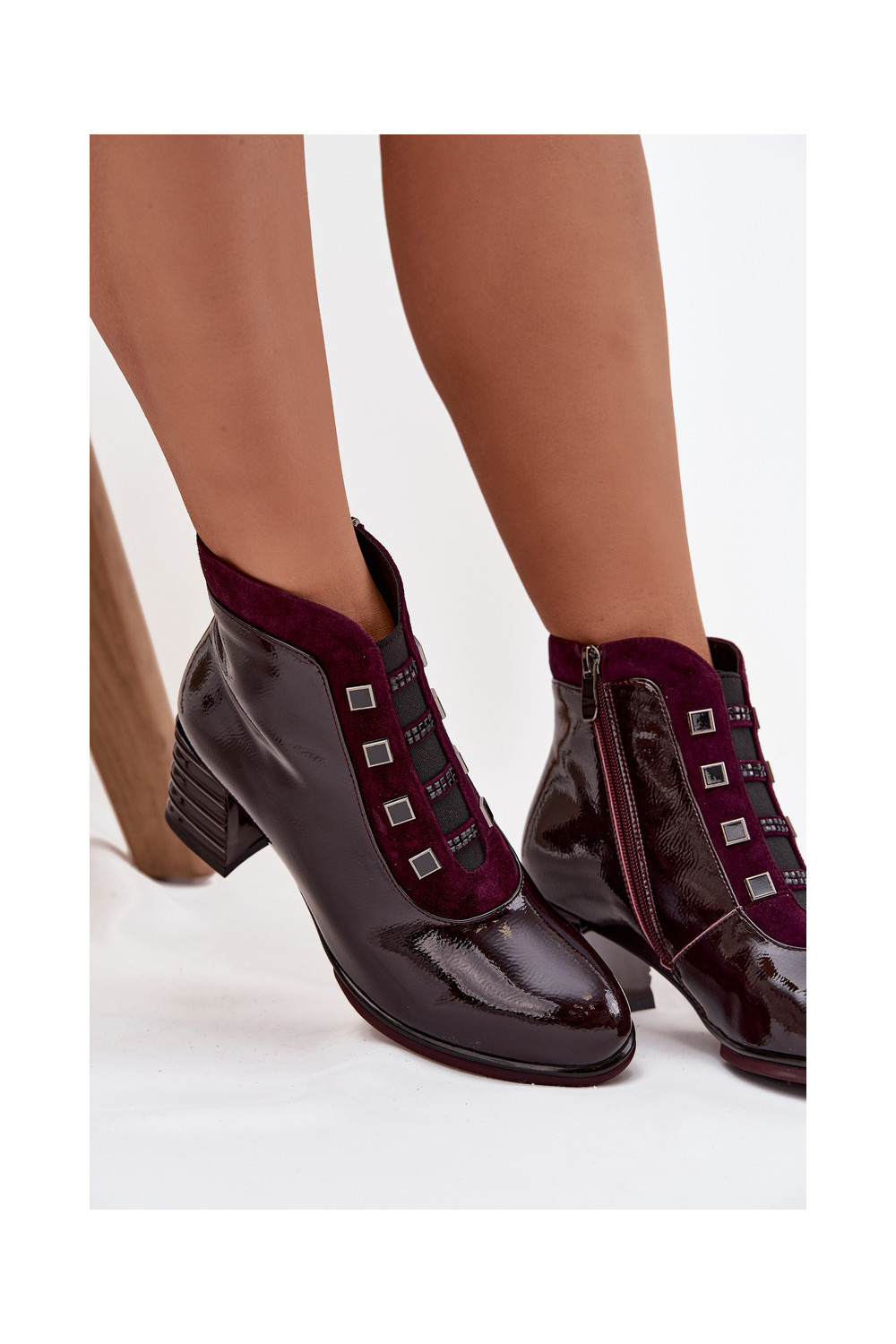 Moteriški lakiniai aulinukai iš dirbtinės odos su kulniukais D&A CR52-696 bordo spalvos