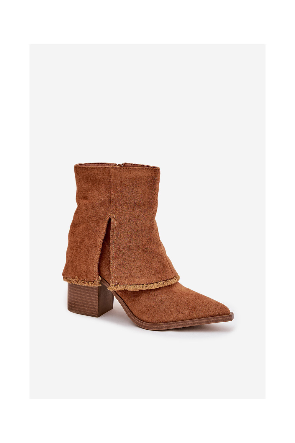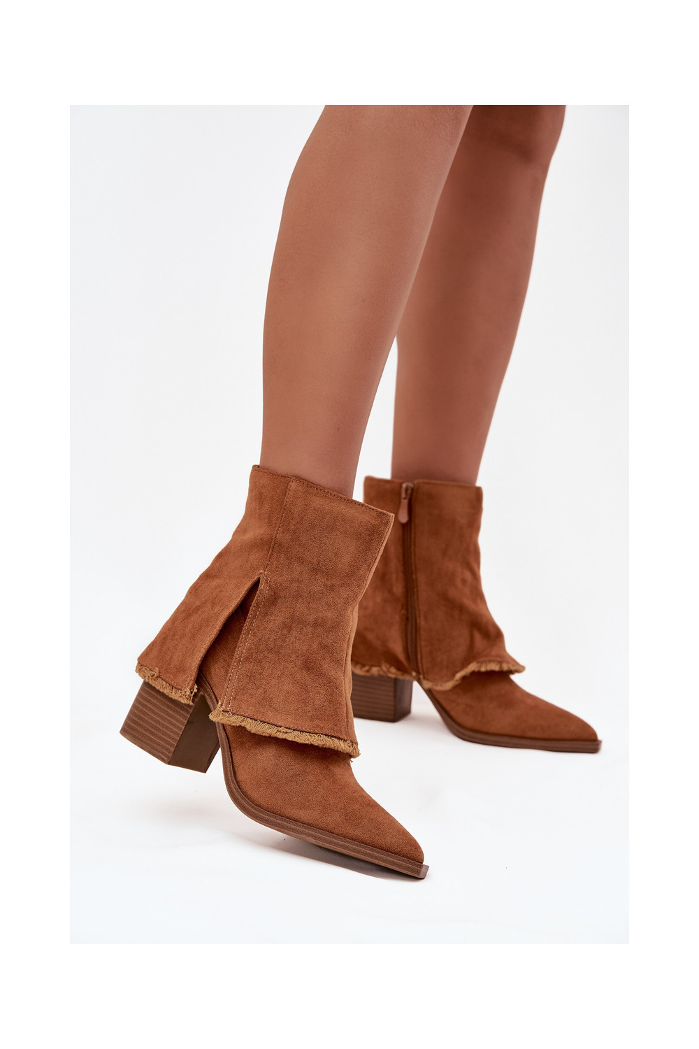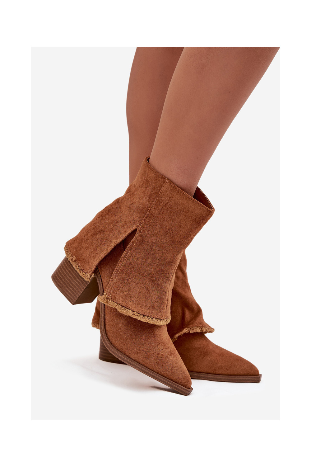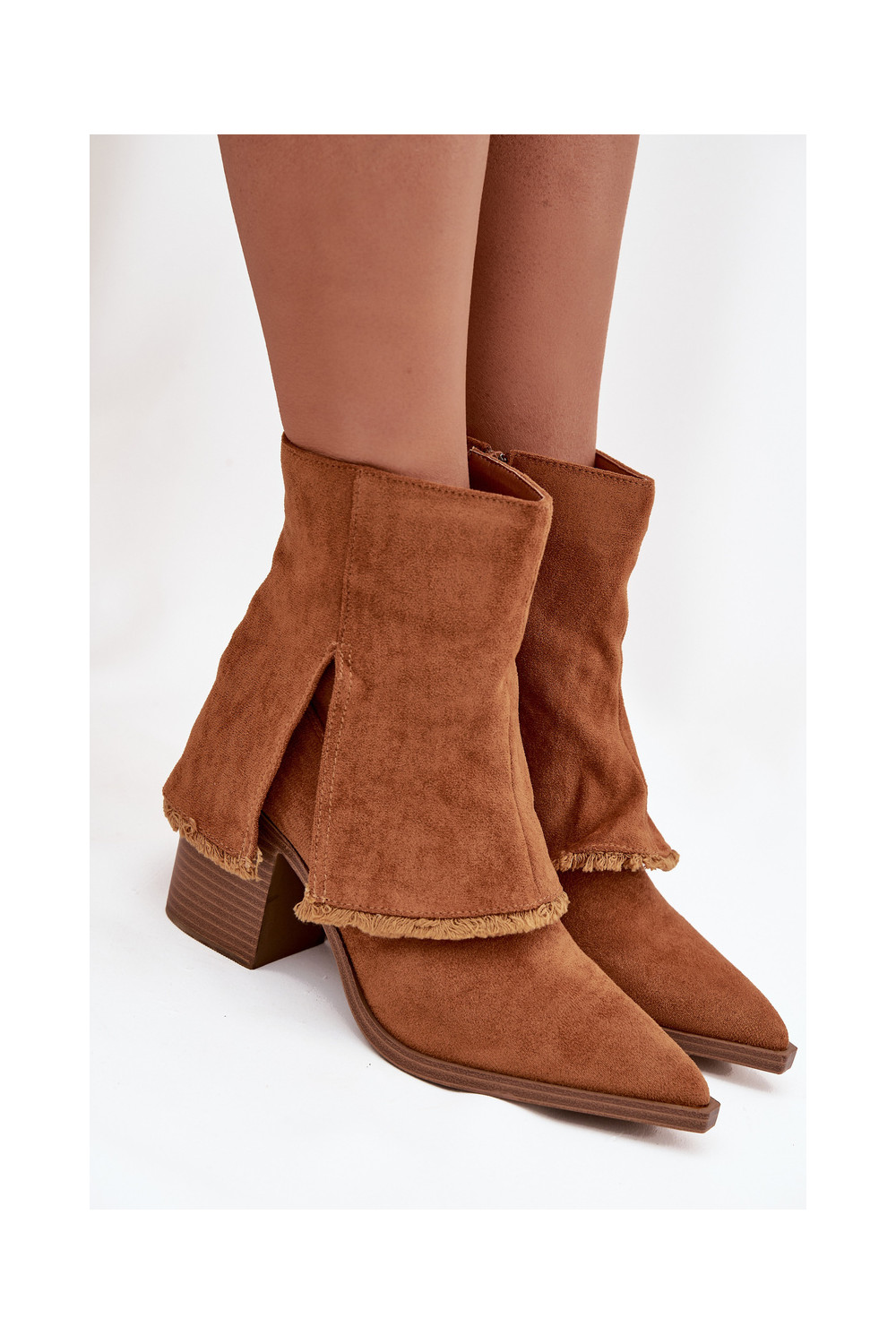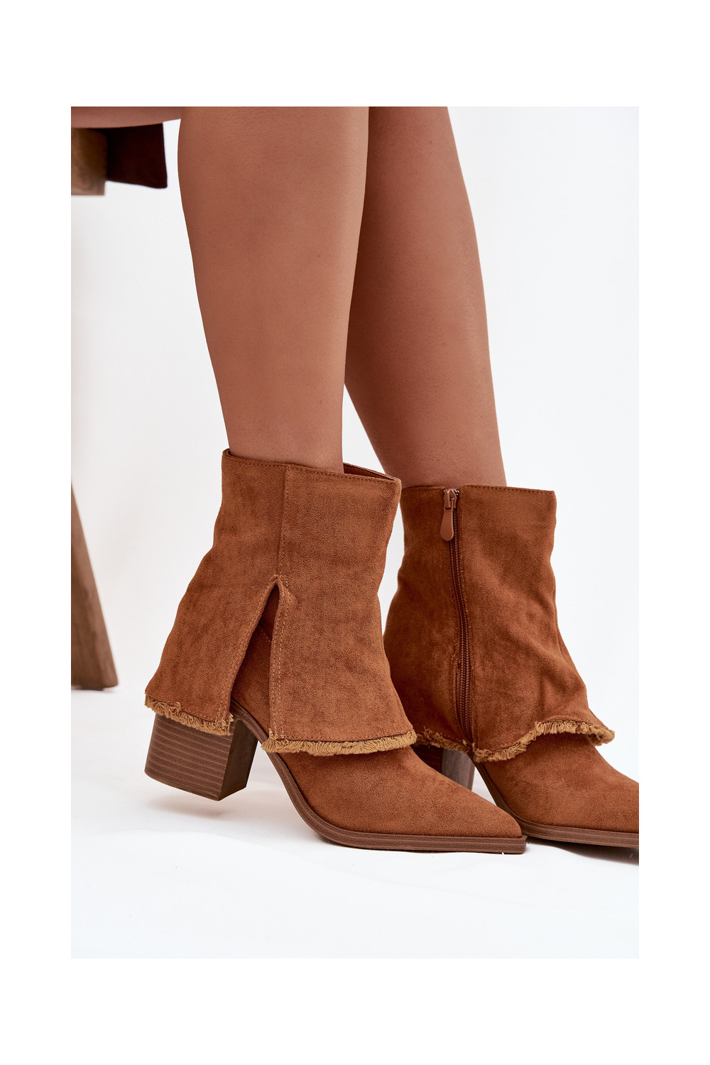 Moteriški aulinukai su išsiuvinėta cholewa rudos spalvos Idalia
