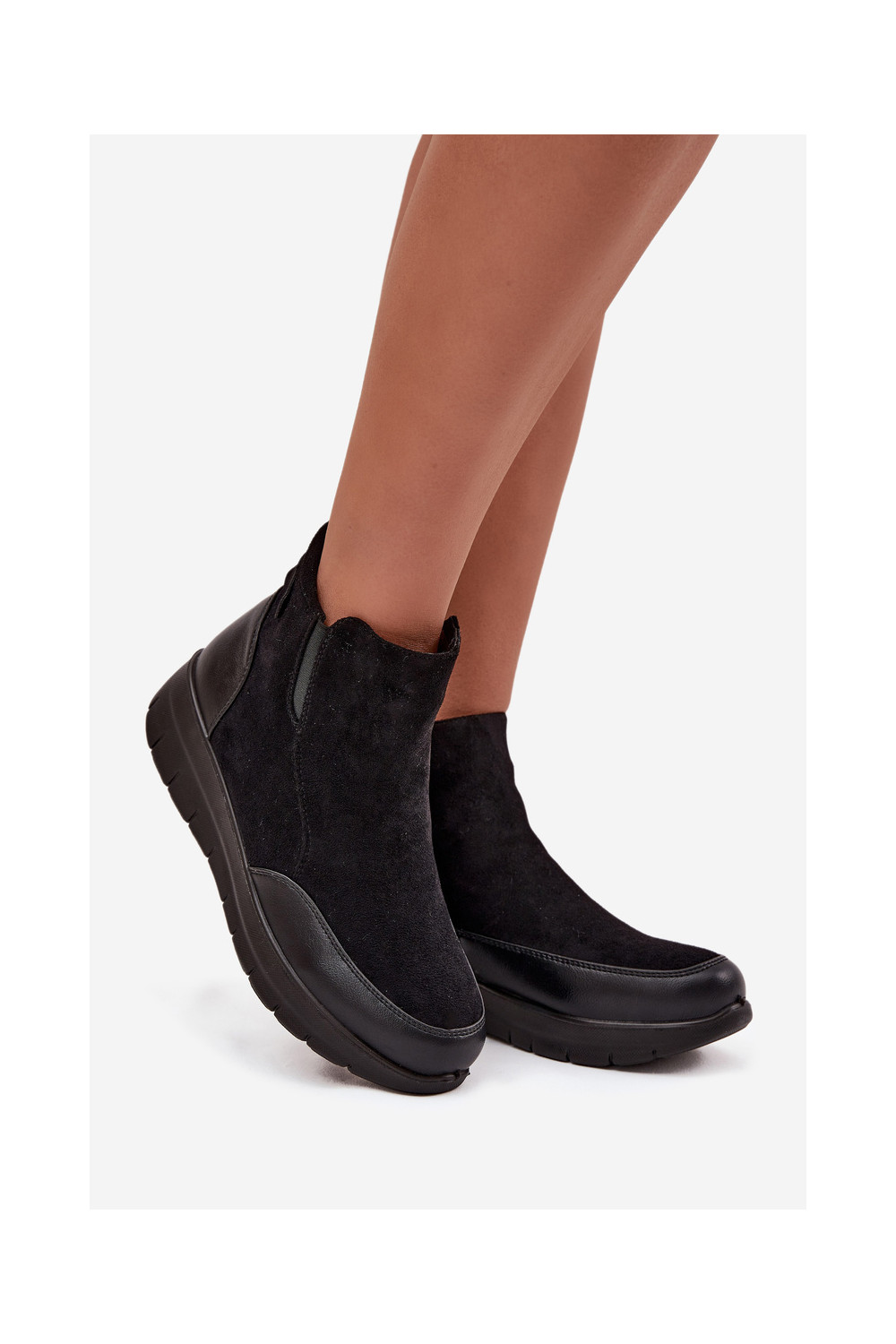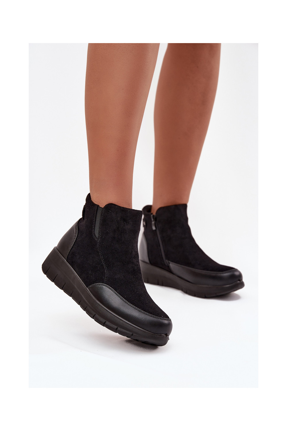 Mėgstami moteriški batai. Nėriniuoti batai iš zomšos imitacijos - idealus šio sezono pasiūlymas! Jie yra ant storo pado. Modelis nėra apšiltintas. Puikiai tinka rudens ir žiemos stilizacijai.