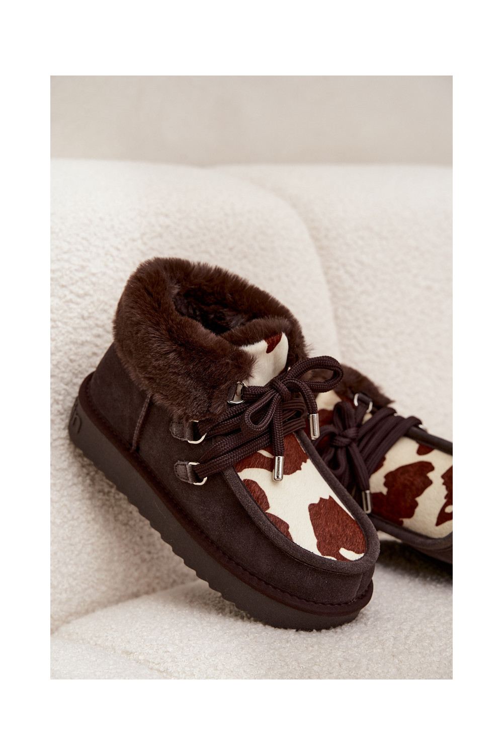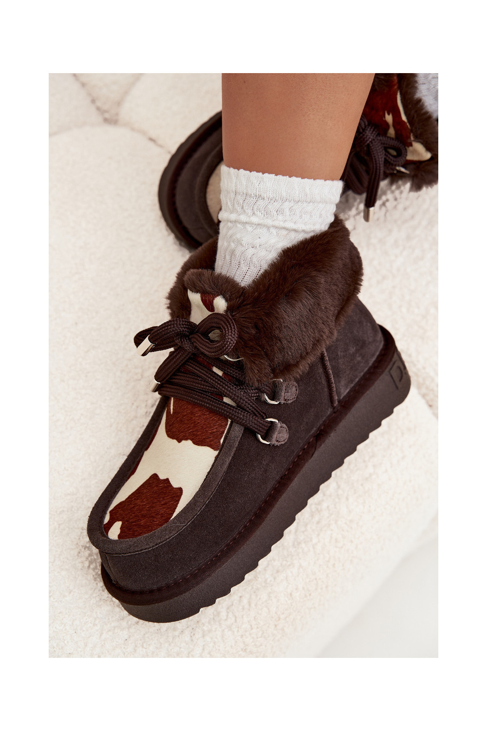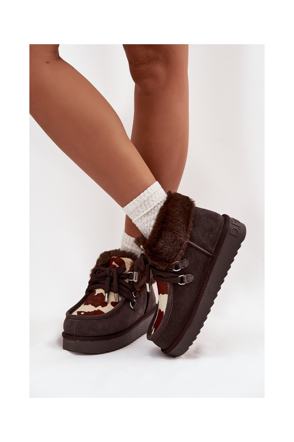 Sniego batai moteriški iš natūralaus zomšo su lopais D.Franklin DFSH375008 šokoladinės spalvos