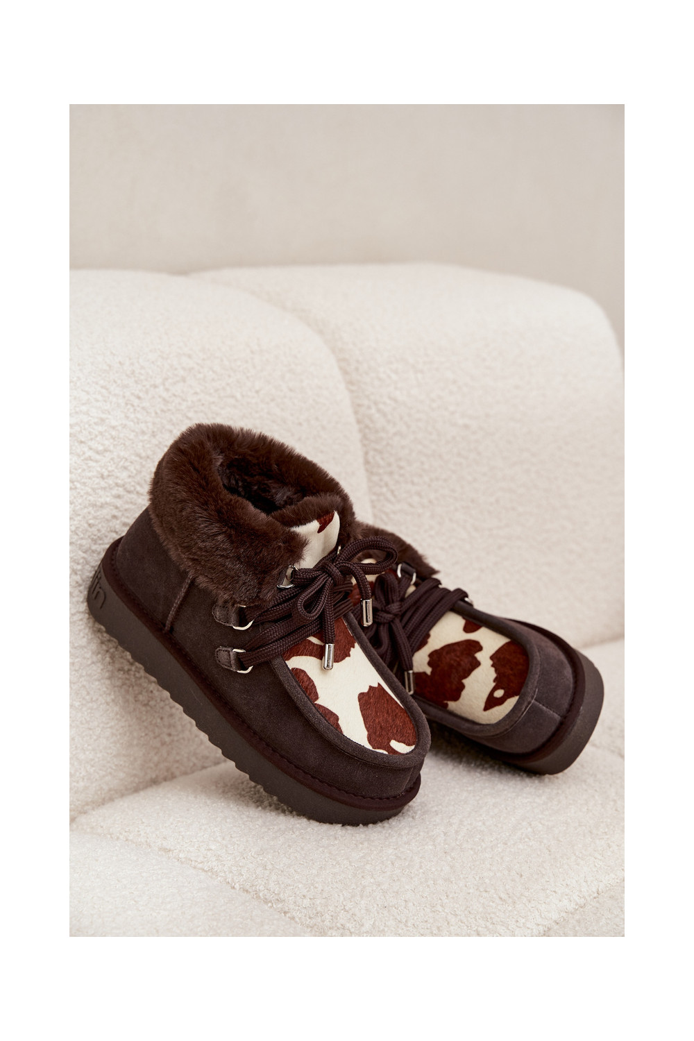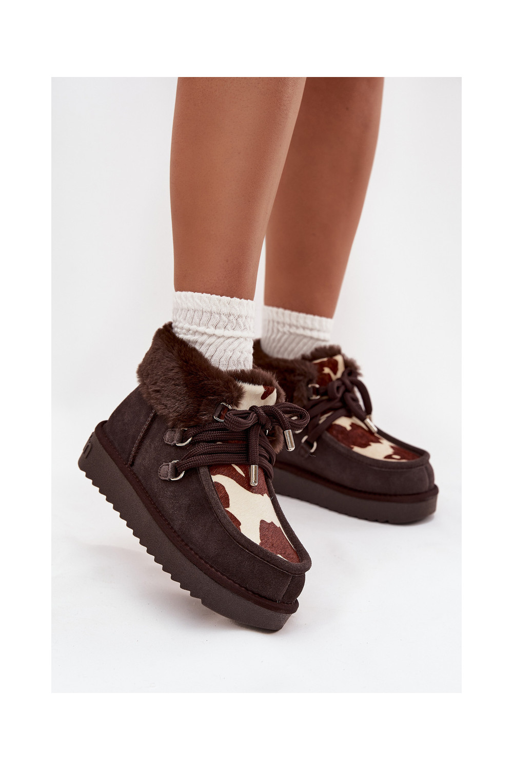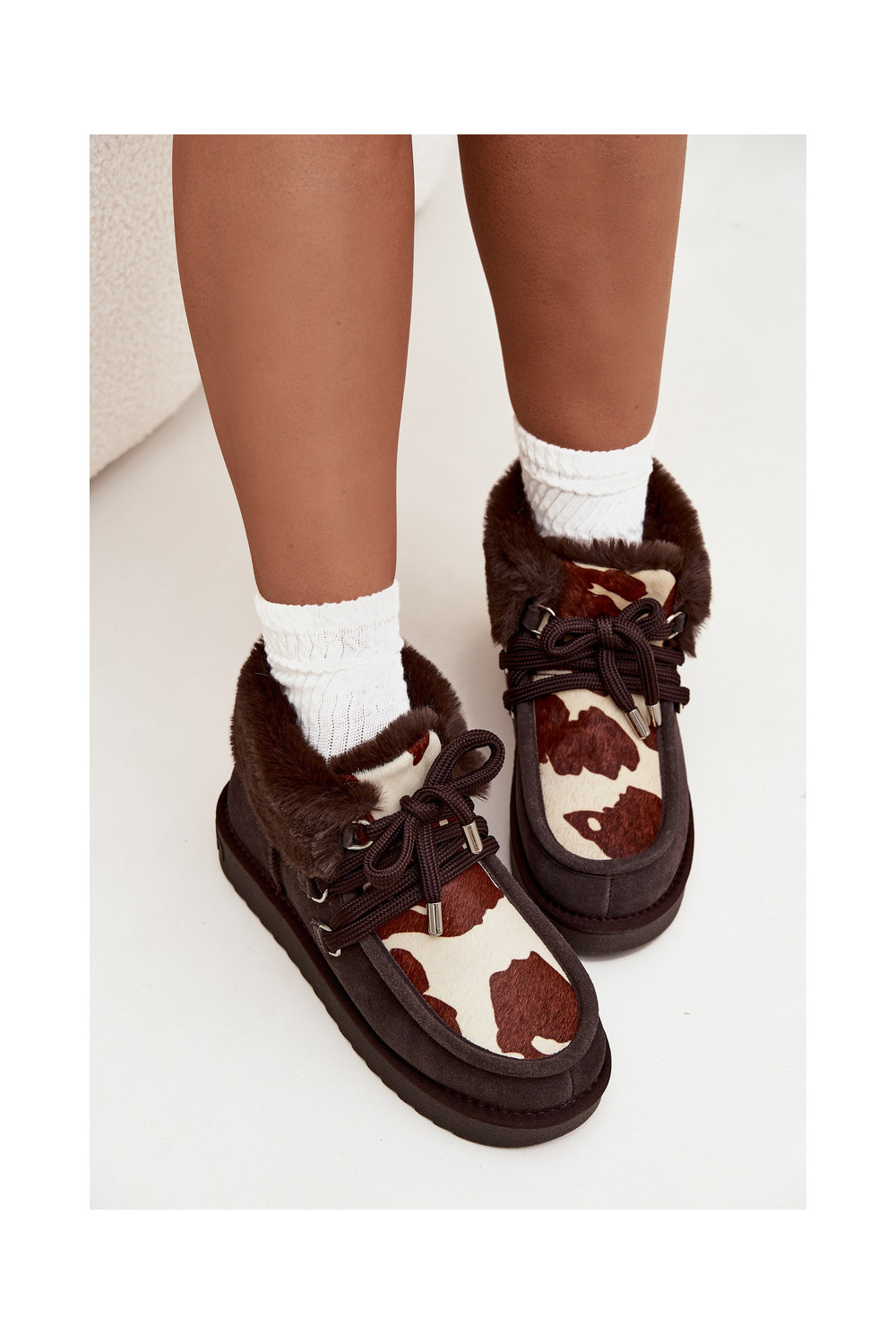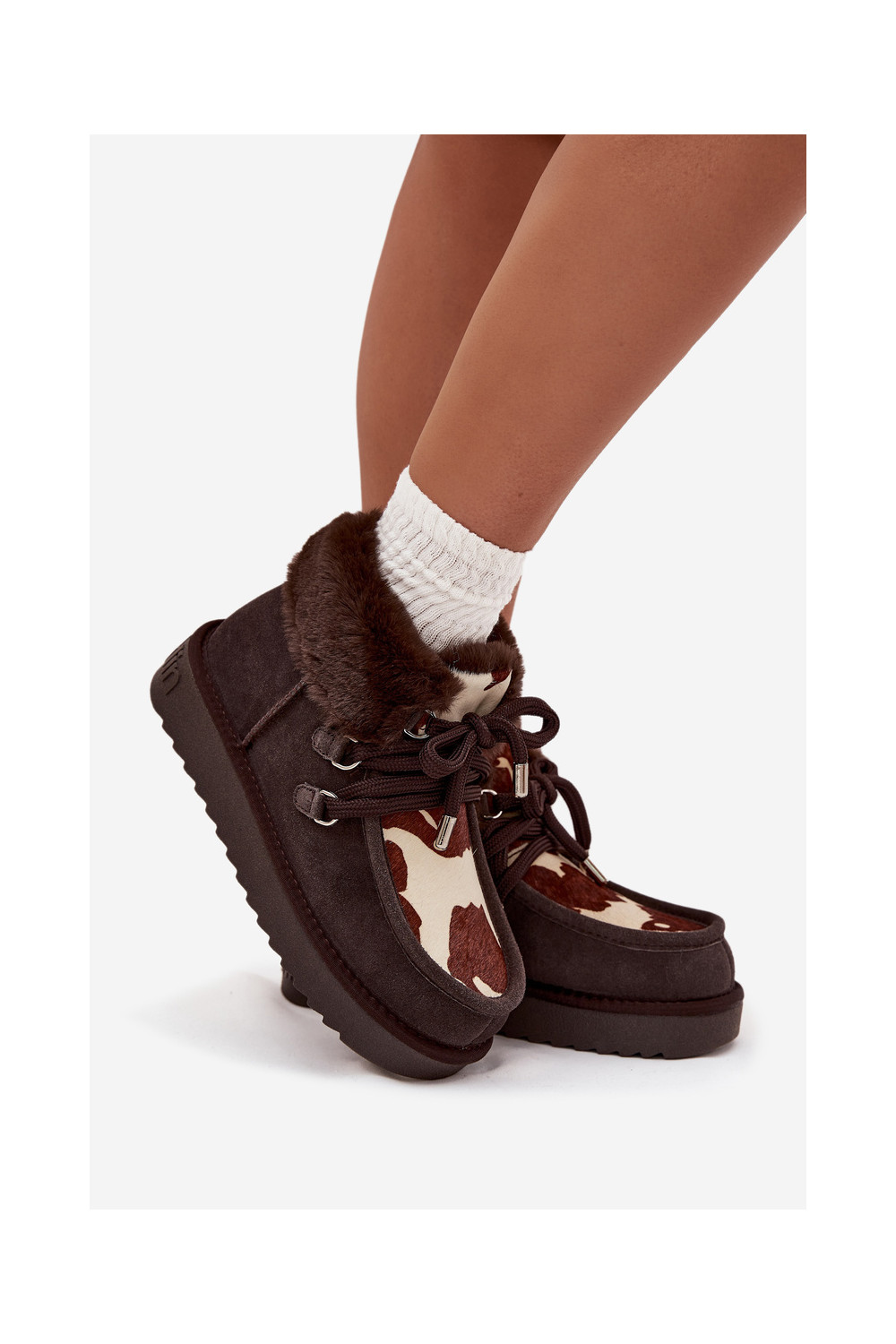 Sniego batai moteriški iš natūralaus zomšo su lopais D.Franklin DFSH375008 šokoladinės spalvos