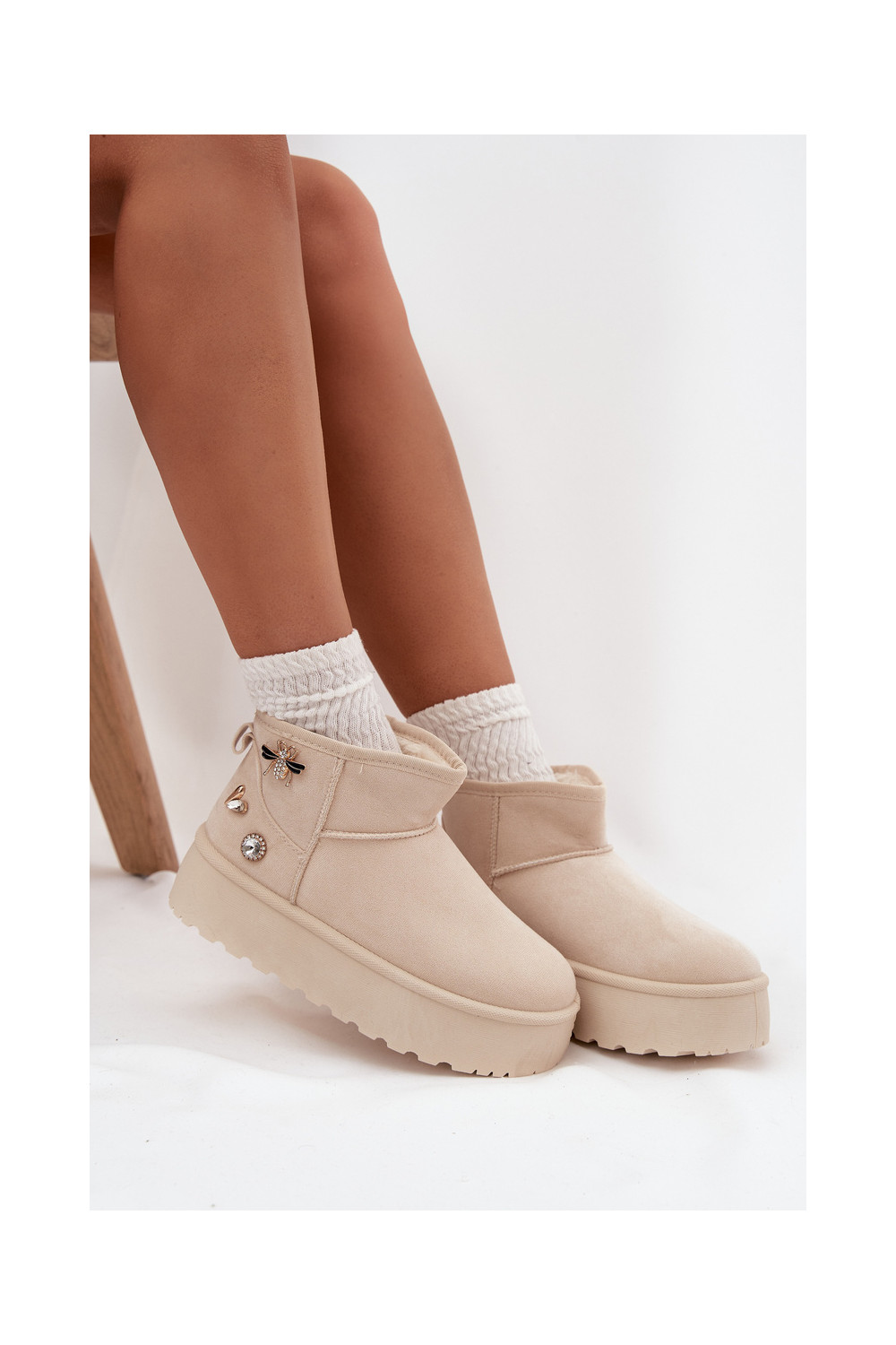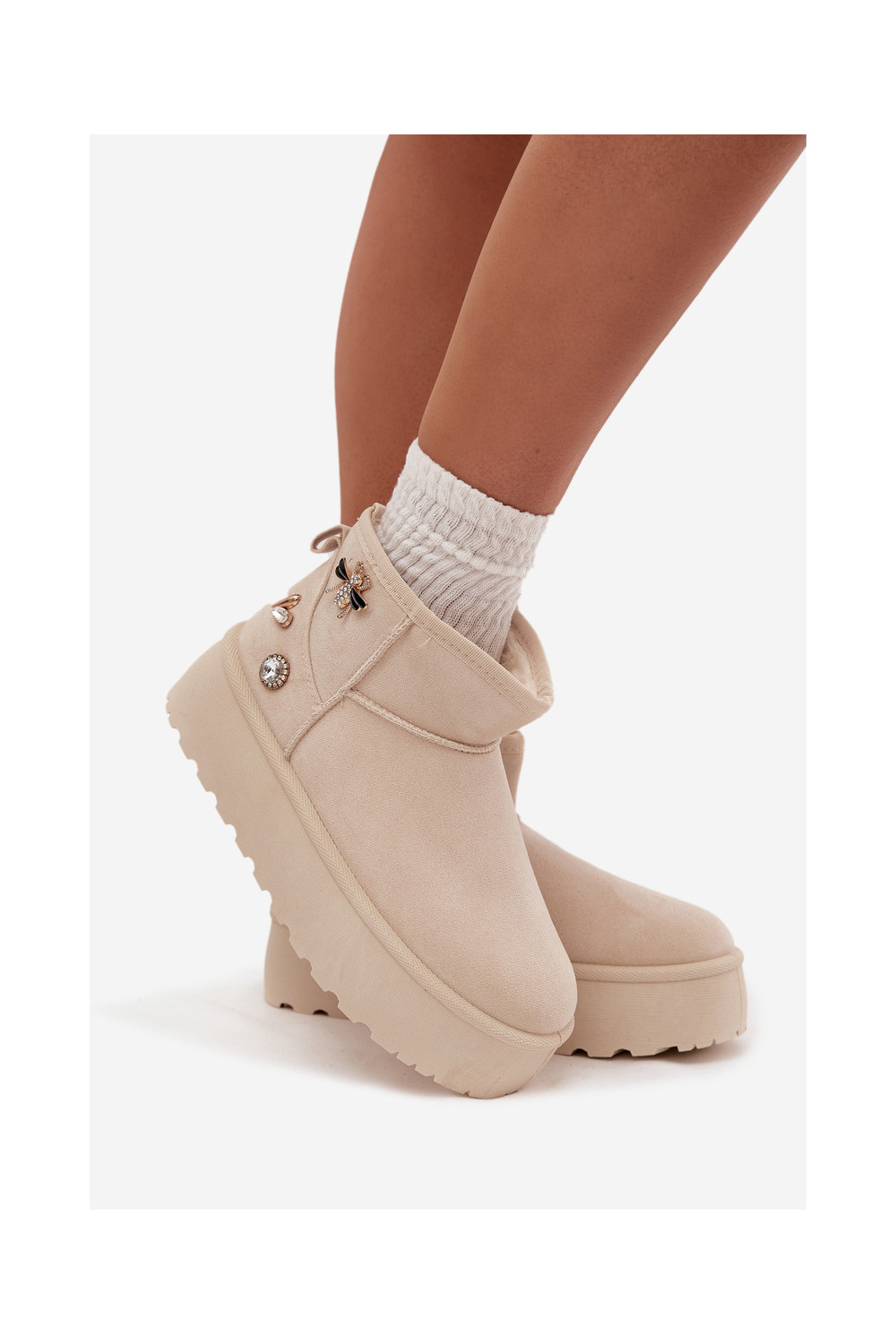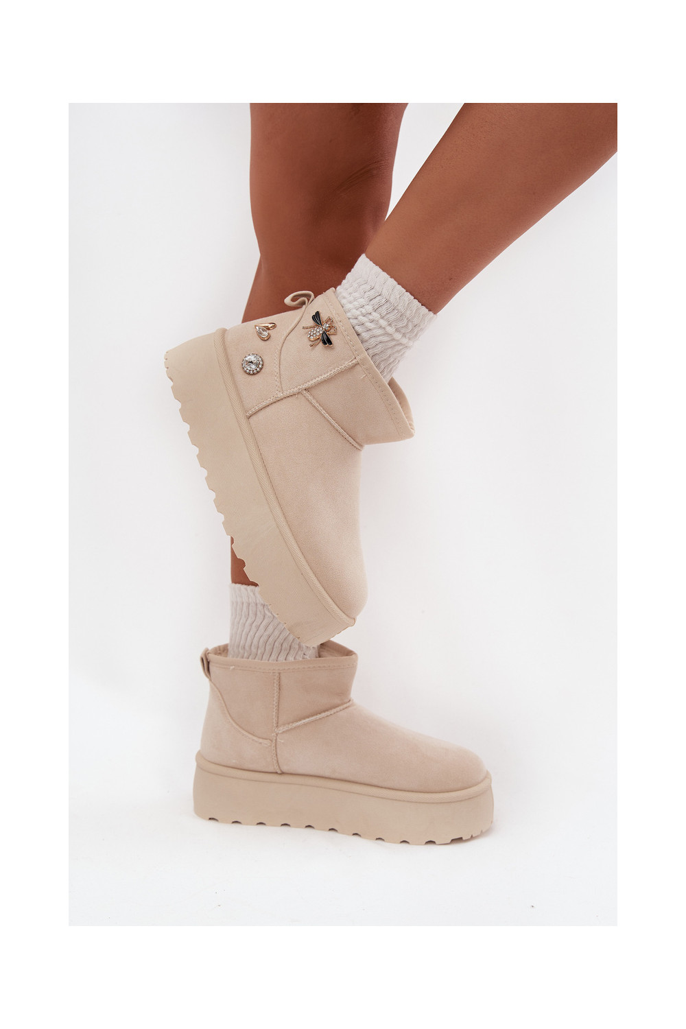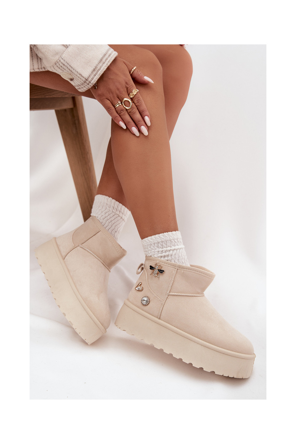 Sniego batai moteriški su platforma ir kabliukais dramblio kaulo spalvos Tai turielle