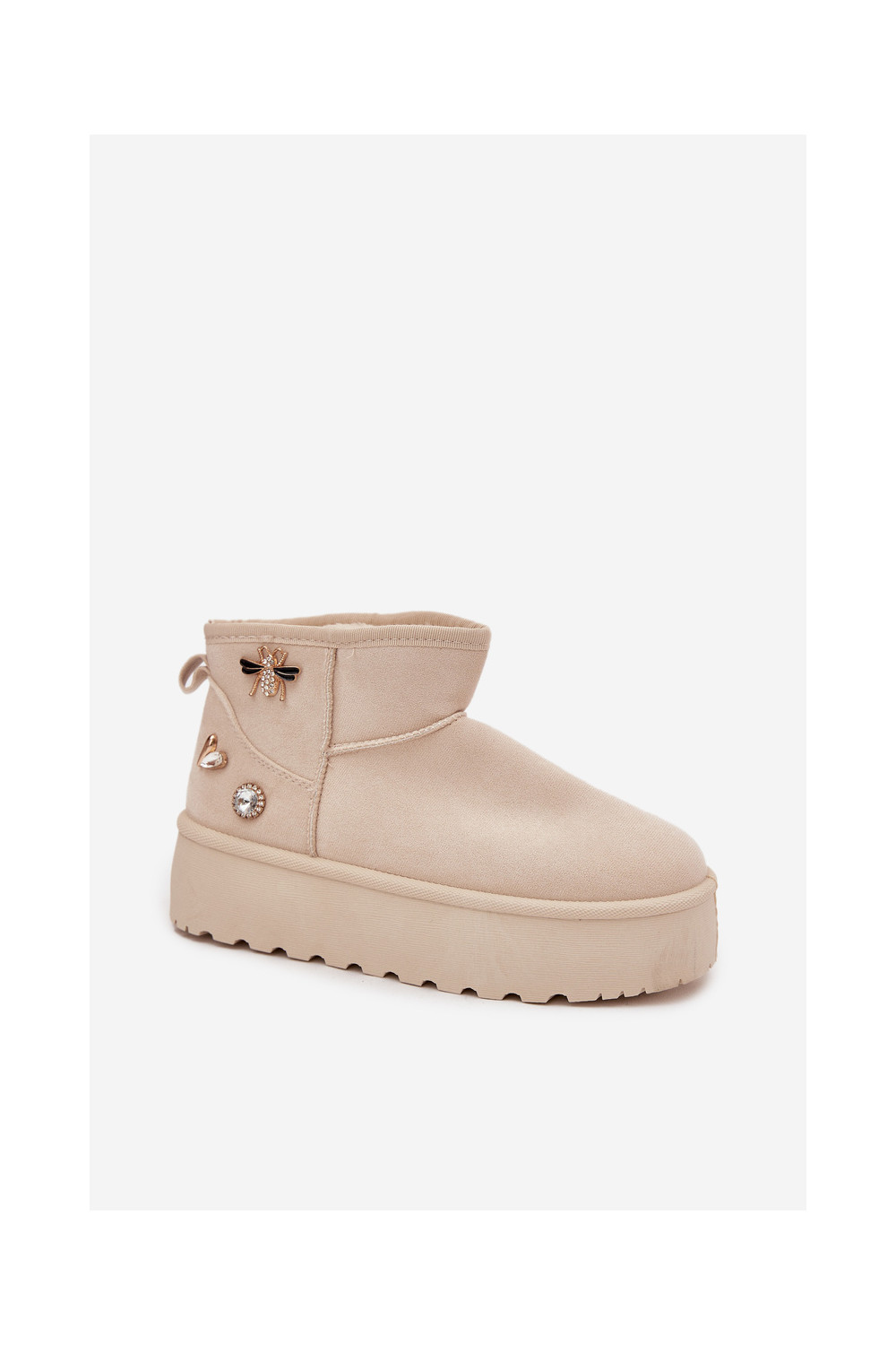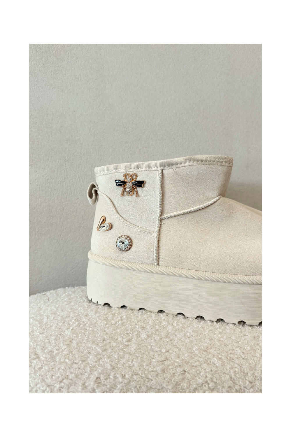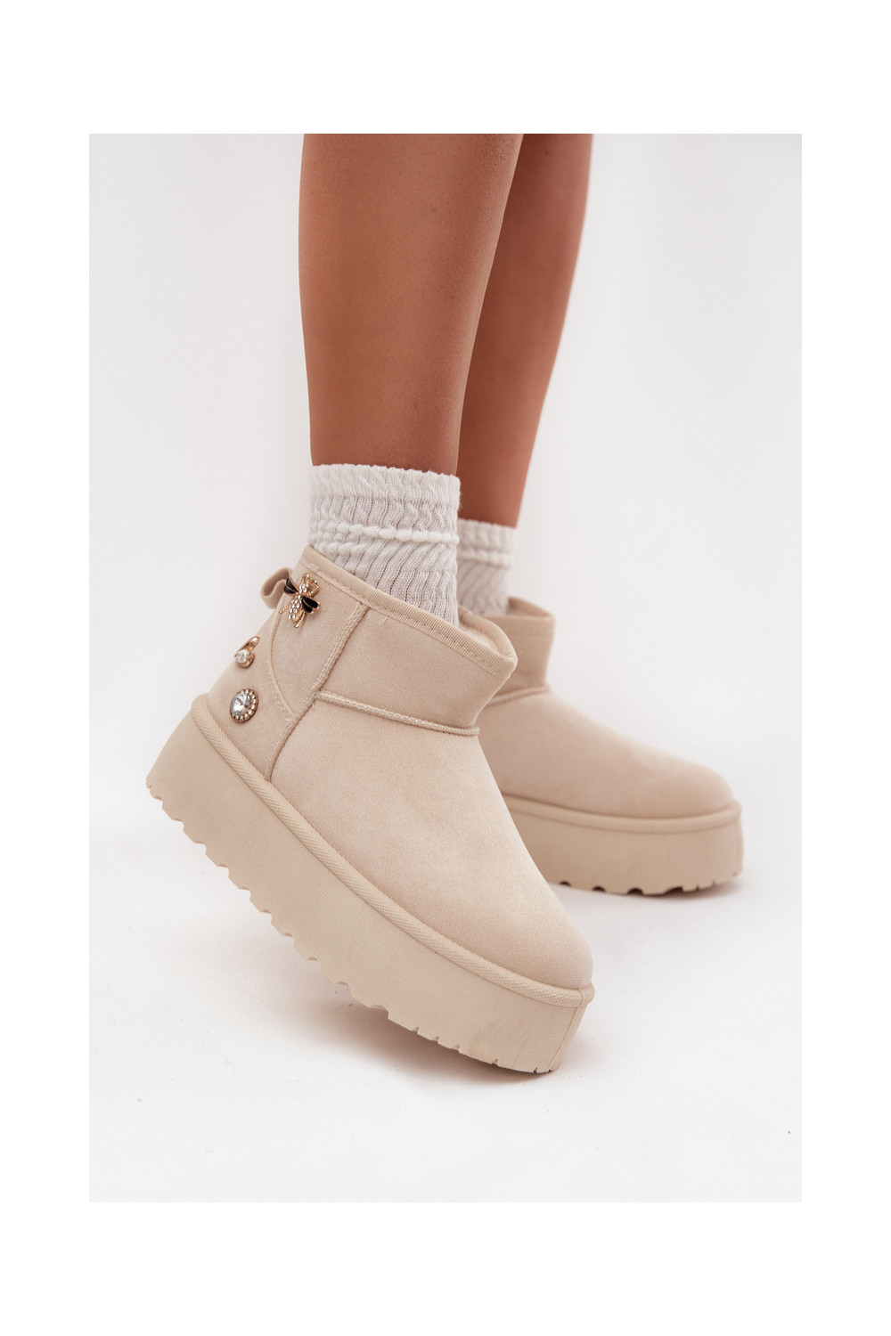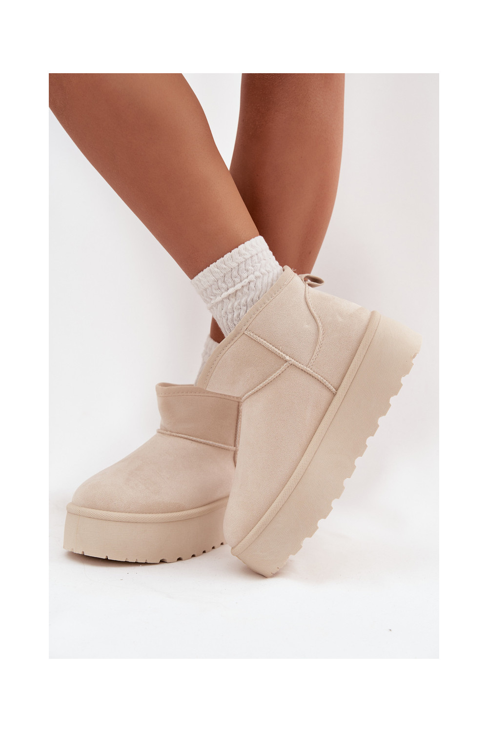 Sniego batai moteriški su platforma ir kabliukais dramblio kaulo spalvos Tai turielle