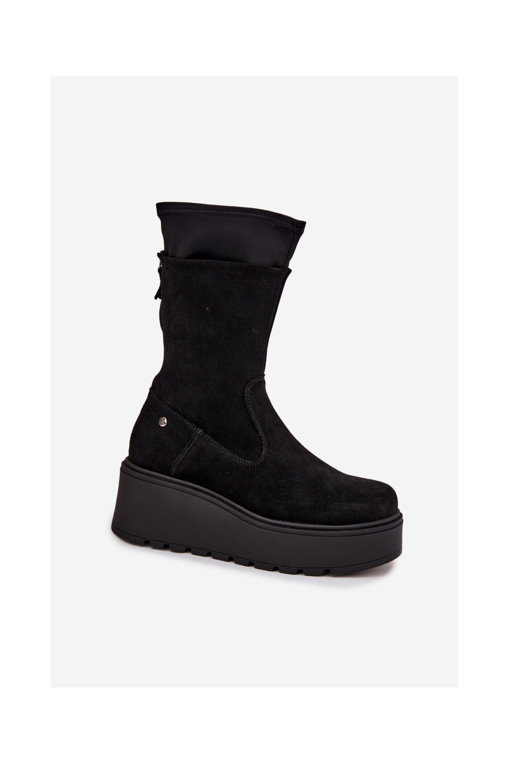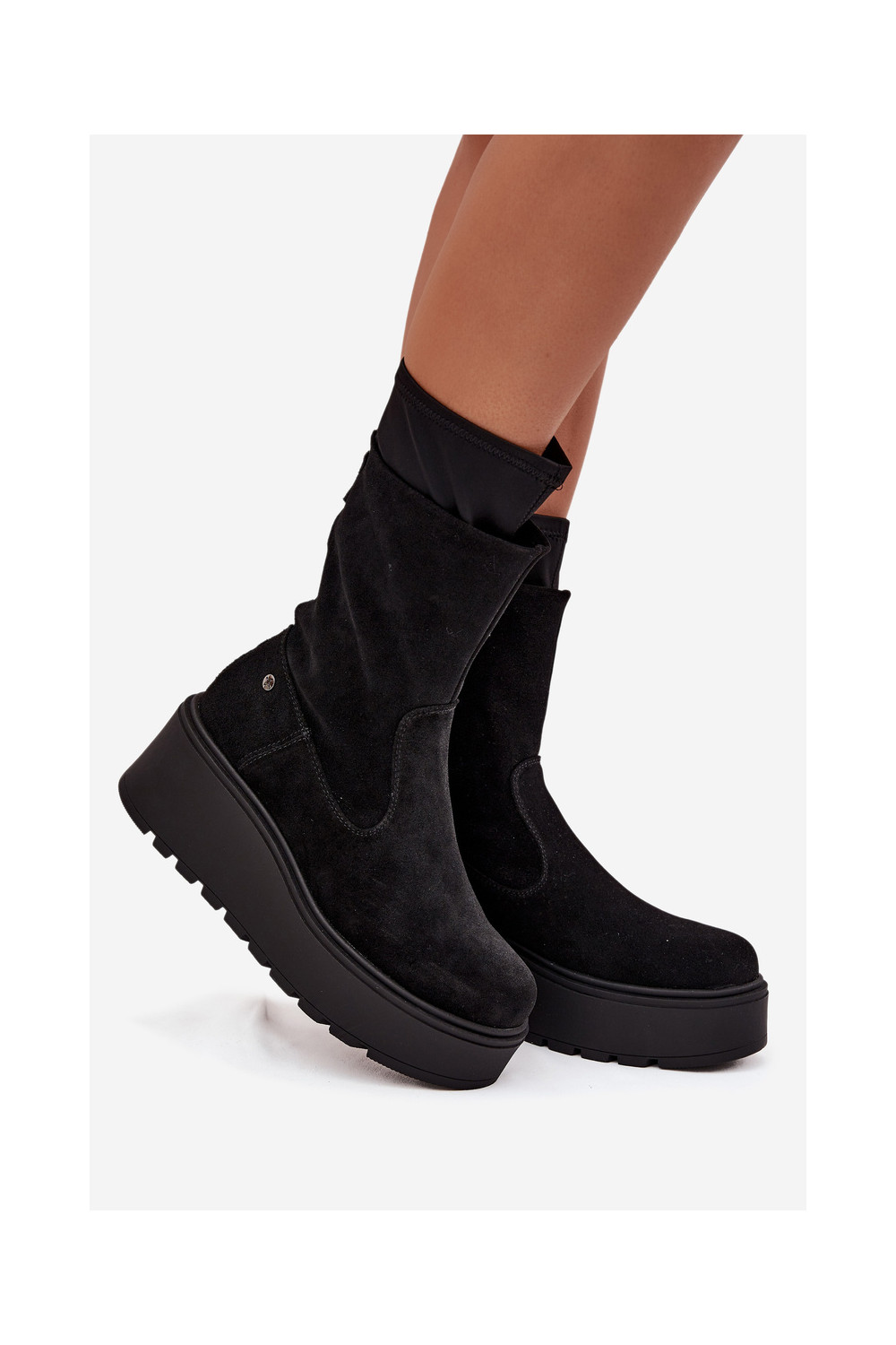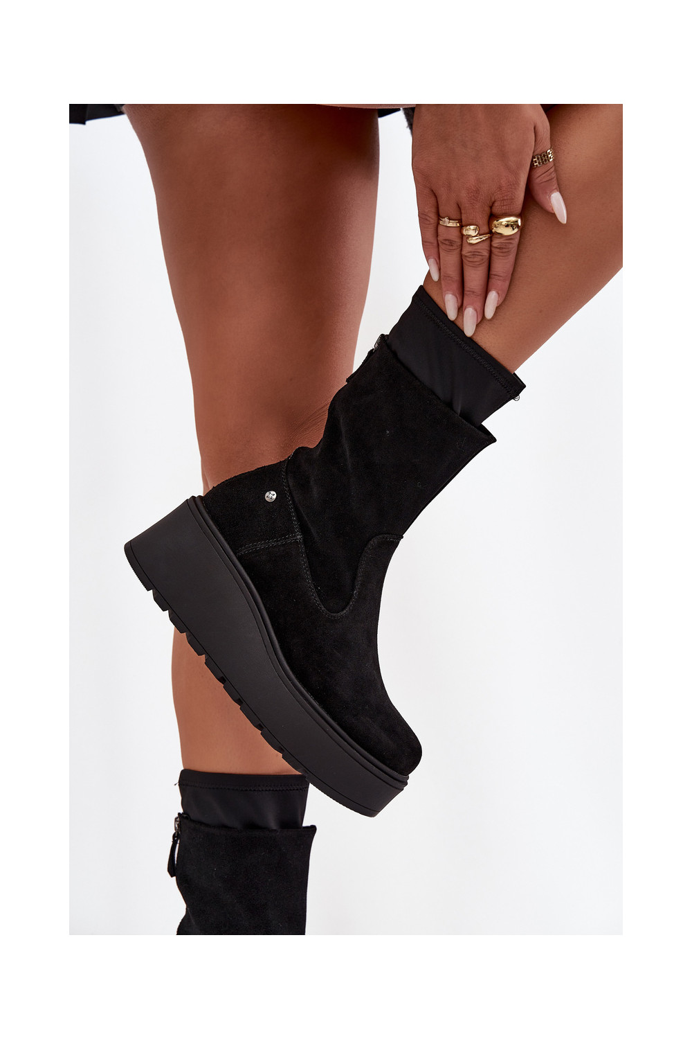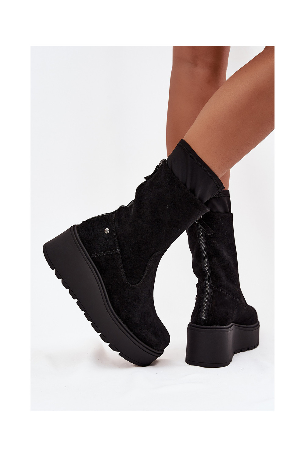 Moteriškas Oda Zomšiniai batai su platforma Tai turiciejka A7161-20 juodos spalvos