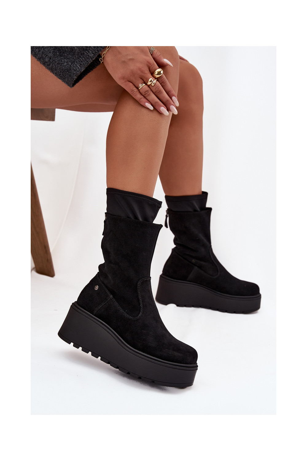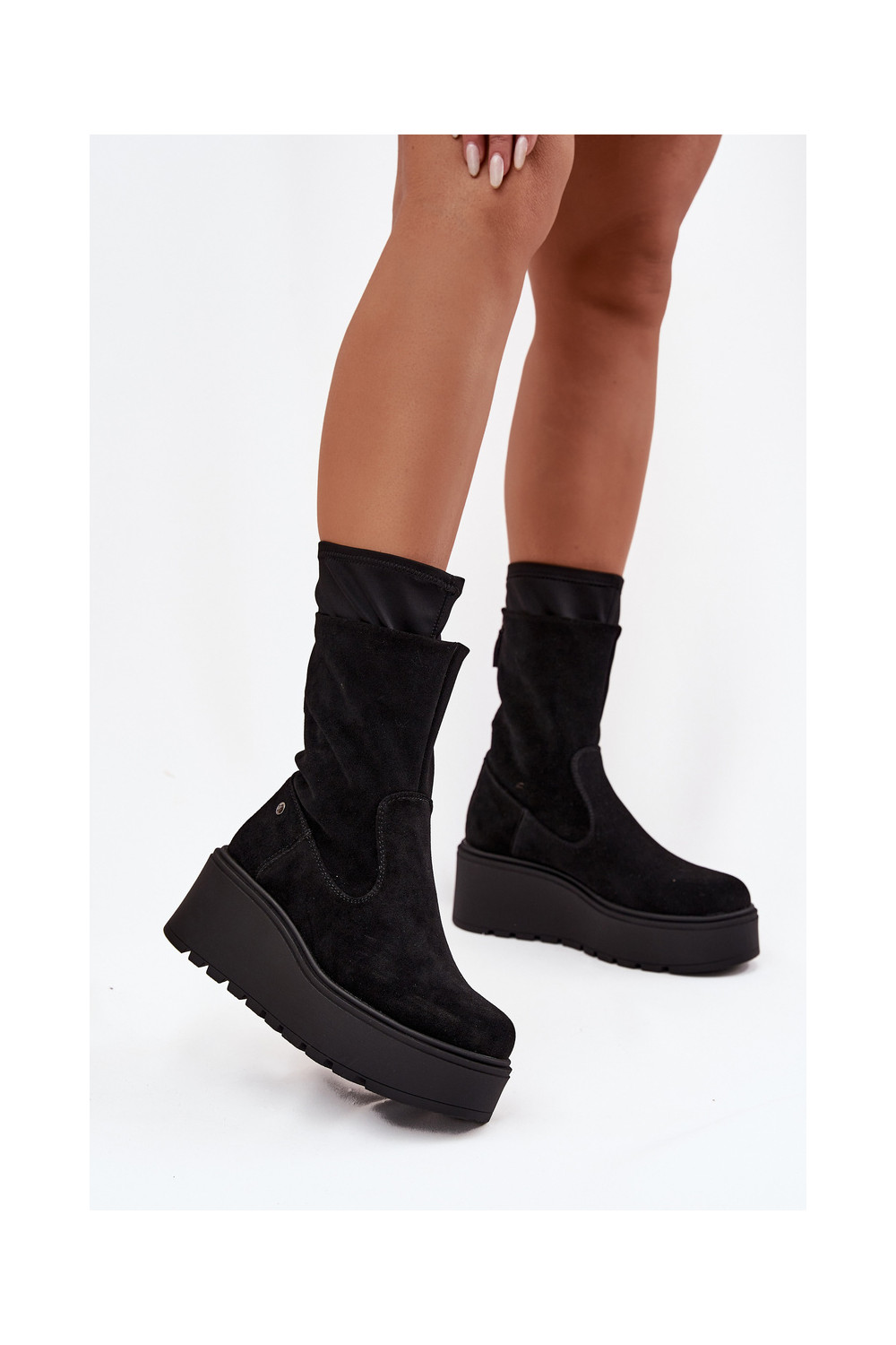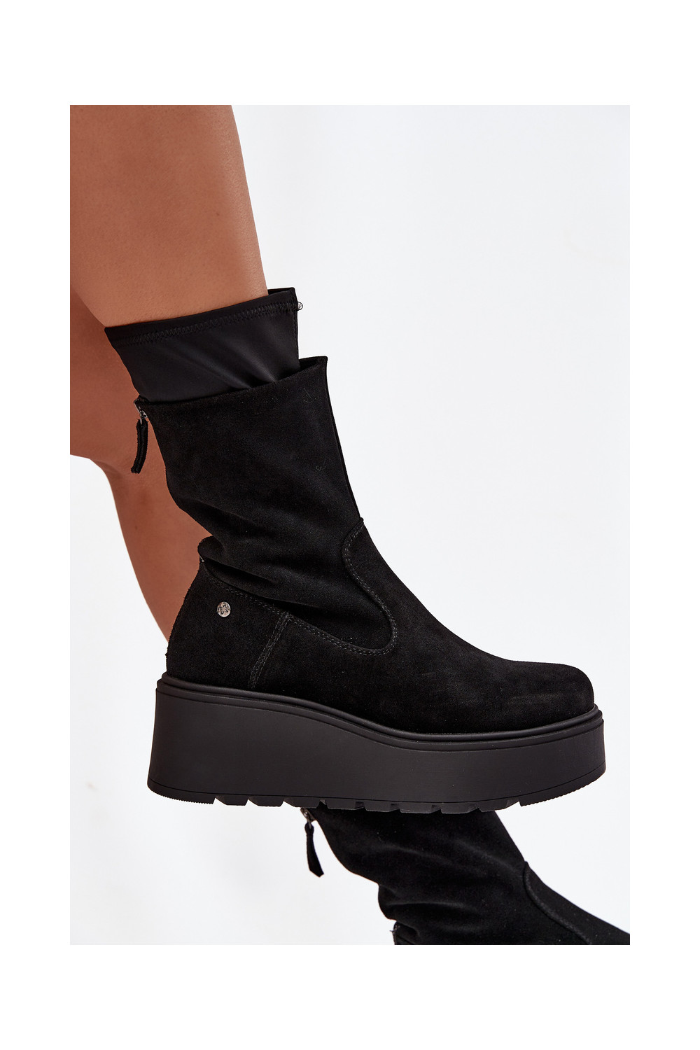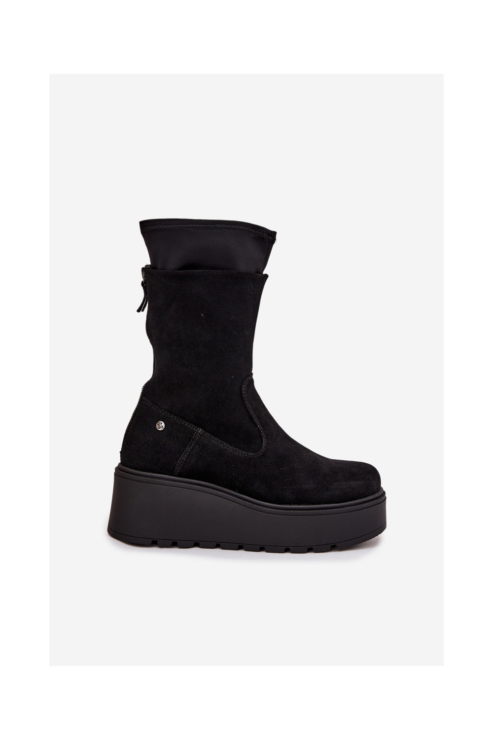 Moteriškas Oda Zomšiniai batai su platforma Tai turiciejka A7161-20 juodos spalvos