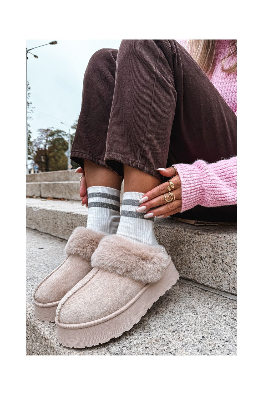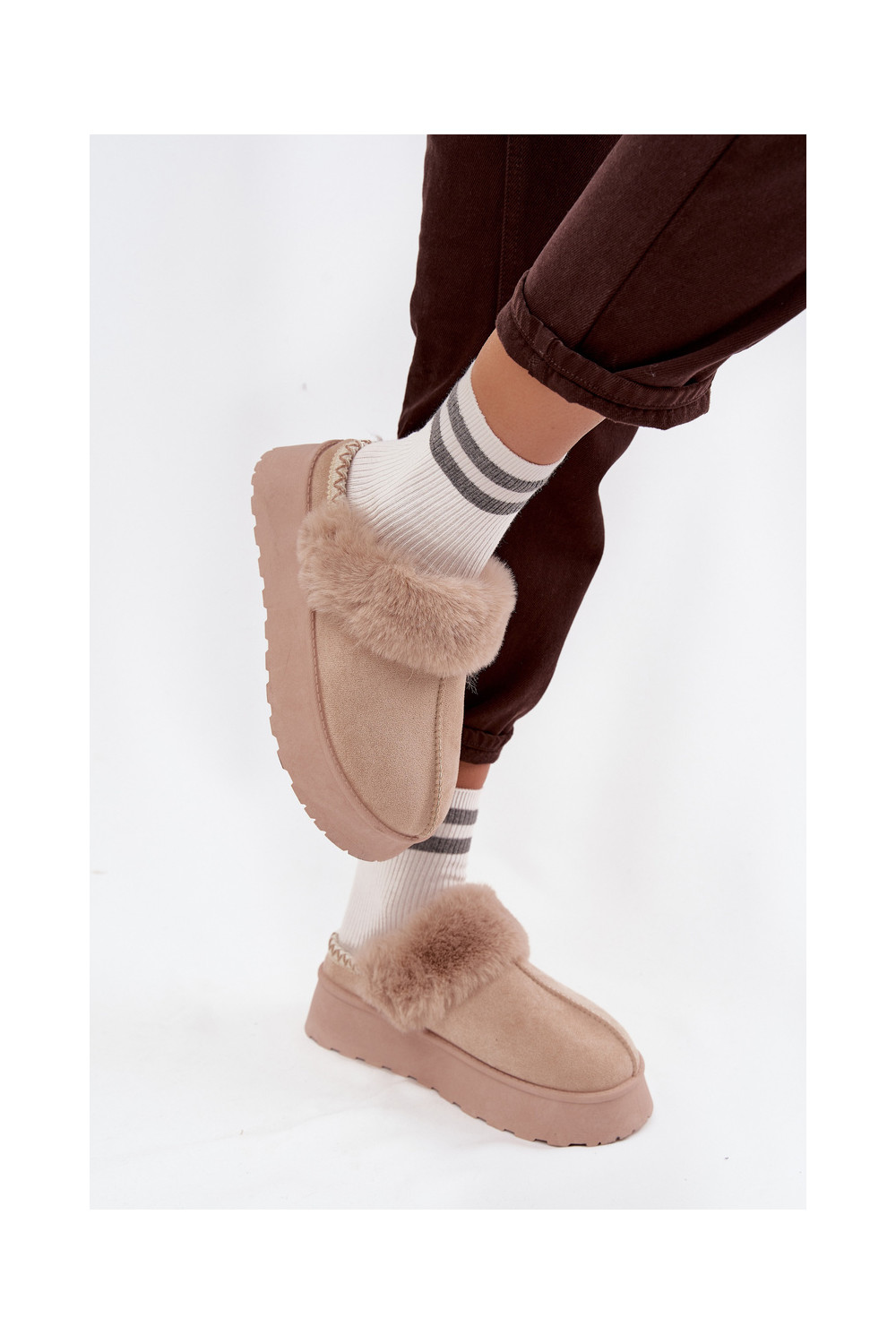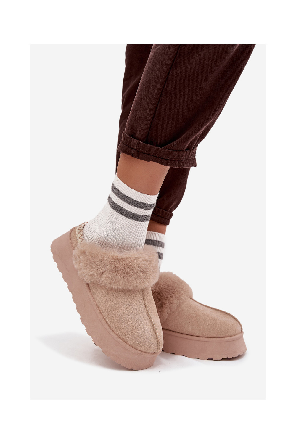 Moteriški sniego batai su platforma ir kailiuku su siuvinėjimu smėlio spalvos Querina