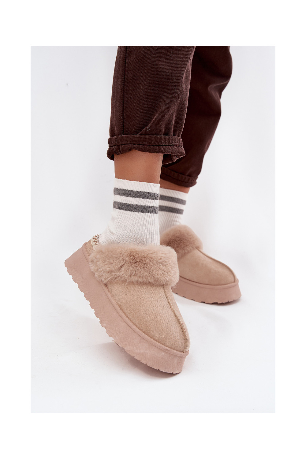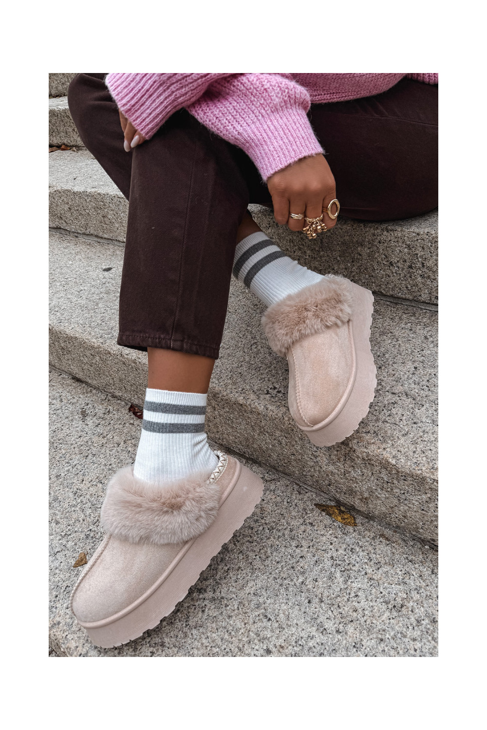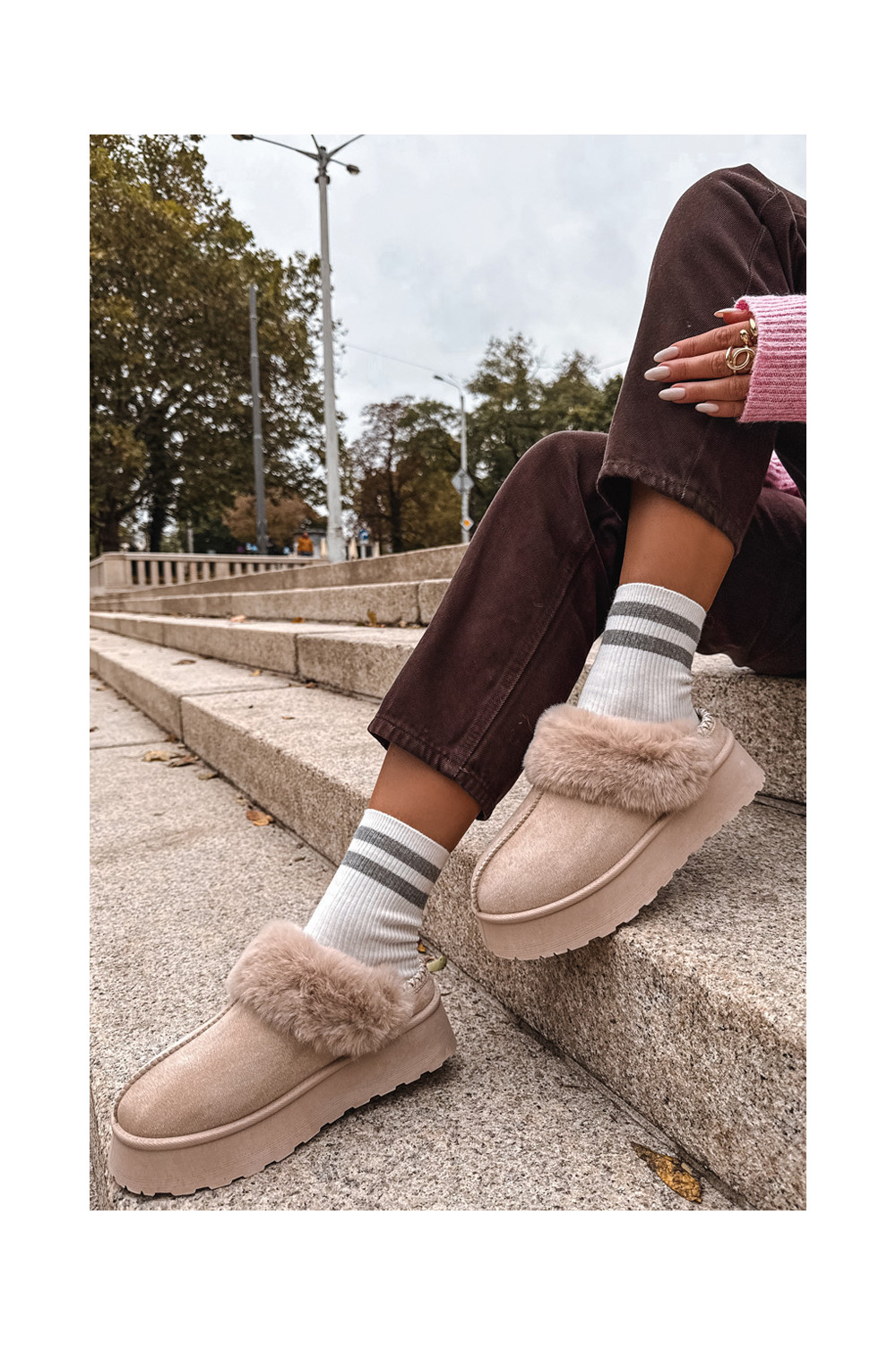 Moteriški sniego batai su platforma ir kailiuku su siuvinėjimu smėlio spalvos Querina