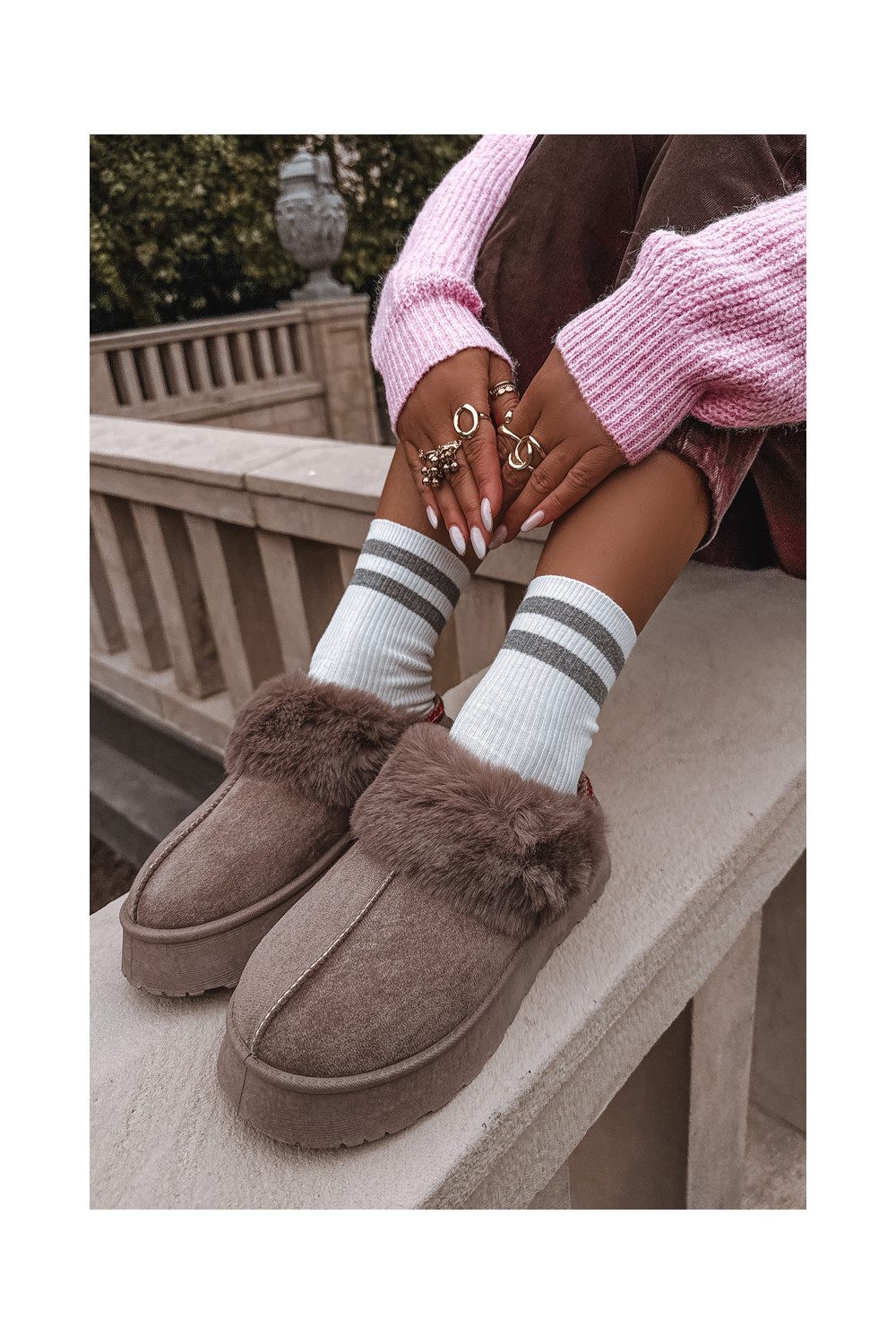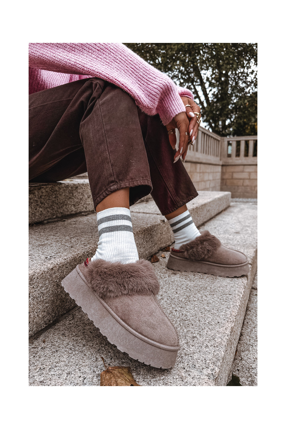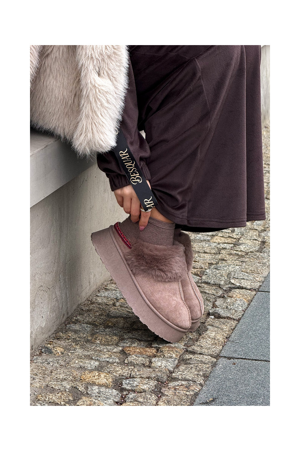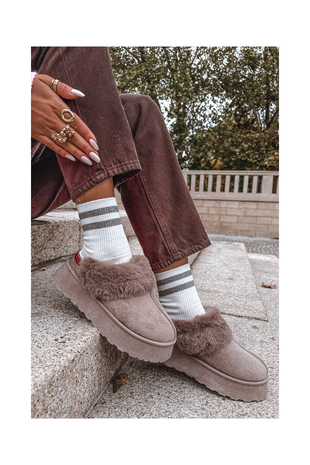 Moteriški sniego batai su platforma ir kailiuku su siuvinėjimu smėlio spalvos Querina