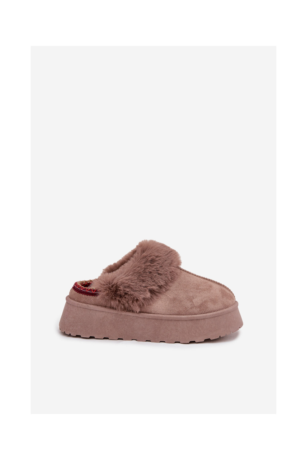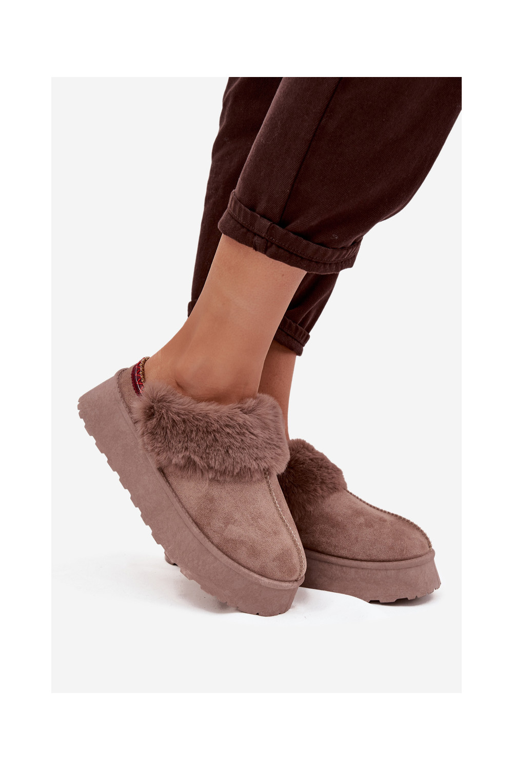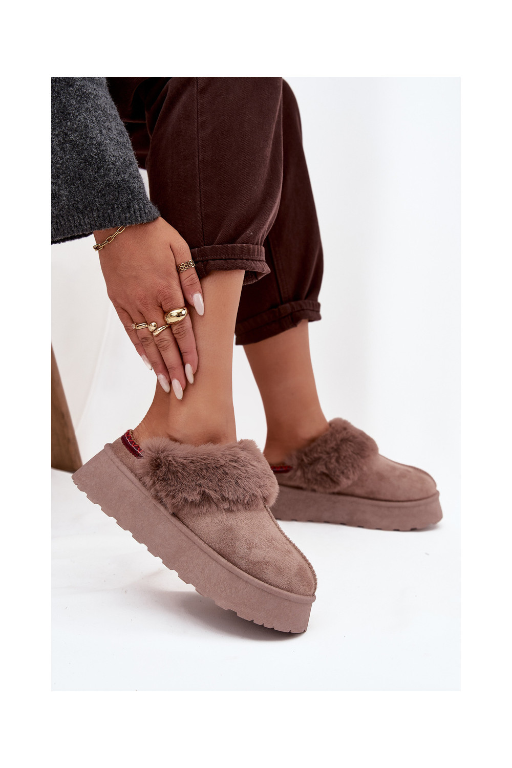 Moteriški sniego batai su platforma ir kailiuku su siuvinėjimu smėlio spalvos Querina
