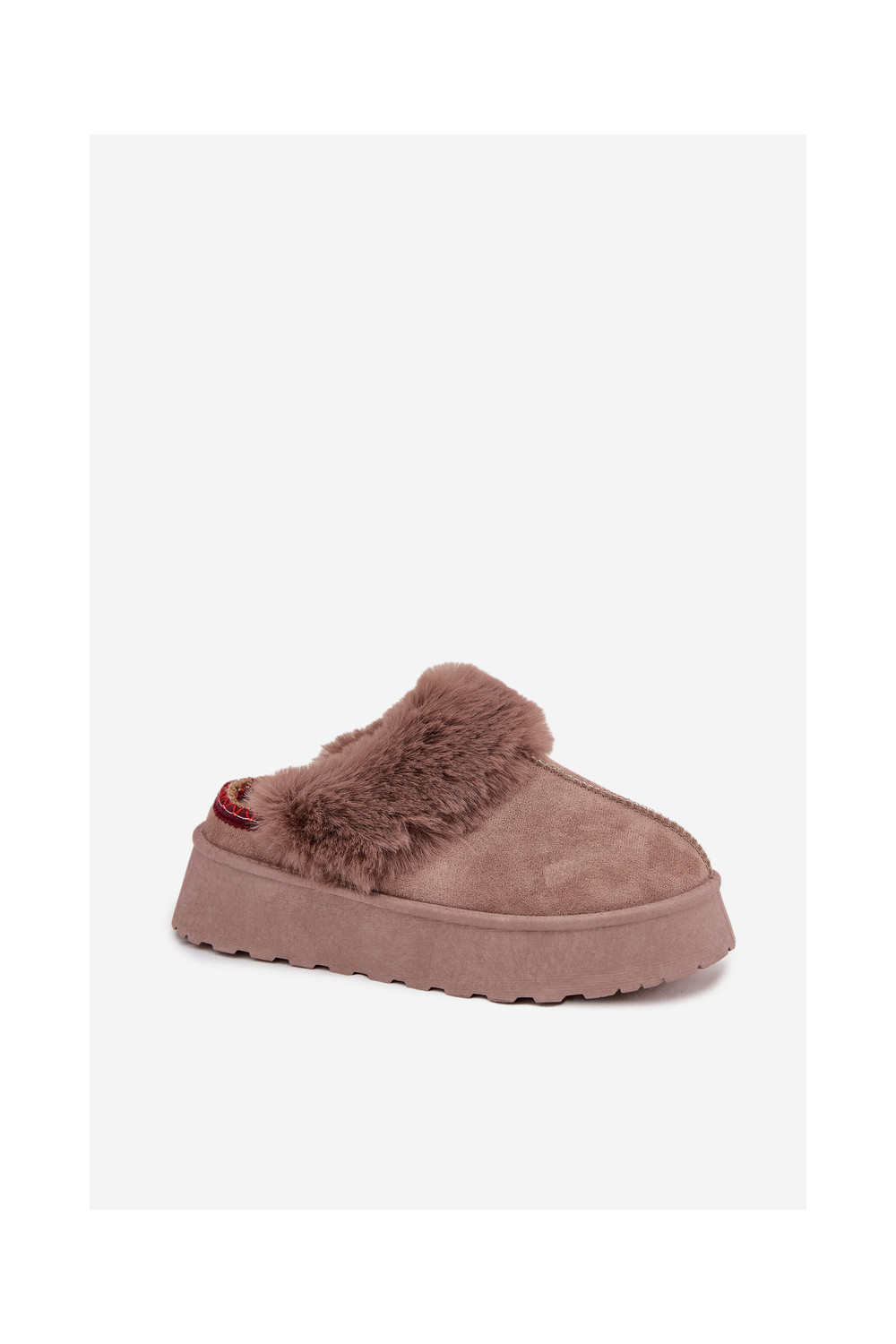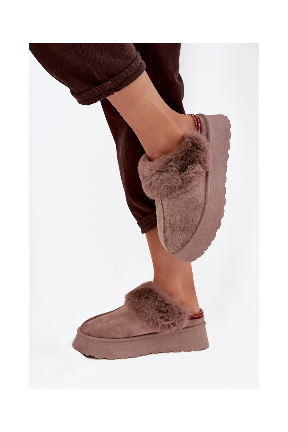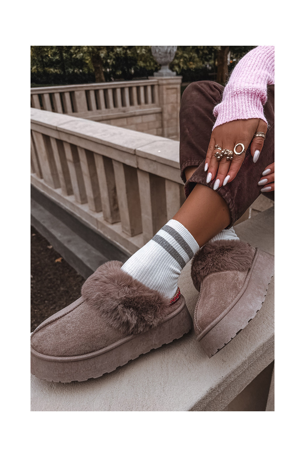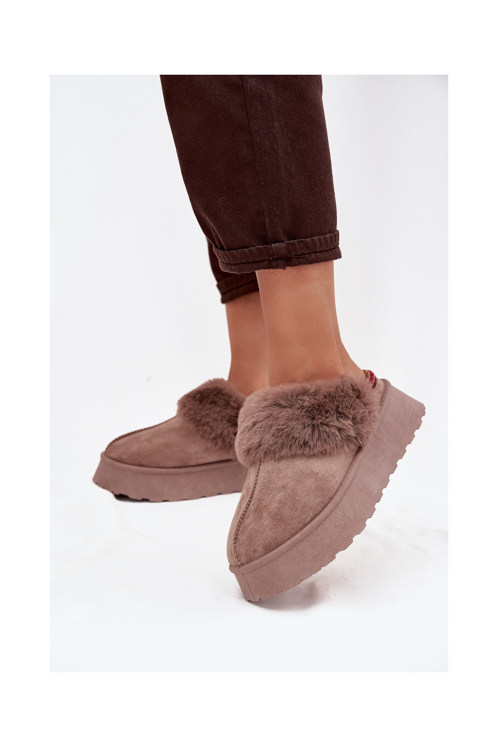 Moteriški sniego batai su platforma ir kailiuku su siuvinėjimu smėlio spalvos Querina