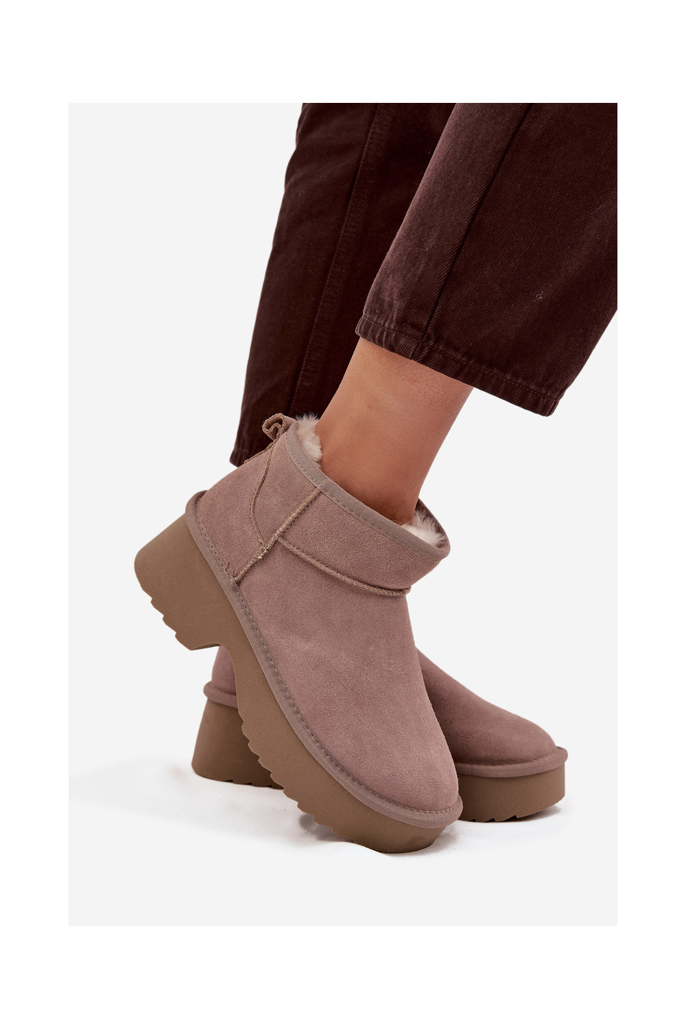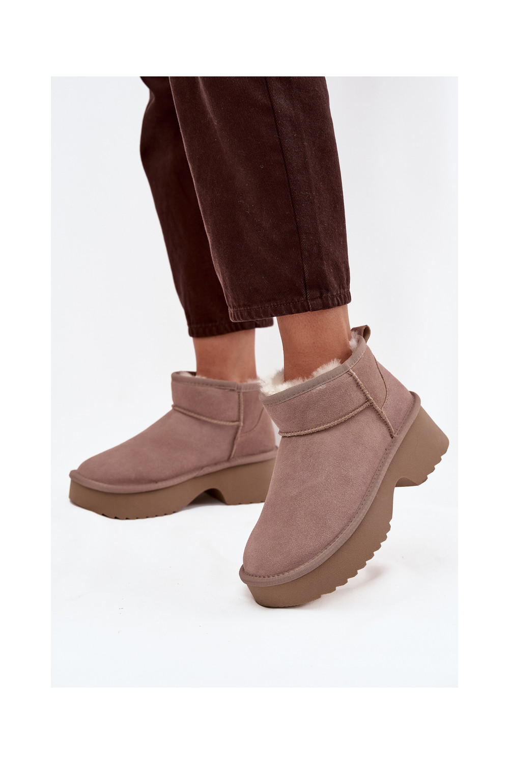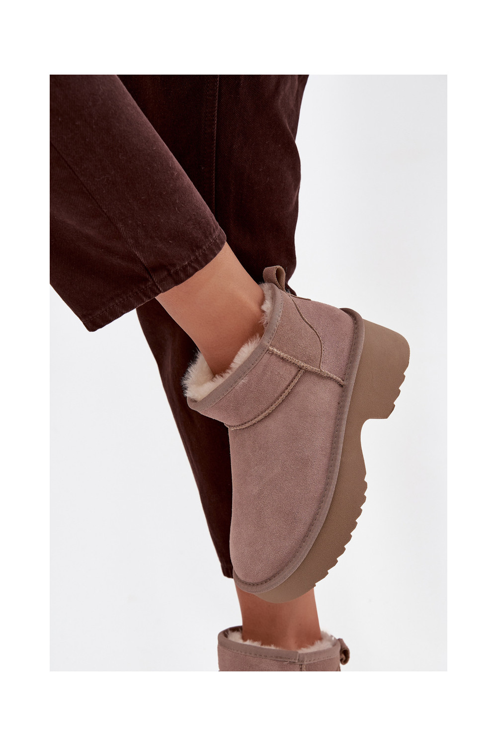 sniego batai MoteriškassuĮjungtaturalnego iš zomšosu pašiltinti su kailiuku viduje chaki spalvos Milora
