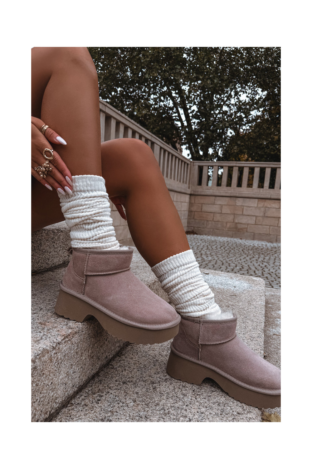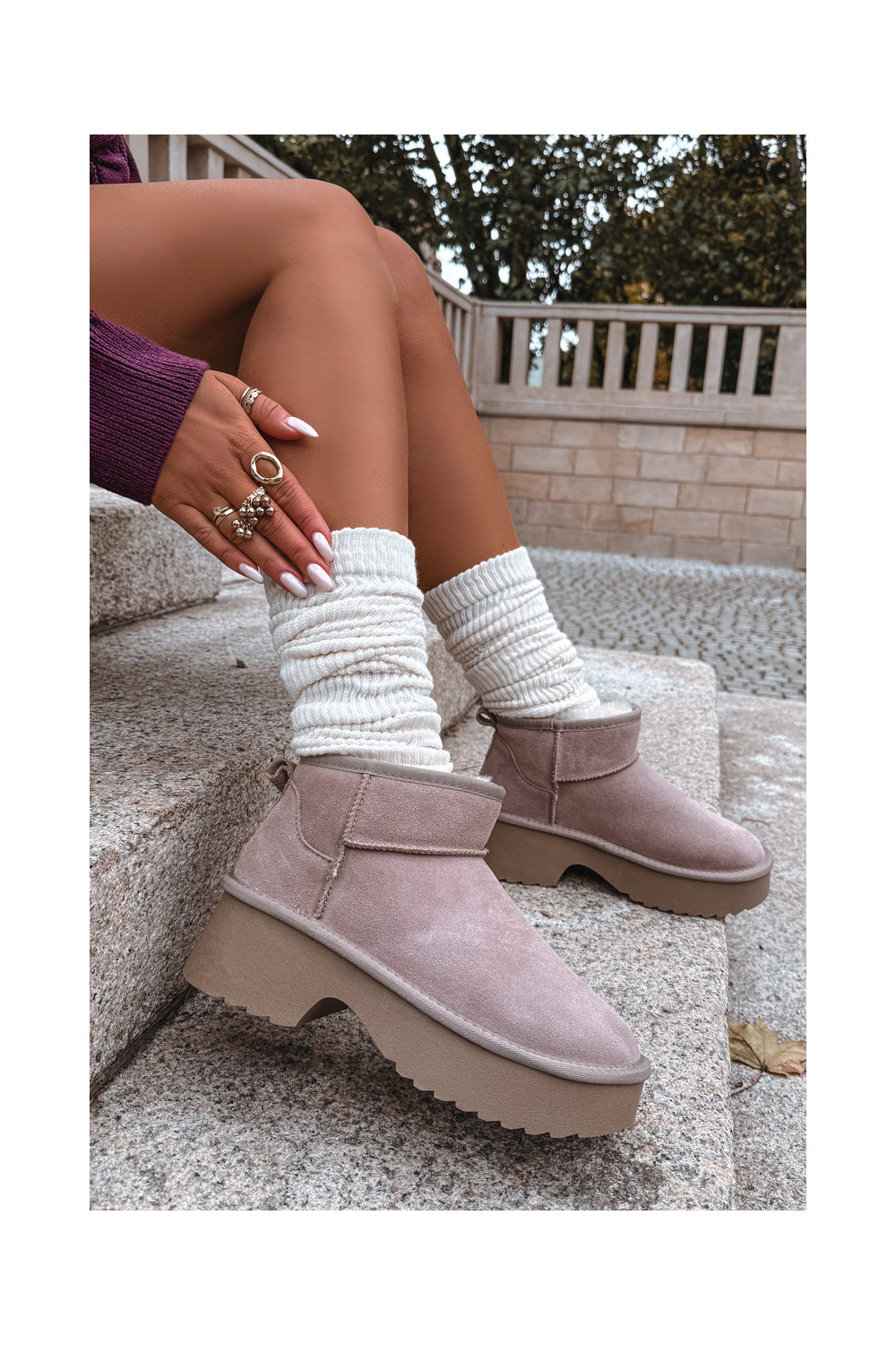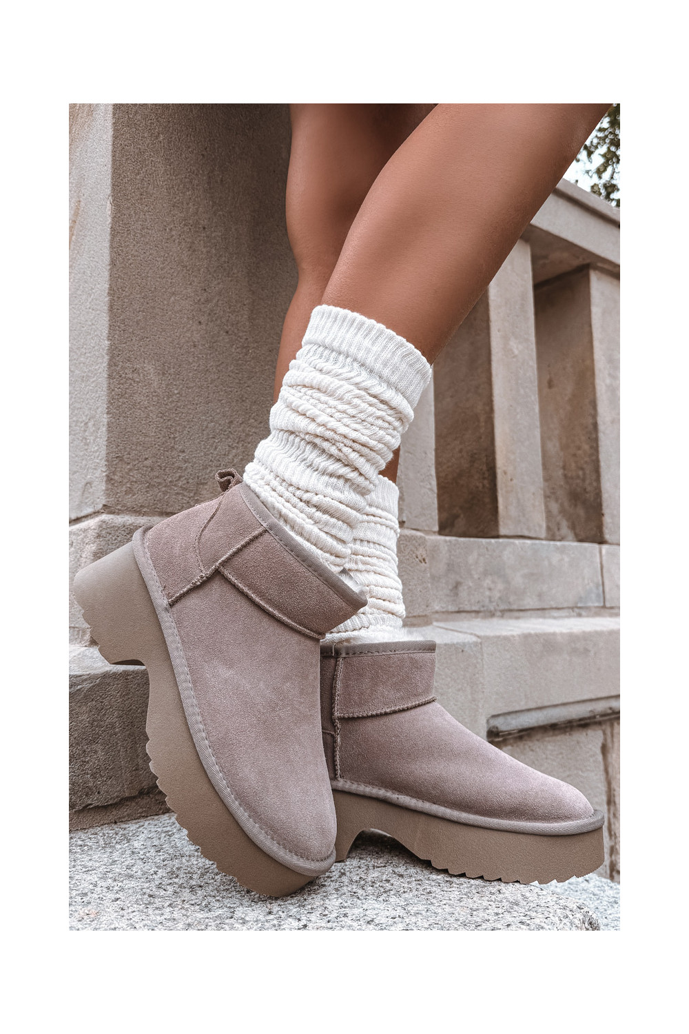 sniego batai MoteriškassuĮjungtaturalnego iš zomšosu pašiltinti su kailiuku viduje chaki spalvos Milora