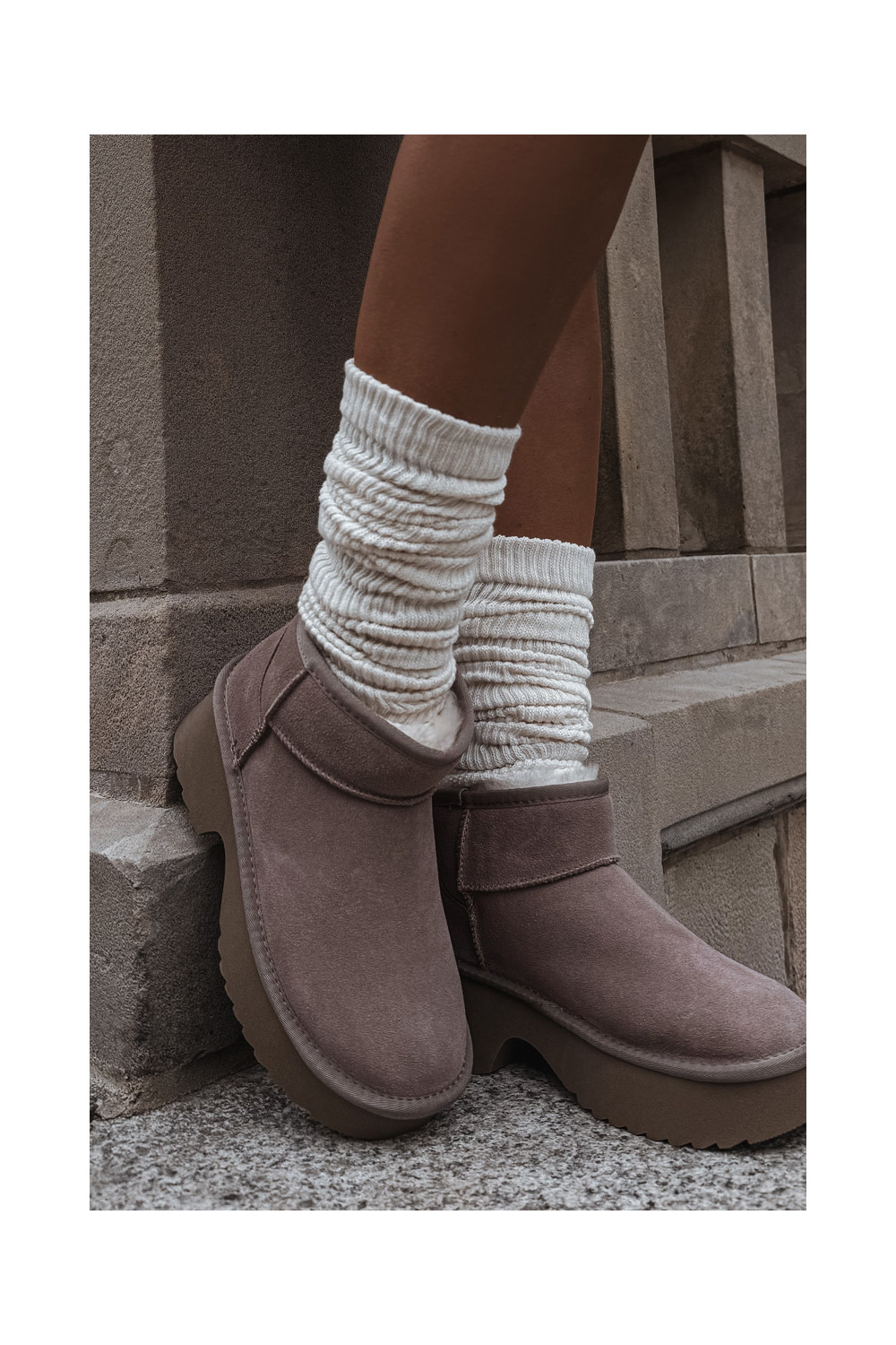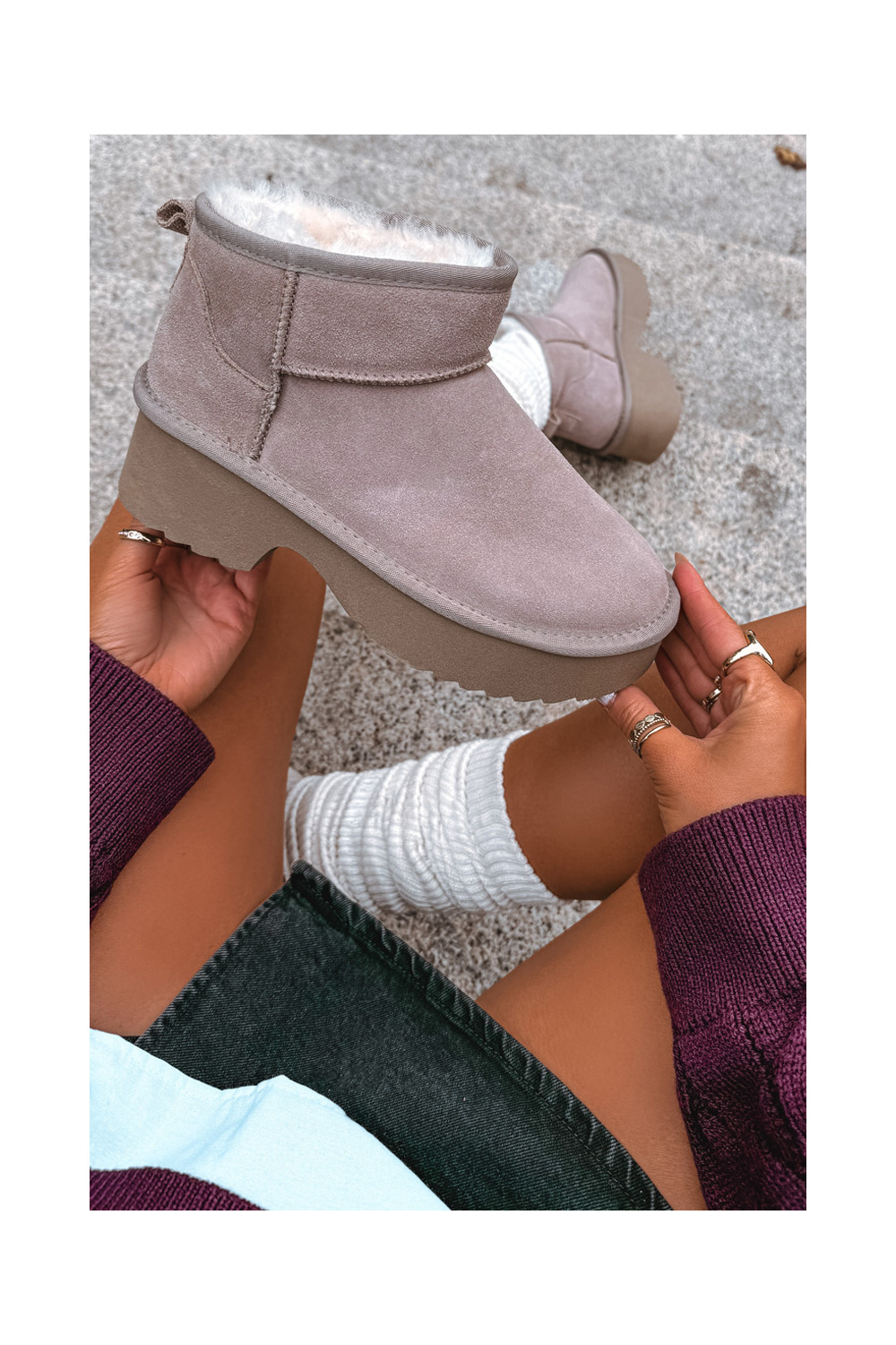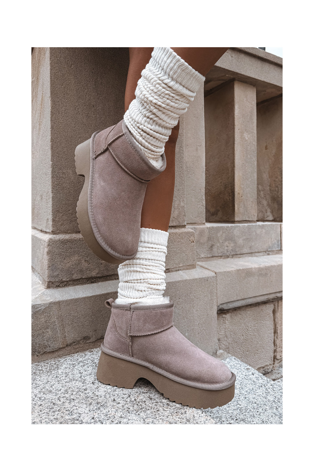 sniego batai MoteriškassuĮjungtaturalnego iš zomšosu pašiltinti su kailiuku viduje chaki spalvos Milora