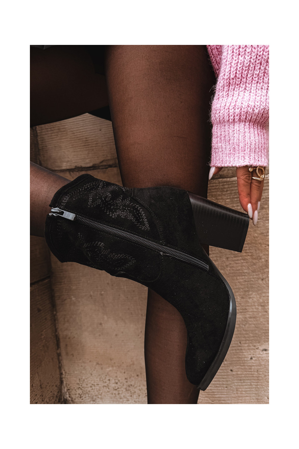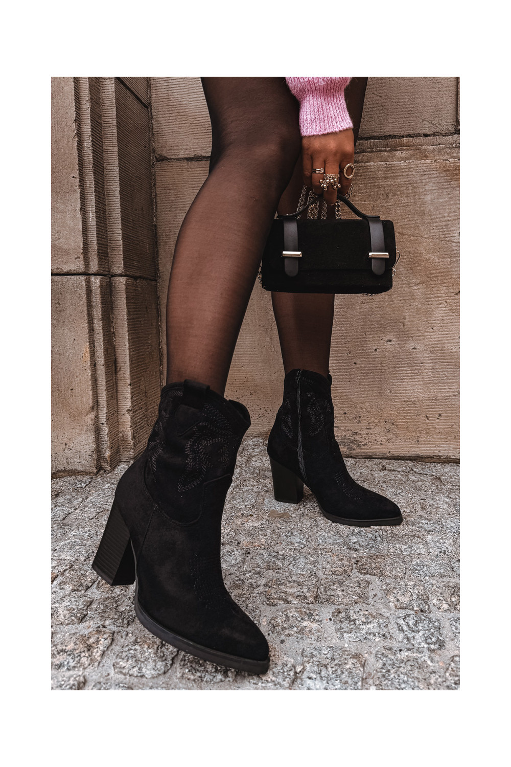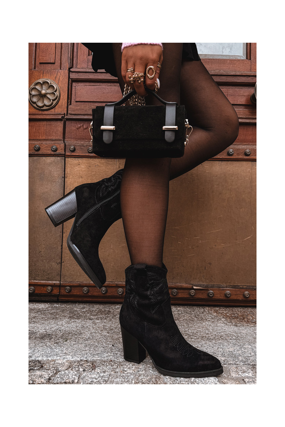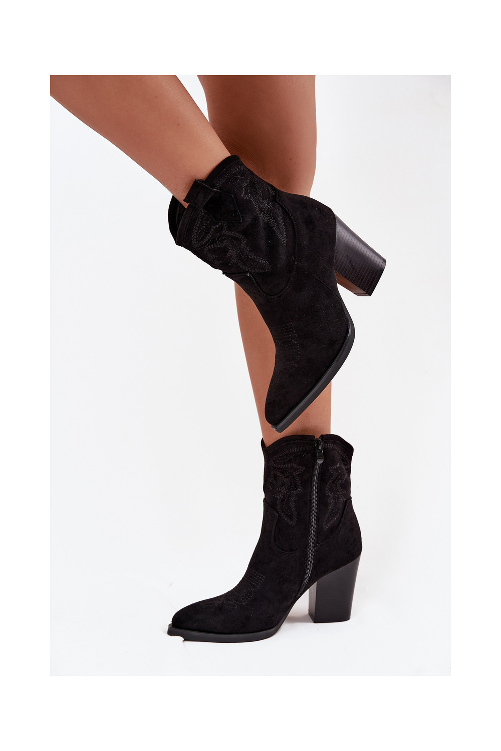kaubojiško stiliaus aulinukai Moteriškas su kulniukais iš eko zomšosoĮe juodos spalvos Carissa