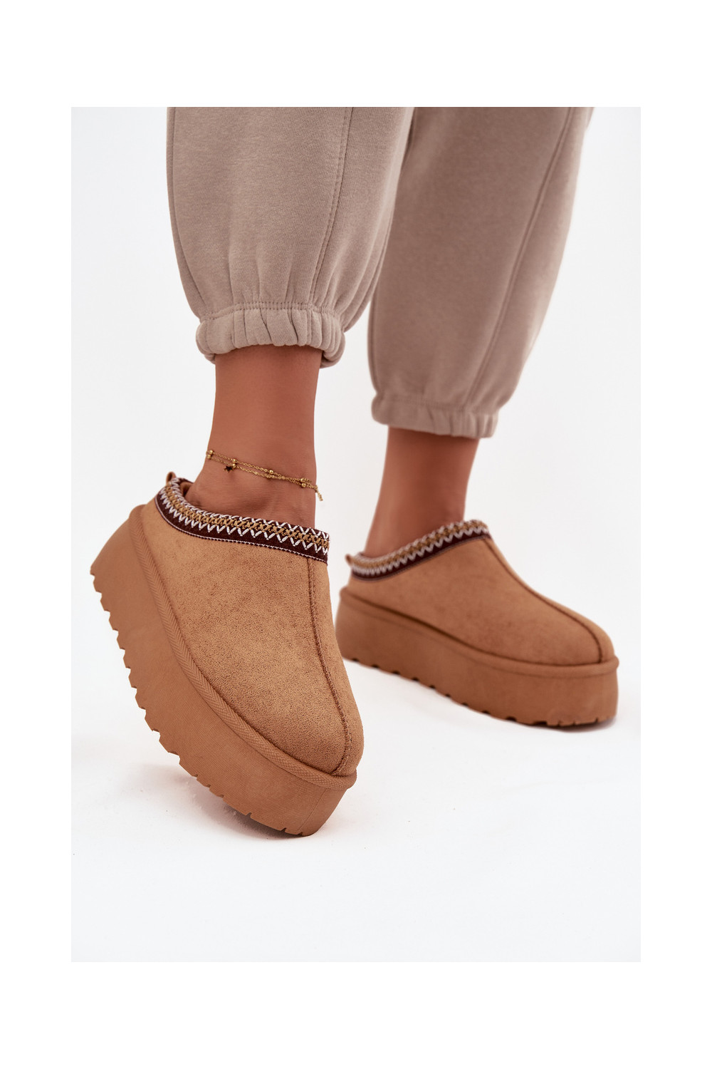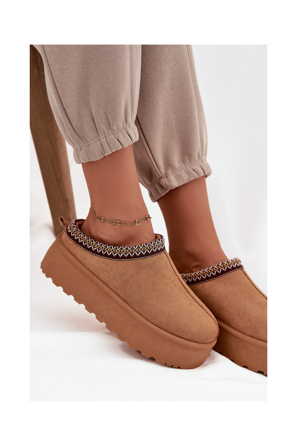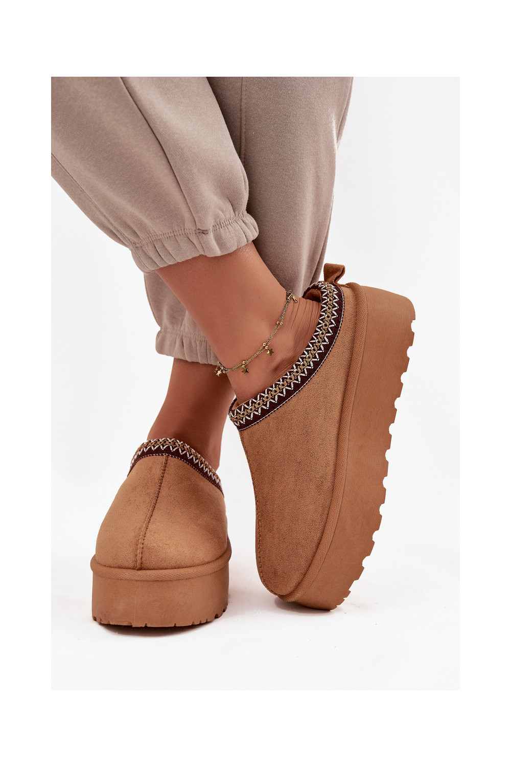 Mėgstami moteriški batai. Nėriniuoti batai iš zomšos imitacijos - idealus šio sezono pasiūlymas! Jie yra ant storo pado. Modelis nėra apšiltintas. Puikiai tinka rudens ir žiemos stilizacijai.
