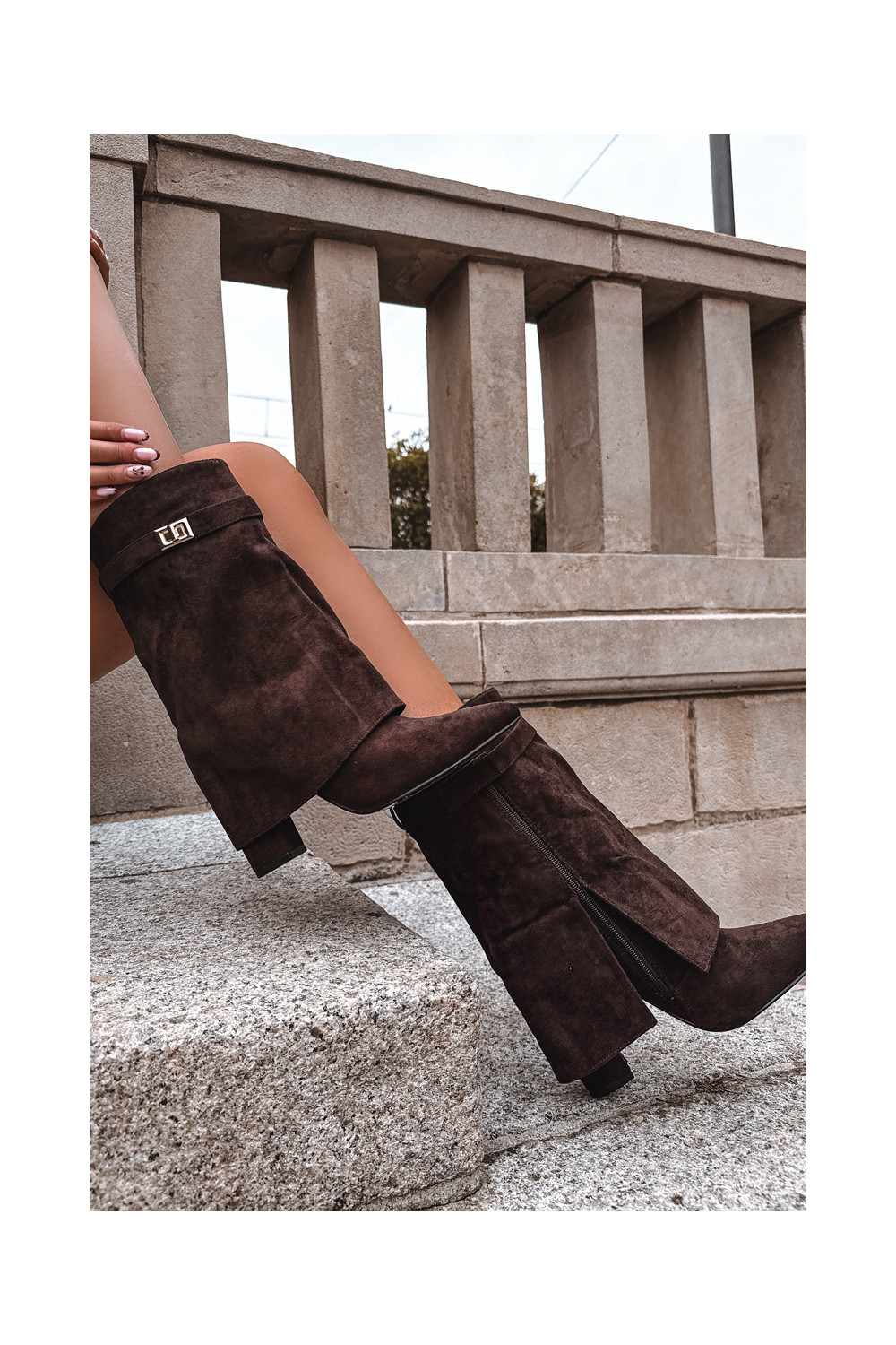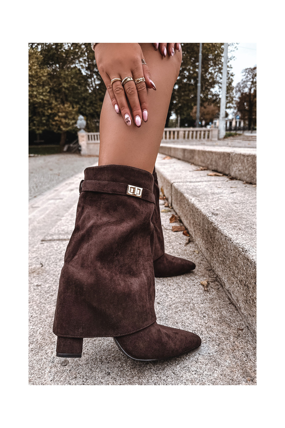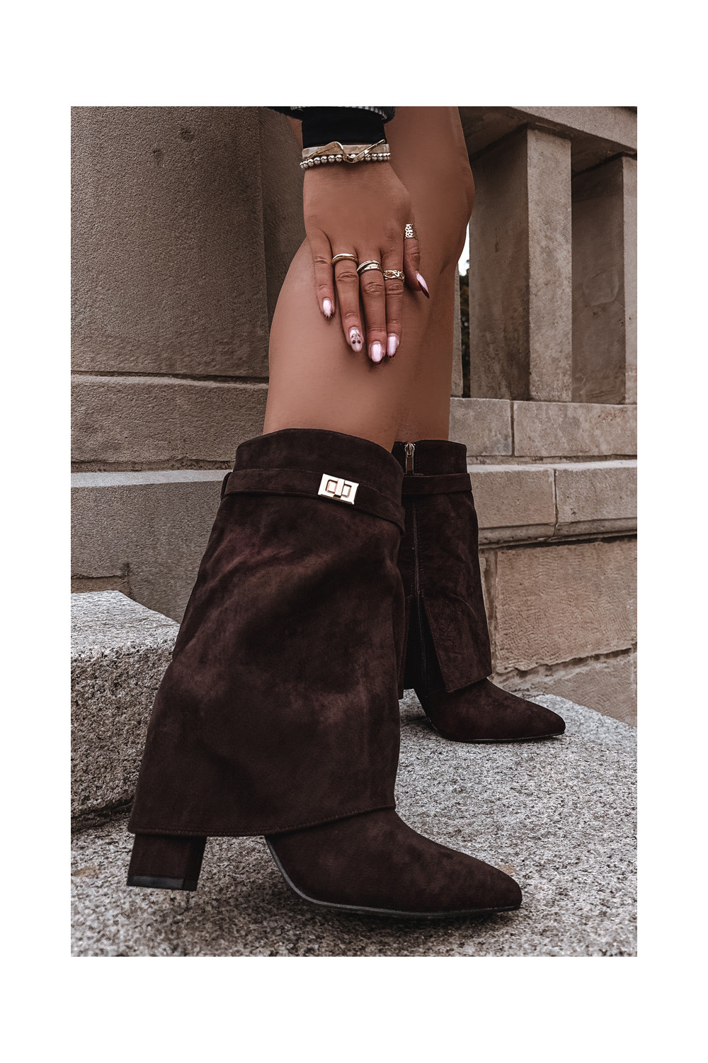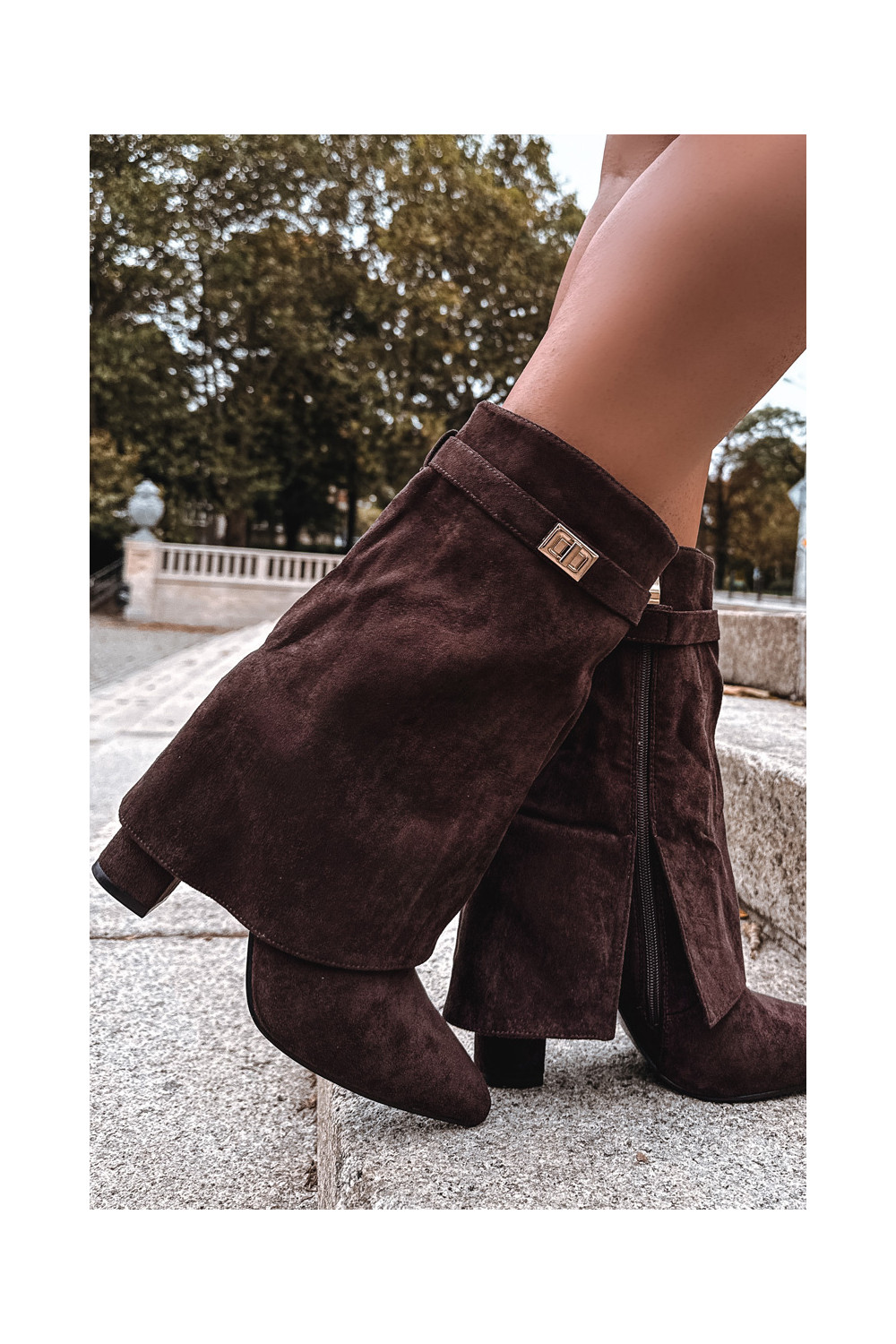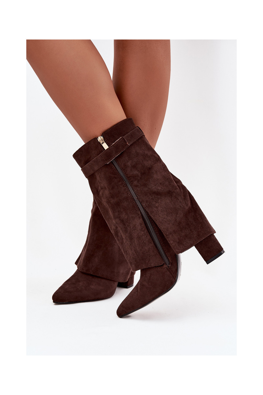 Pašiltinti moteriški aulinukai su dekoruotais kulnais šokoladinės spalvos Luvielle