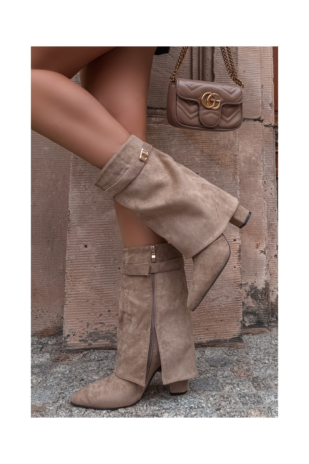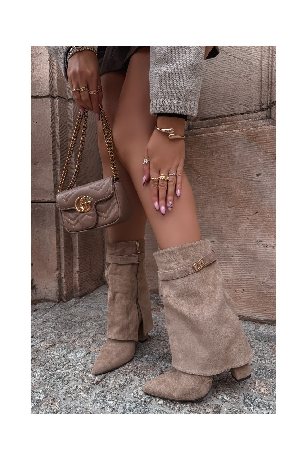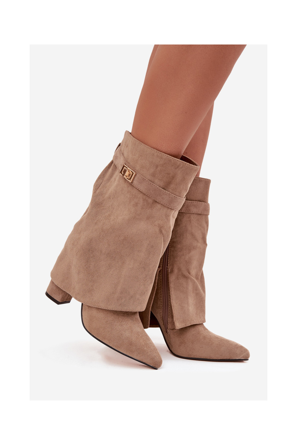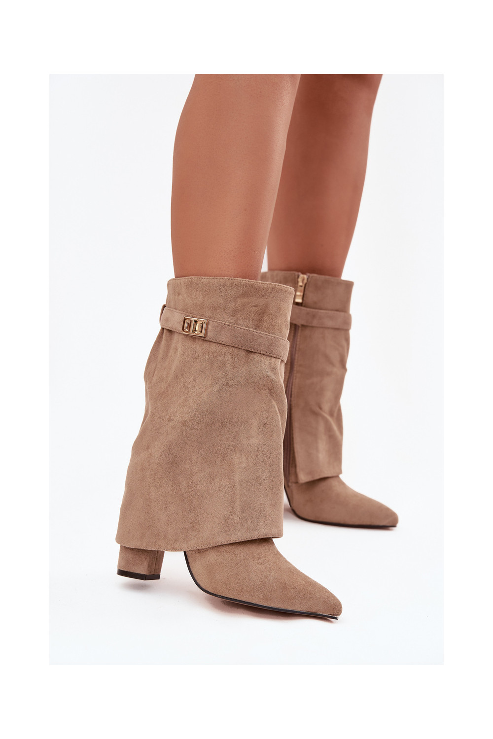 Pašiltinti moteriški aulinukai su dekoruotais kulnais chaki spalvos Luvielle