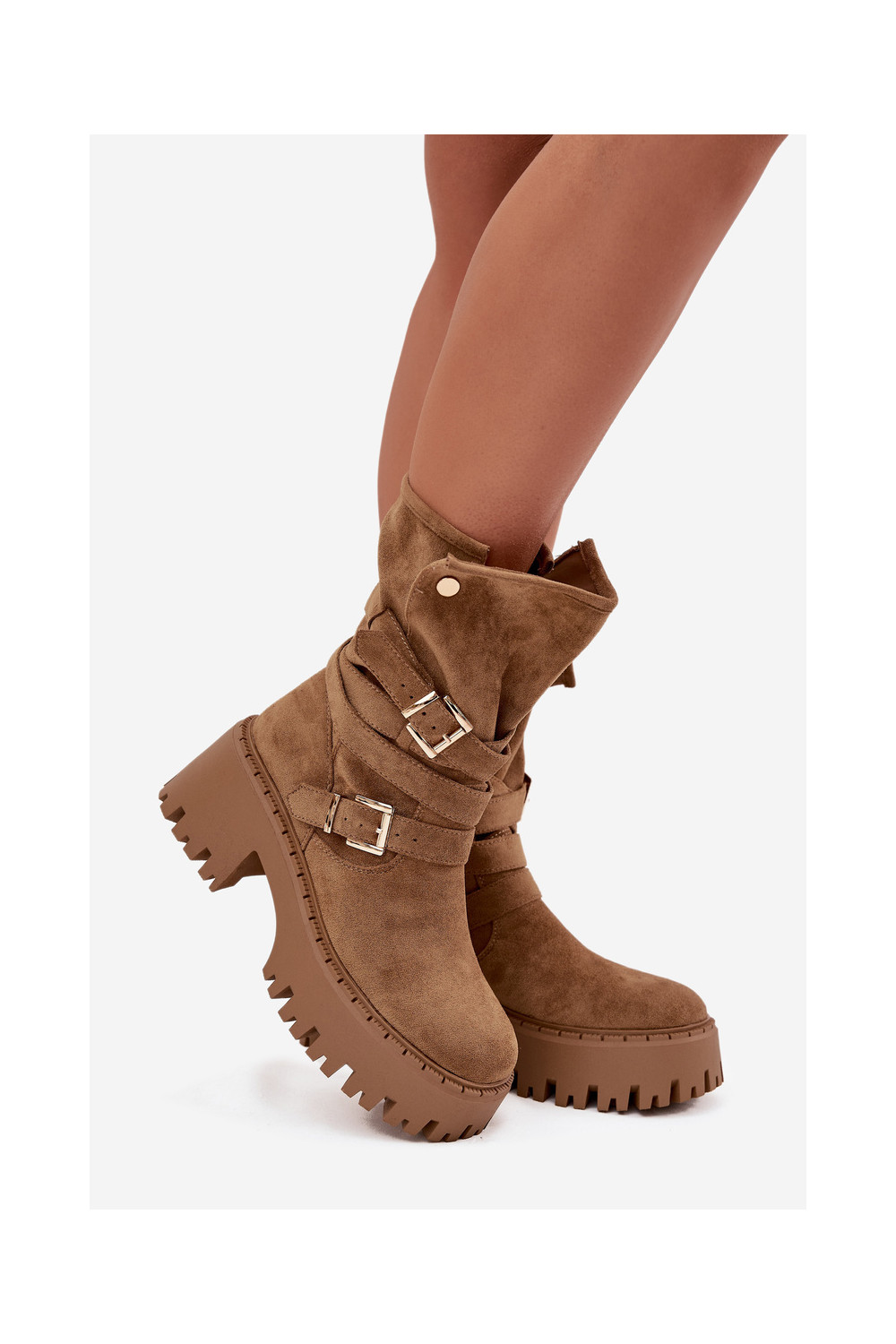 Moteriški aulinukai Ant masyvių kulnų su sagtimis I Juostelėsem chaki spalvos Nerelisa