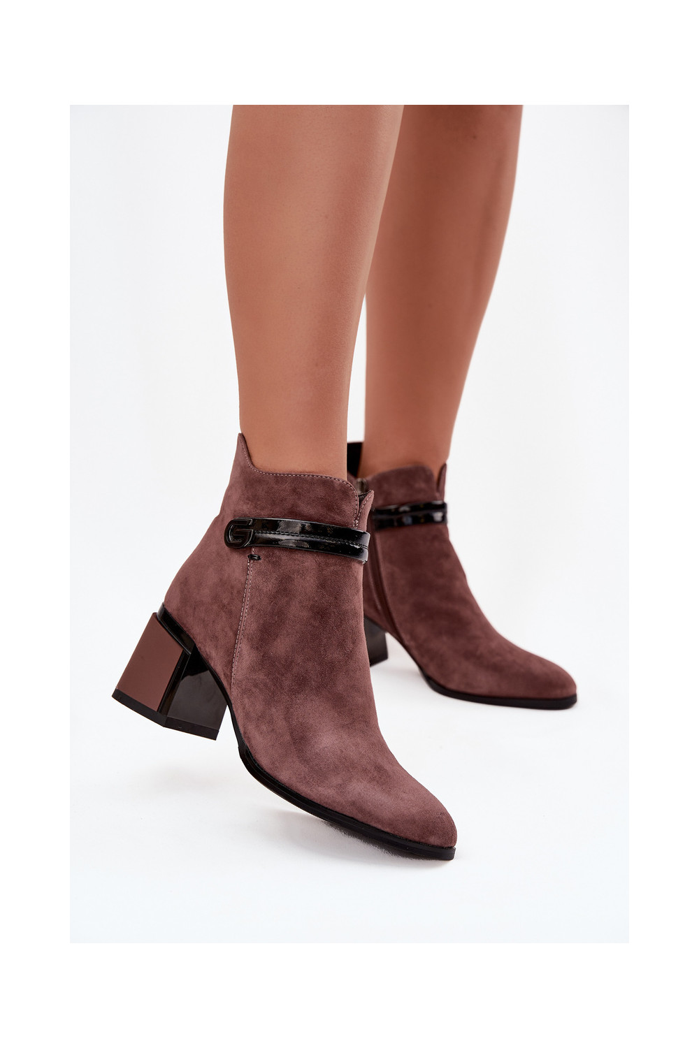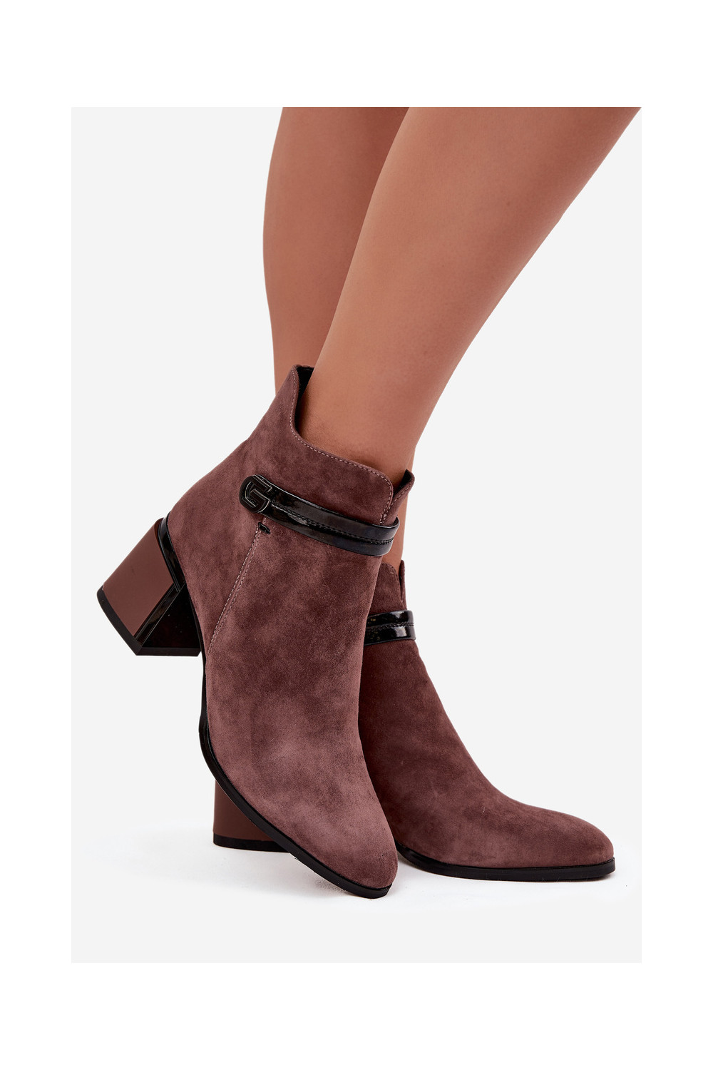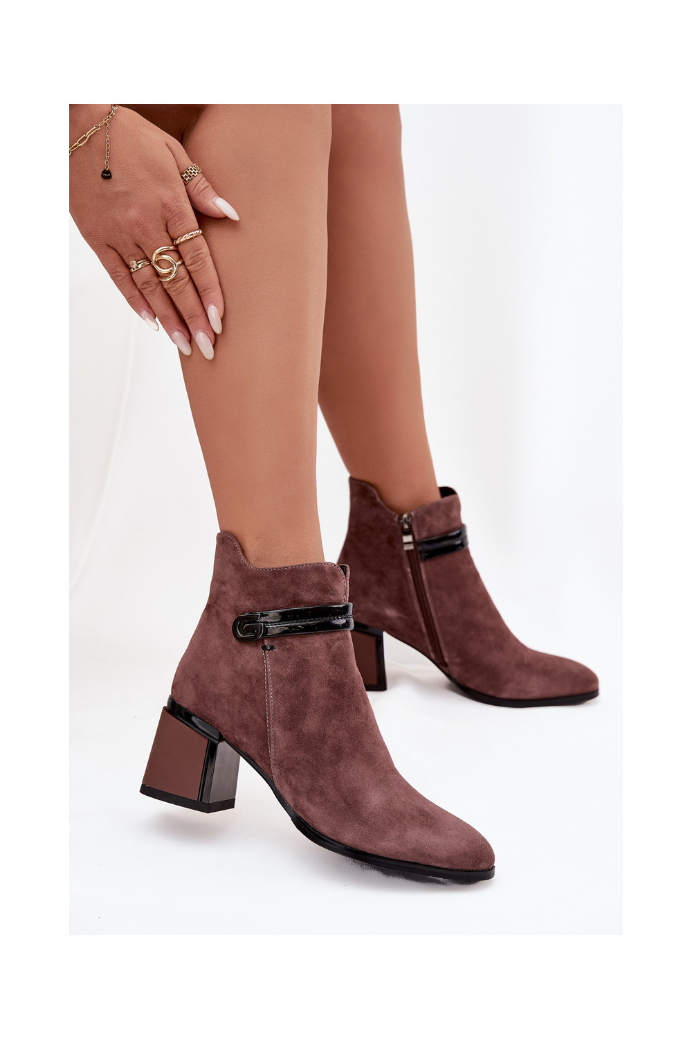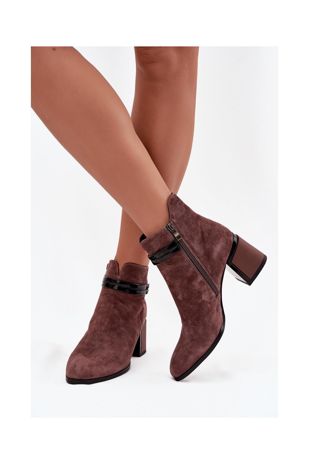 iš zomšos Oda Moteriški aulinukai su dekoruotais kulnais pašiltinti D&A CR52-650 rudos spalvos