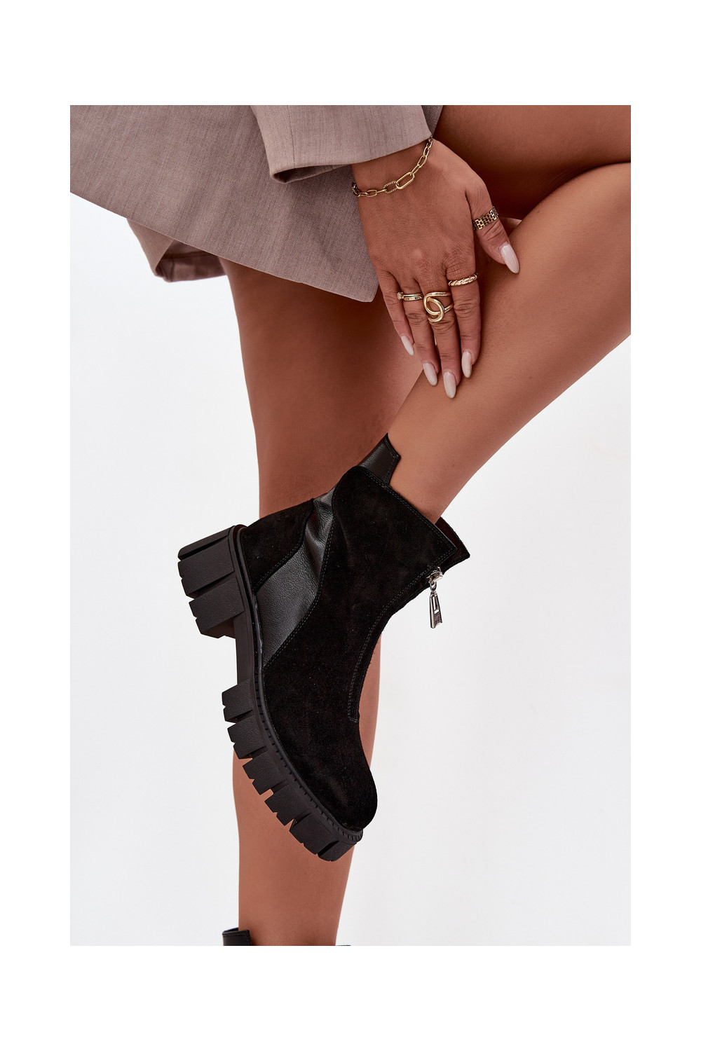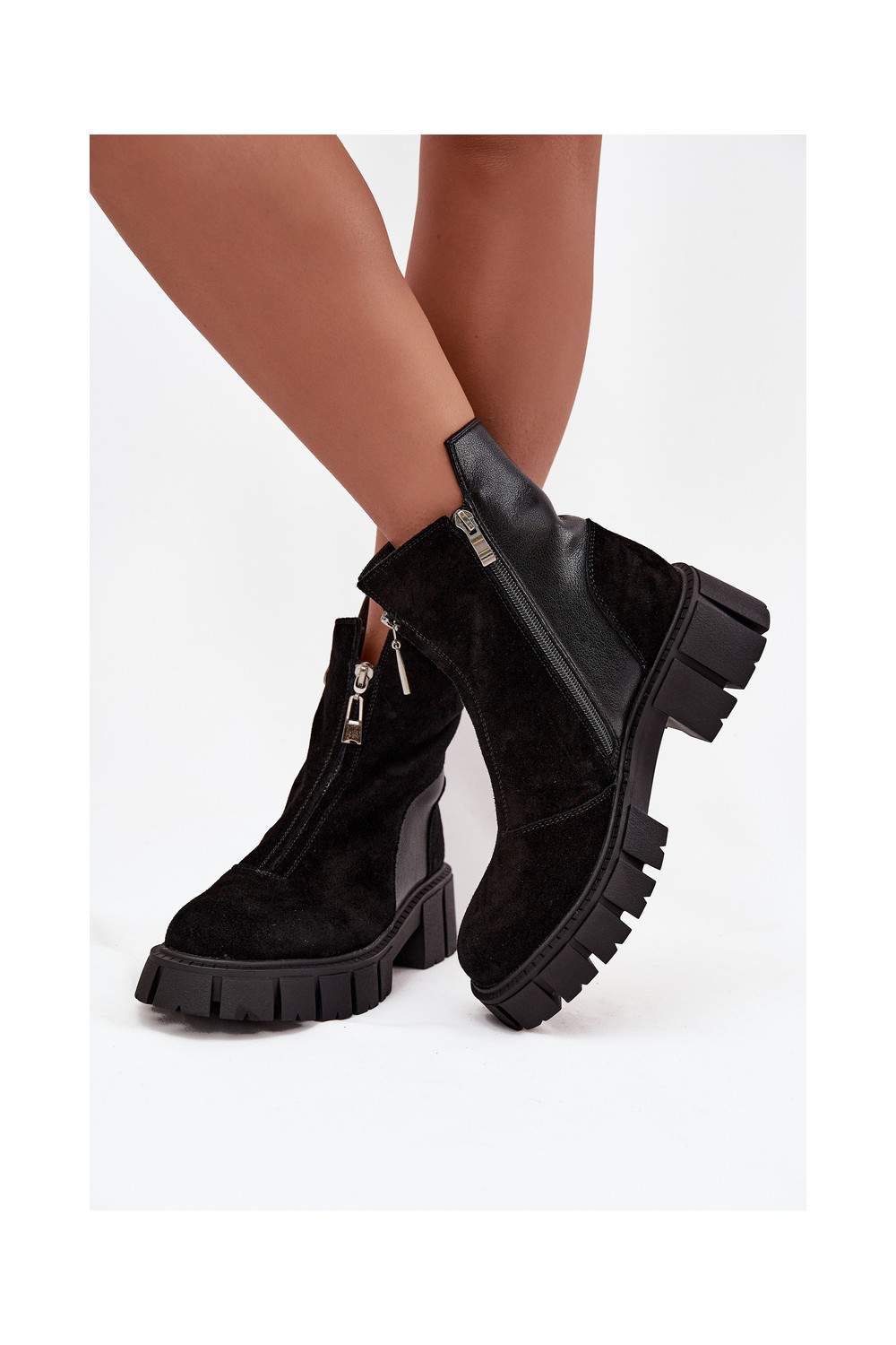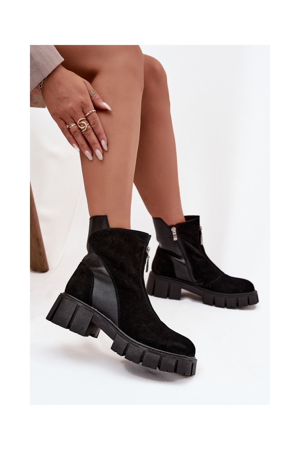 Mėgstami moteriški batai. Nėriniuoti batai iš zomšos imitacijos - idealus šio sezono pasiūlymas! Jie yra ant storo pado. Modelis nėra apšiltintas. Puikiai tinka rudens ir žiemos stilizacijai.