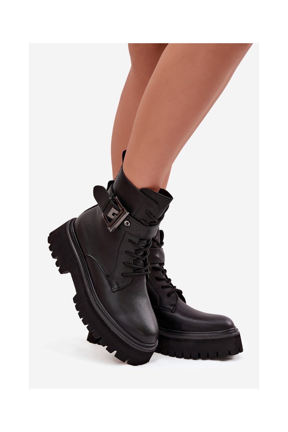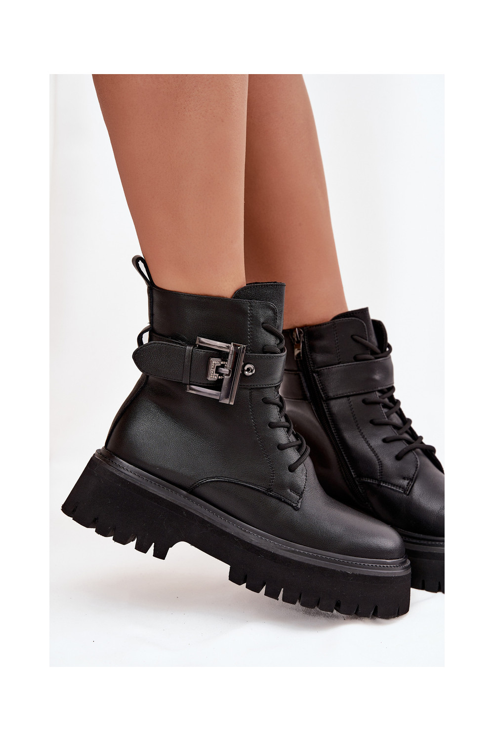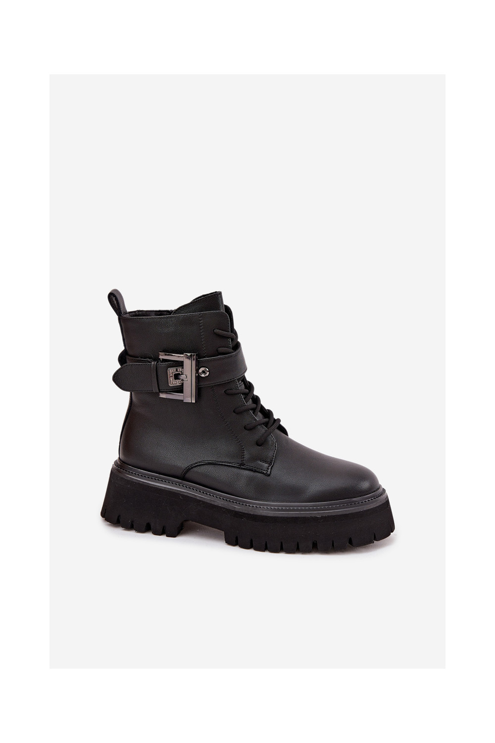 Oda Darbiniai kulkšnies batai Moteriškas pašiltinti dekoruoti su sagtimis D&A MK52-032 juodos spalvos