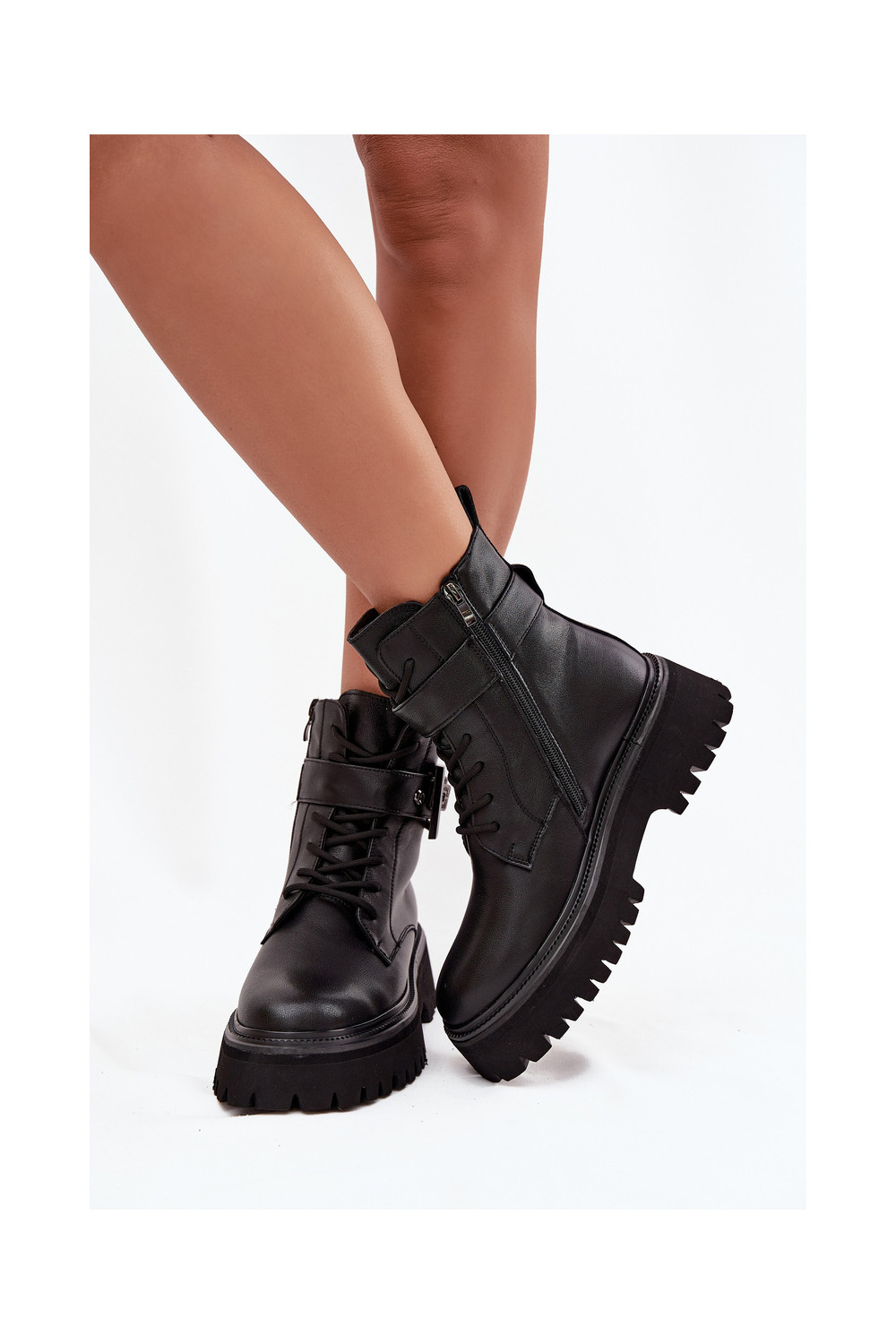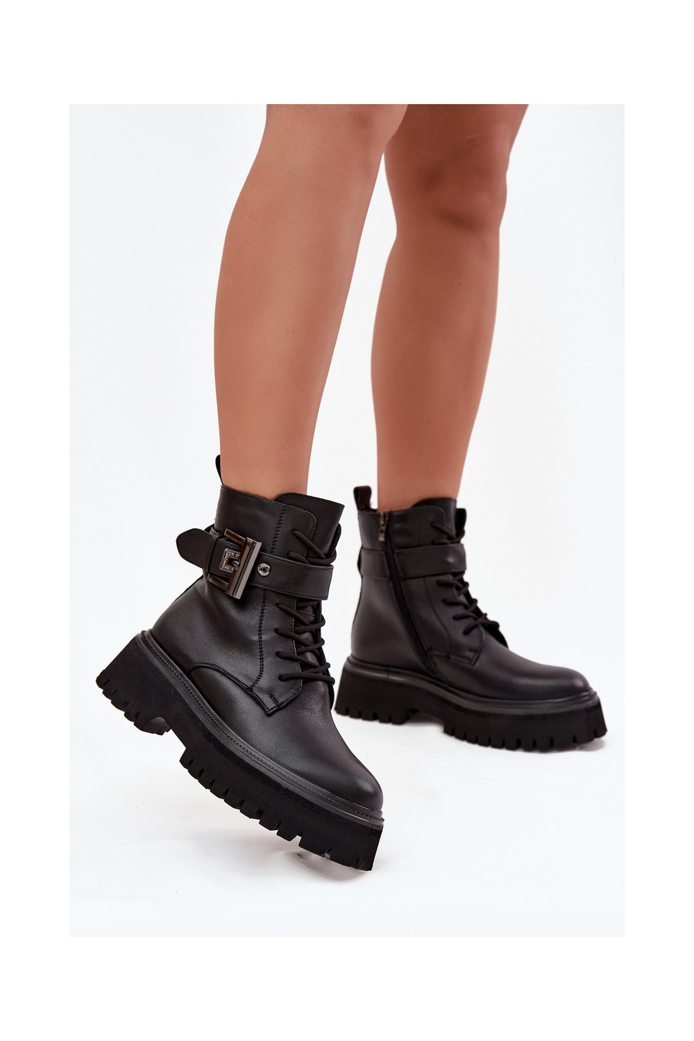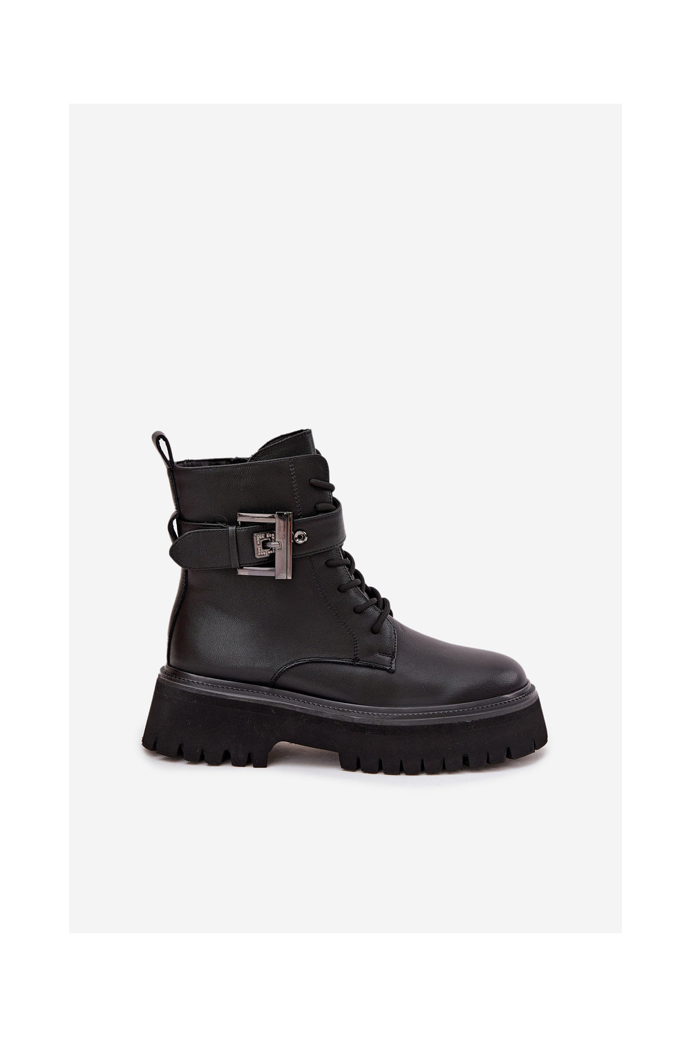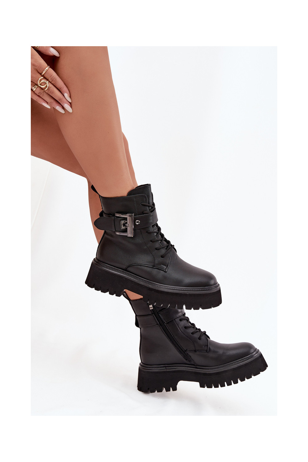 Oda Darbiniai kulkšnies batai Moteriškas pašiltinti dekoruoti su sagtimis D&A MK52-032 juodos spalvos