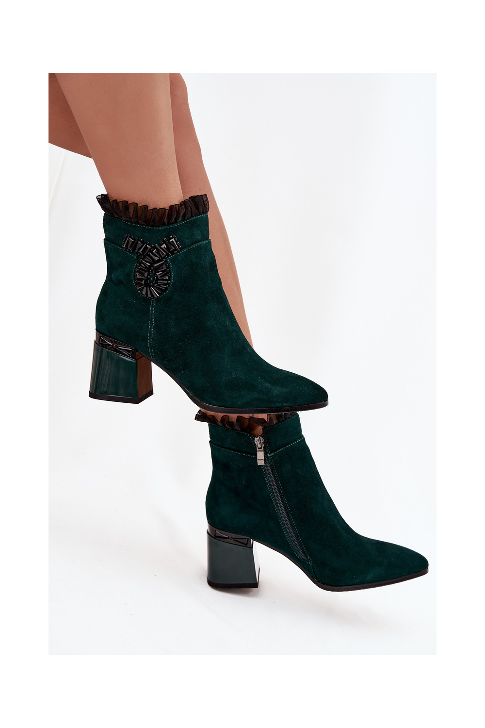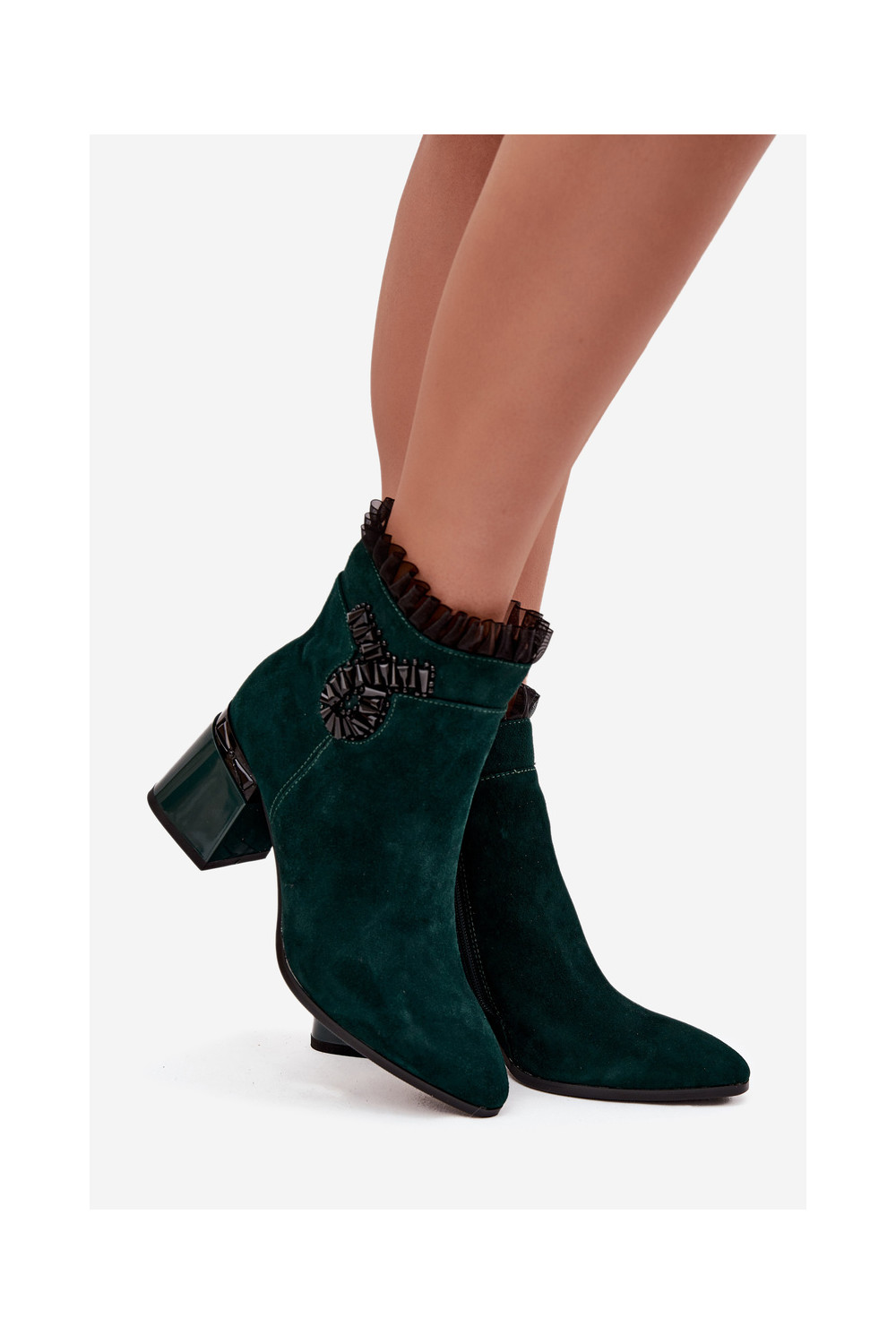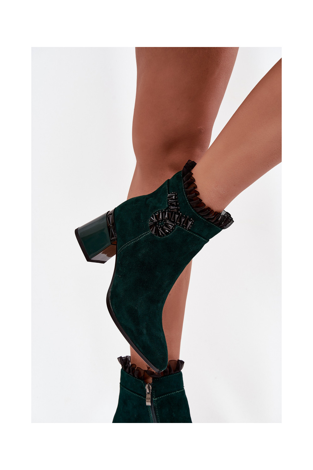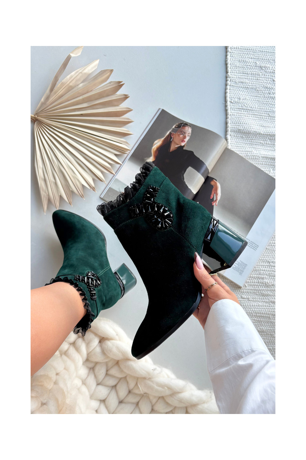 Moteriški pašiltinti dirbtinės zomšos aulinukai su ornamentais D&A MR52-127 butelio žalios spalvos